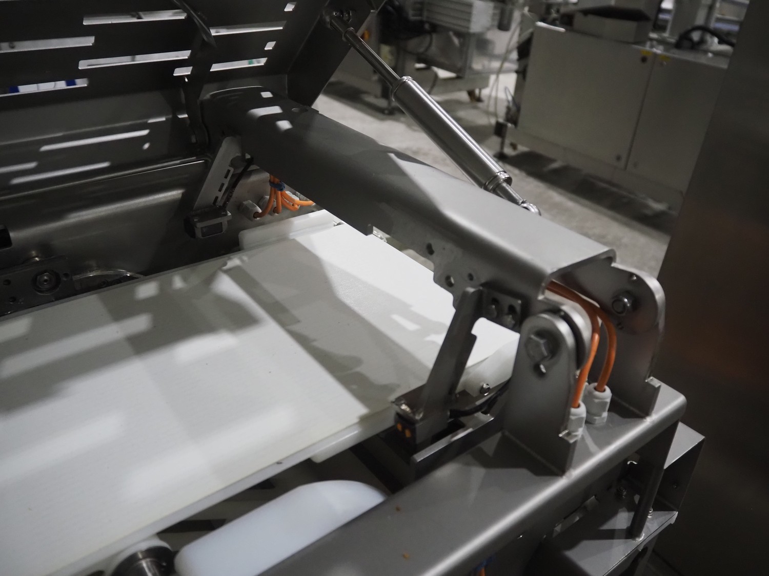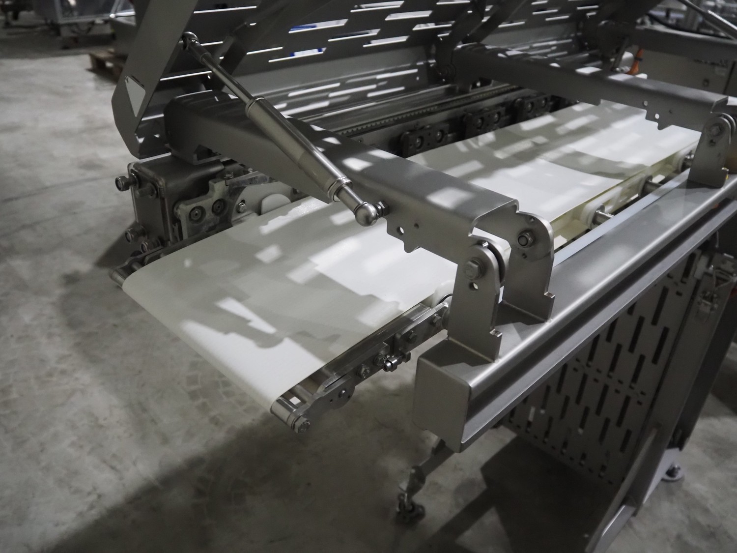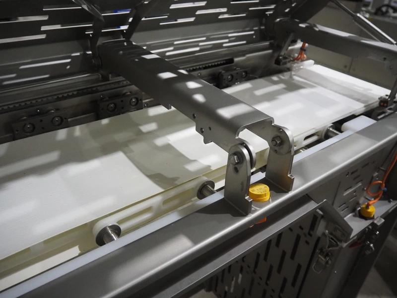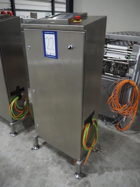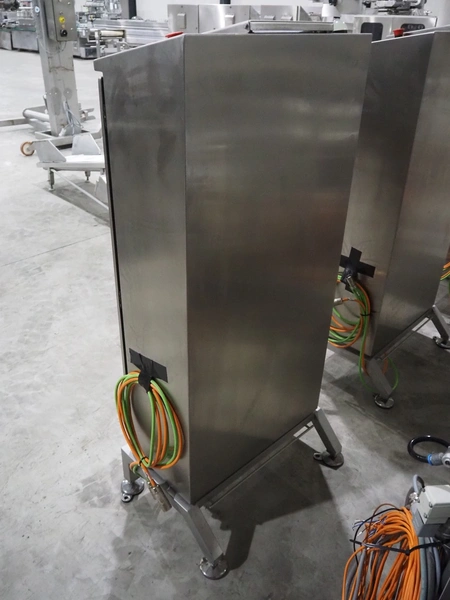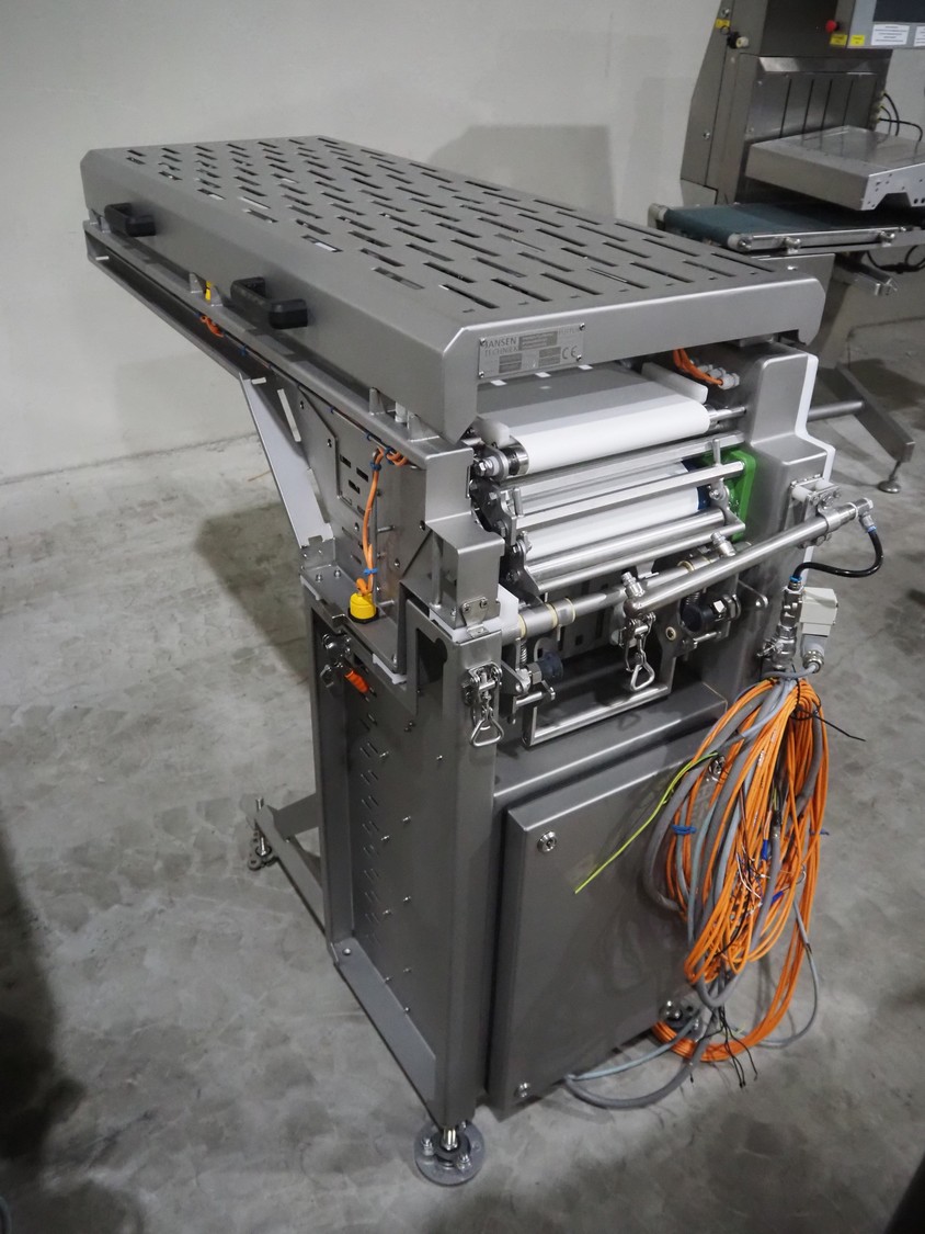 Jansen Techniek shuttle conveyor, type: SBK150, model: Schietband, year of construction: 2019, plastic belt, belt width: 240 mm, total dimensions: 1400 mm x 600 mm x 1250 mm. Including switch cabinet, dimensions: 700 mm x 500 mm x 1250.