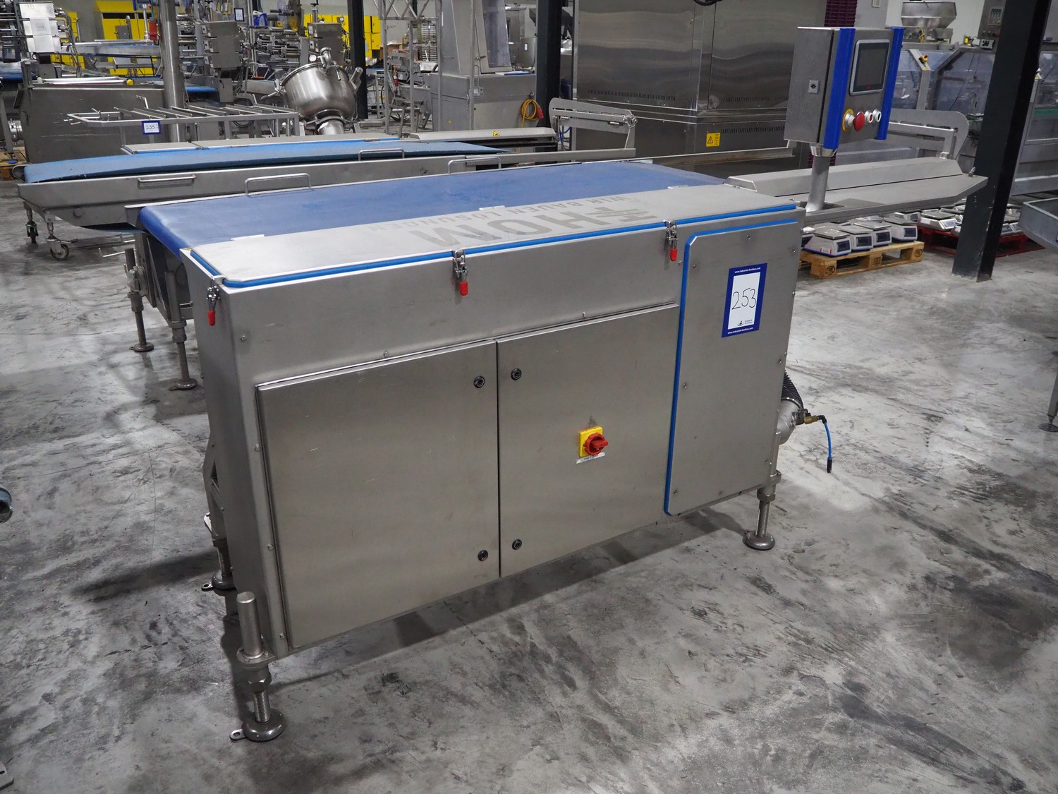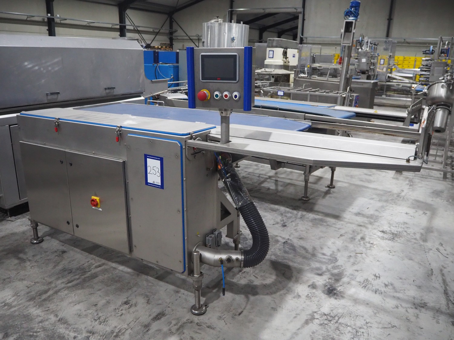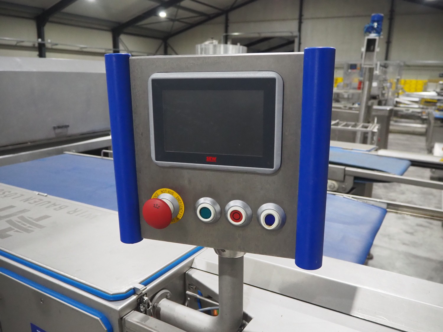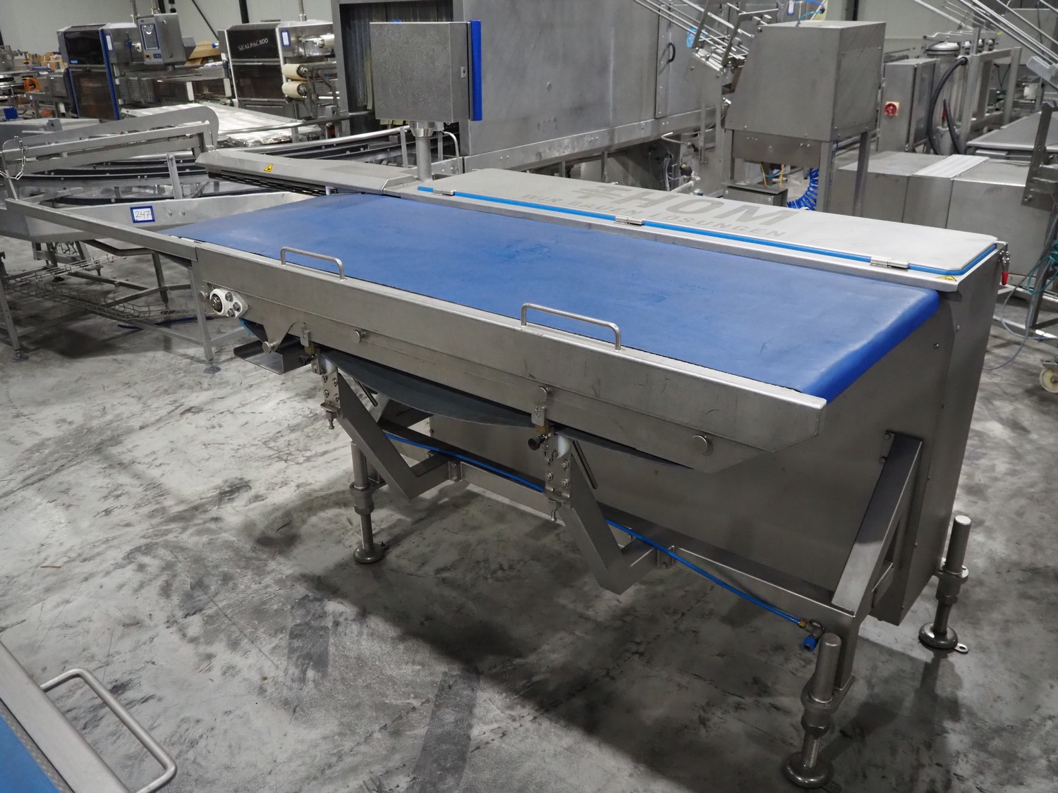 Thom shuttle conveyor, model: Multi-Line Loader, number: 054543-001-00, year of construction: 2015, plastic belt, belt width: 650 mm, total dimensions: 2800 mm x 1150 mm x 1240 mm.