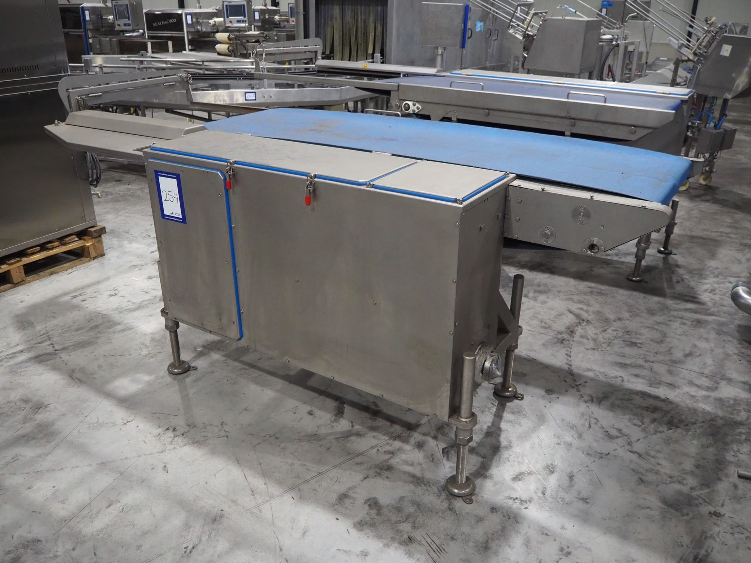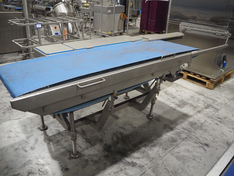 Shuttle conveyor, plastic belt, belt width: 650 mm, total dimensions: 2800 mm x 1150 mm x 1240 mm.