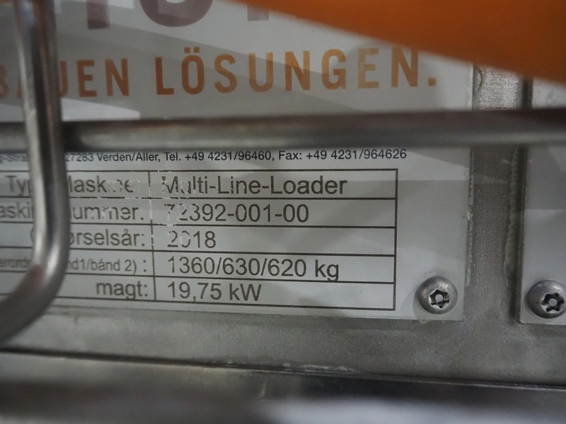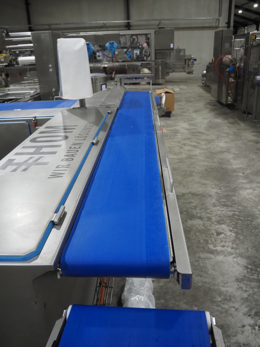 Thom Maschinenbau GmbH shuttle conveyor, model: Multi-Line-Loader, machine number: 72392-001-00, year of construction: 2018, 19.75 kW, plastic belt, belt width: 250 mm, total dimensions: 2800 mm x 800 mm x 1650 mm.
