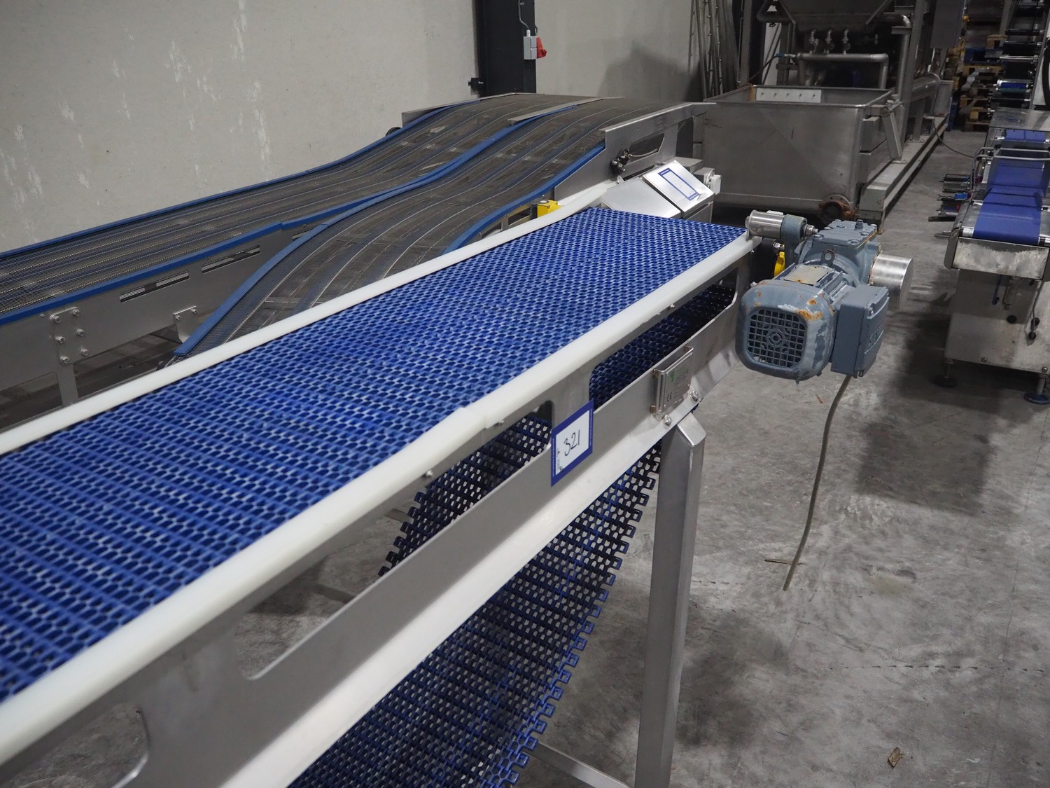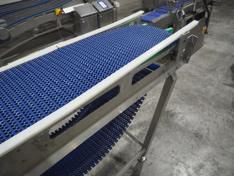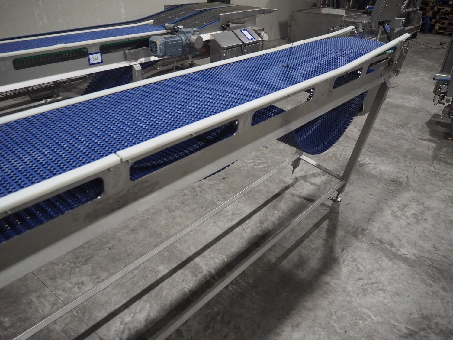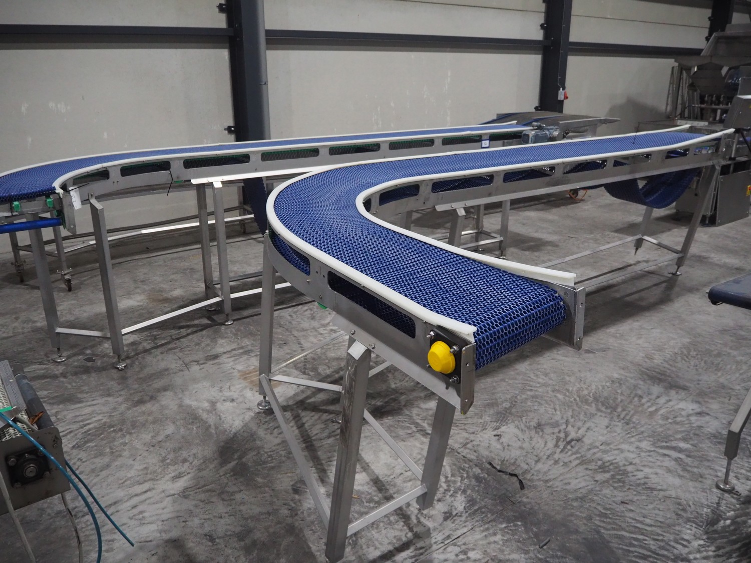 De Jager BV 180º curve conveyor, type: 11-0608-08, year of construction: 01/2012, plastic mesh belt, belt width: 355, total dimensions: 6100 mm x 4900 mm x 1250 mm.
