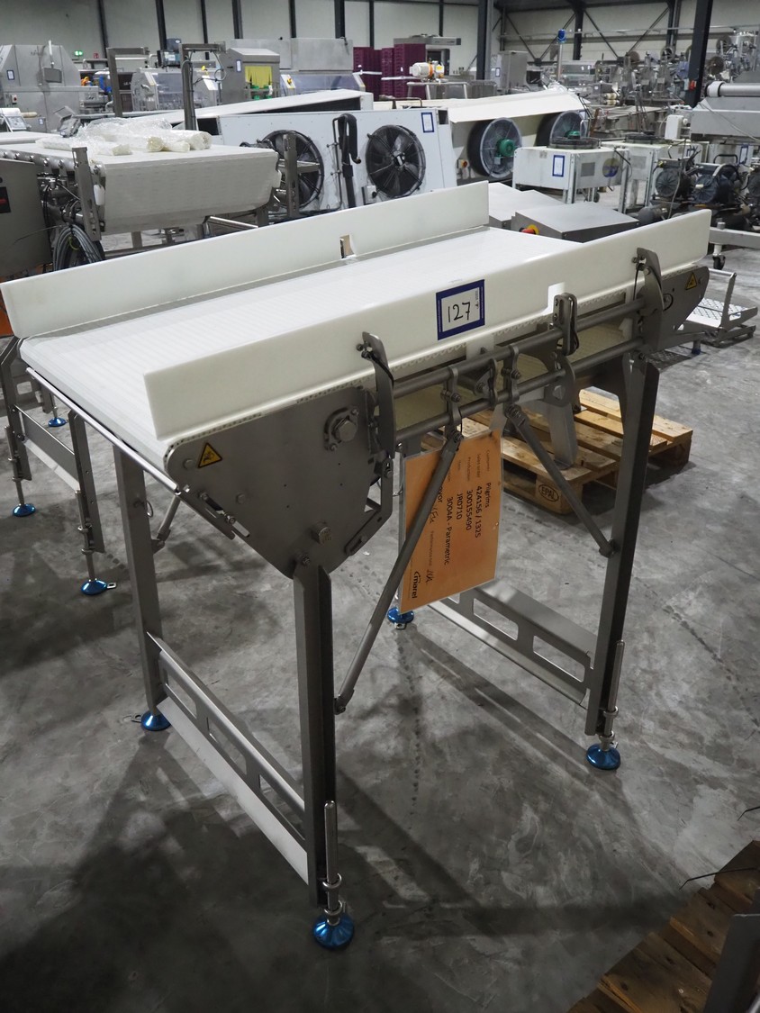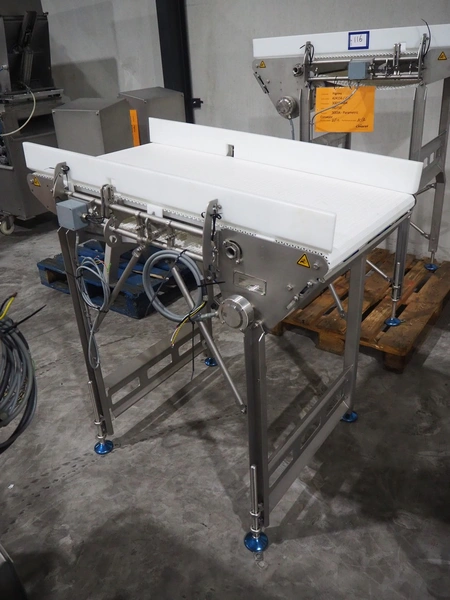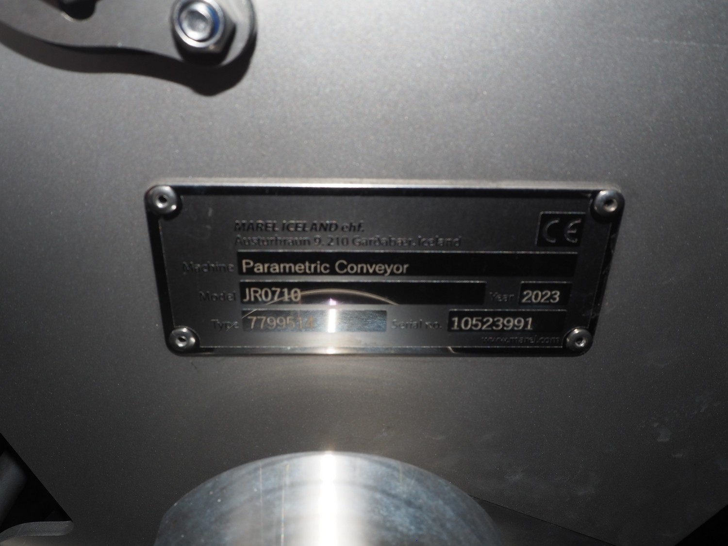 Marel elevating belt, model: JR0710, type: 7799514, serial number: 10523991, year of construction: 2023, plastic belt, belt width: 610 mm, total dimensions: 1170 mm x 800 mm x 1230 mm.