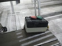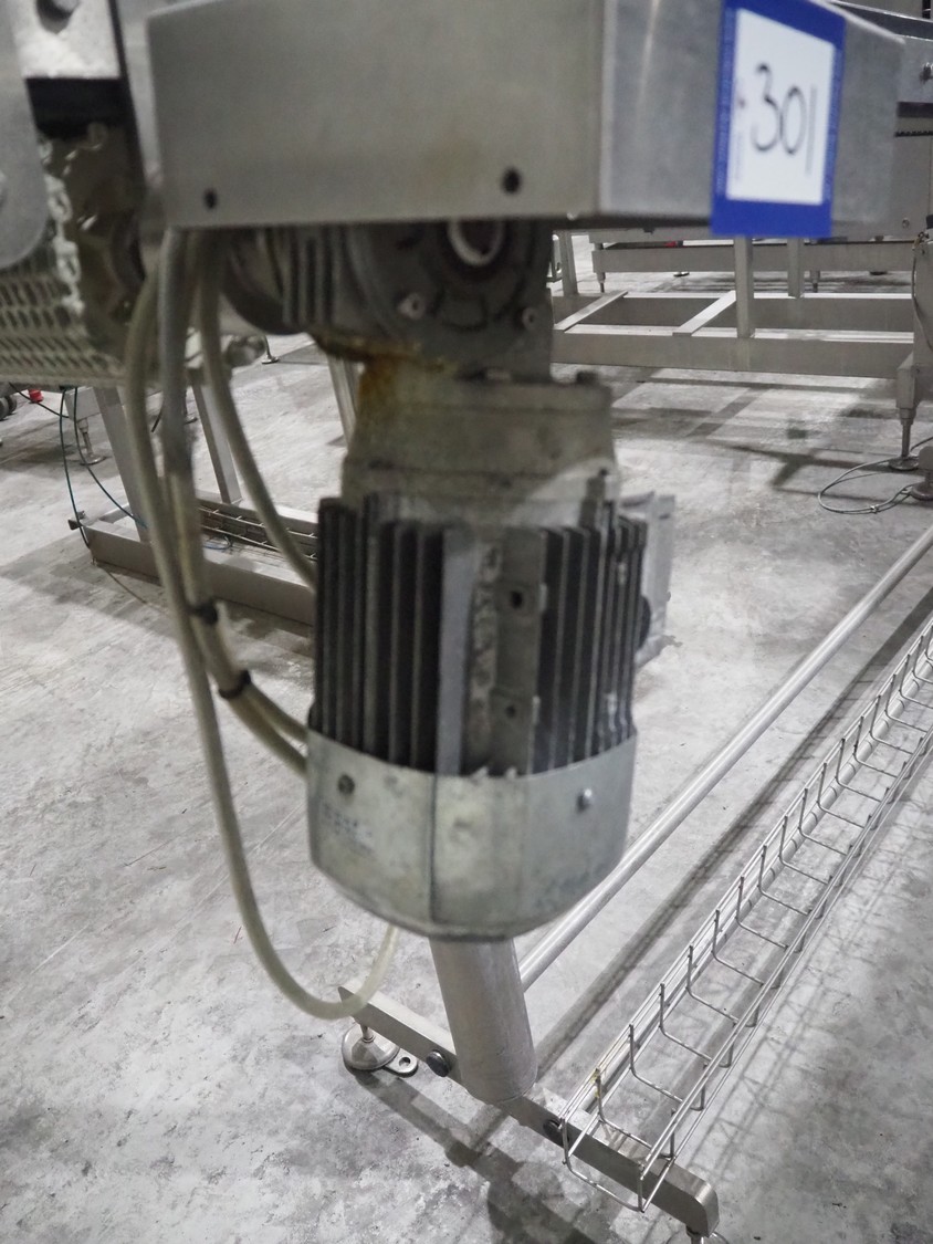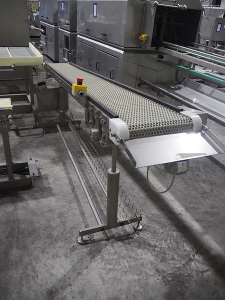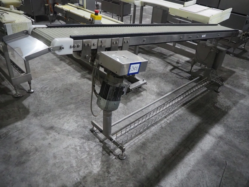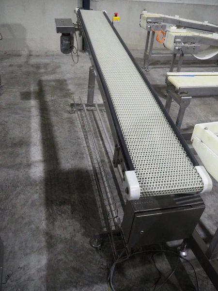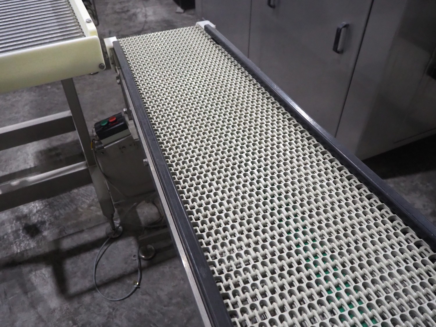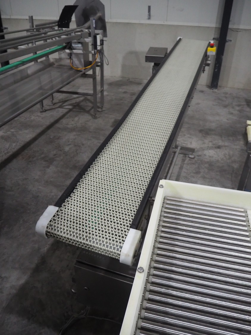 Elevating belt, plastic mesh belt, belt width: 285 mm, total dimensions: 2900 mm x 750 mm x 1200 mm.