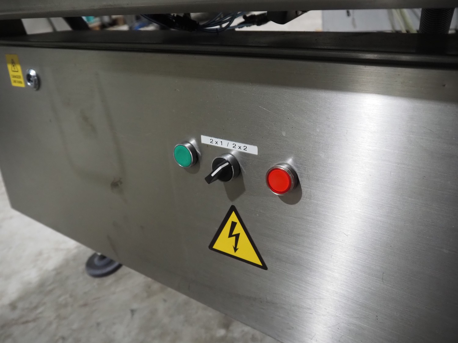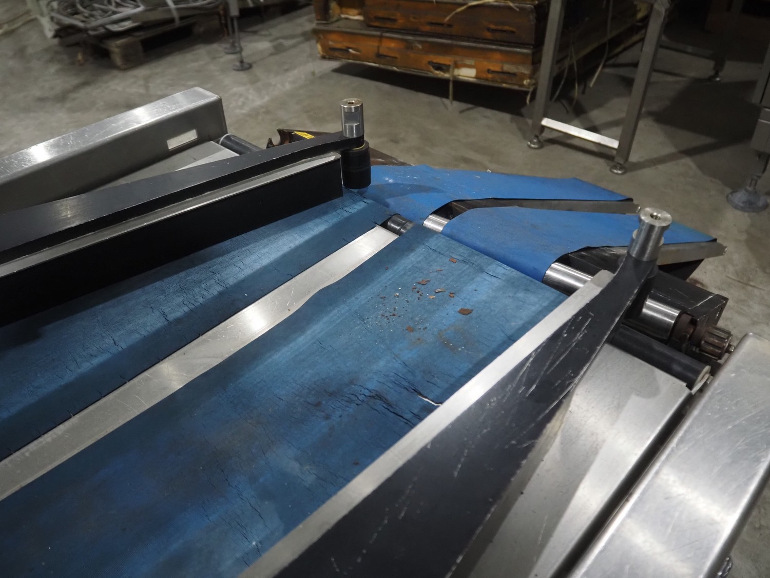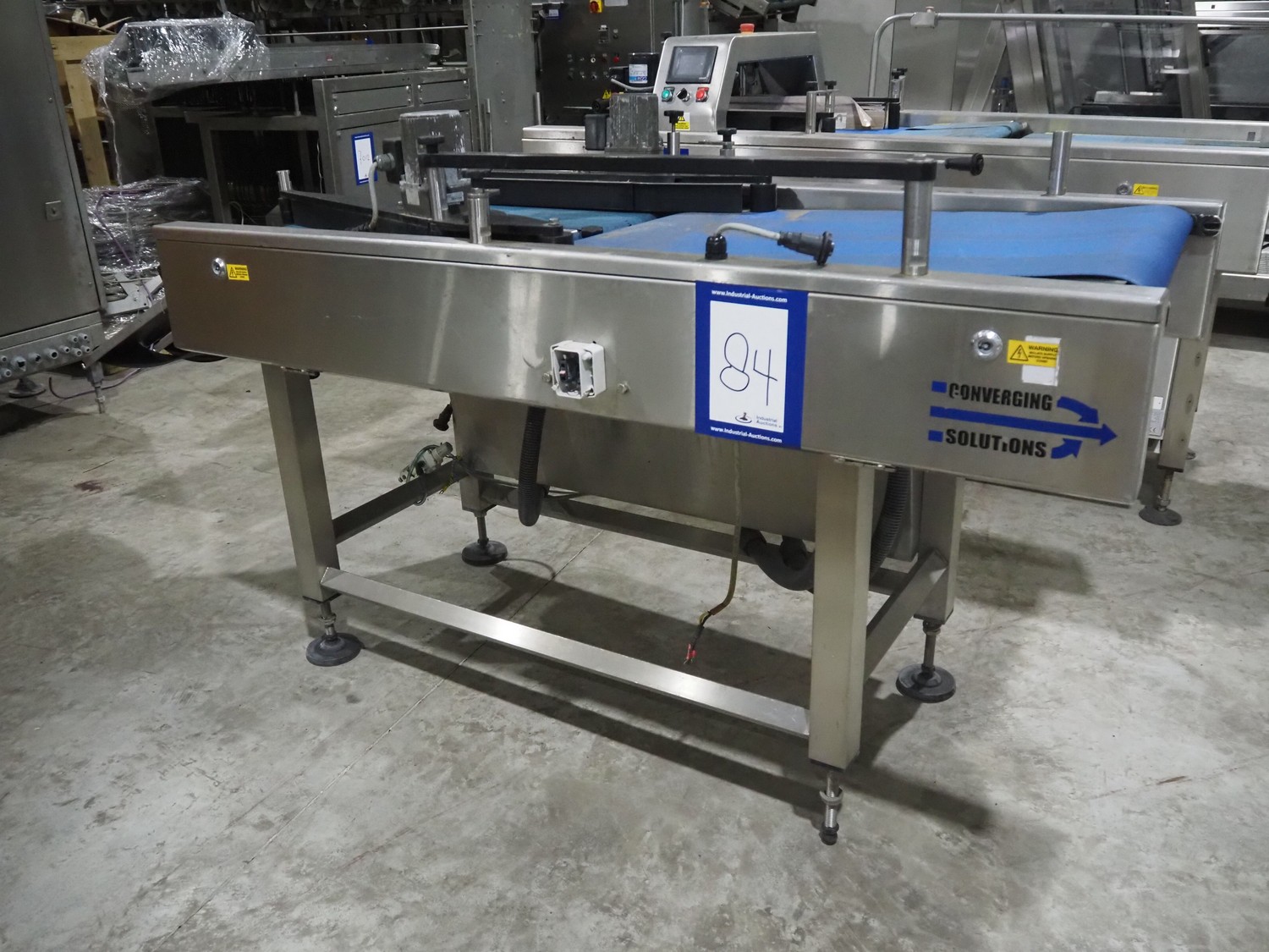 Converging Solutions converging lane dividing belt, model: Integrator Mk2, serial number: CS5455, year of construction: 08/2008, plastic belts, belt width: (2x) 225 mm, (1x) 625 mm, total dimensions: 1580 mm x 820 mm x 1120 mm.