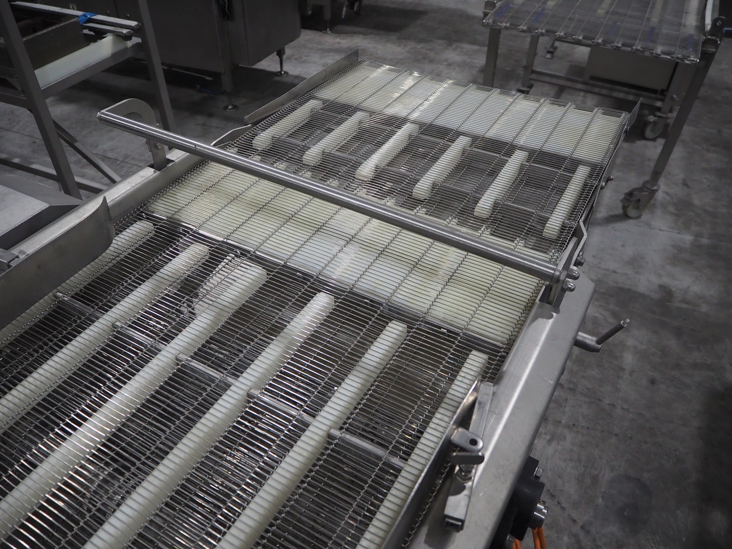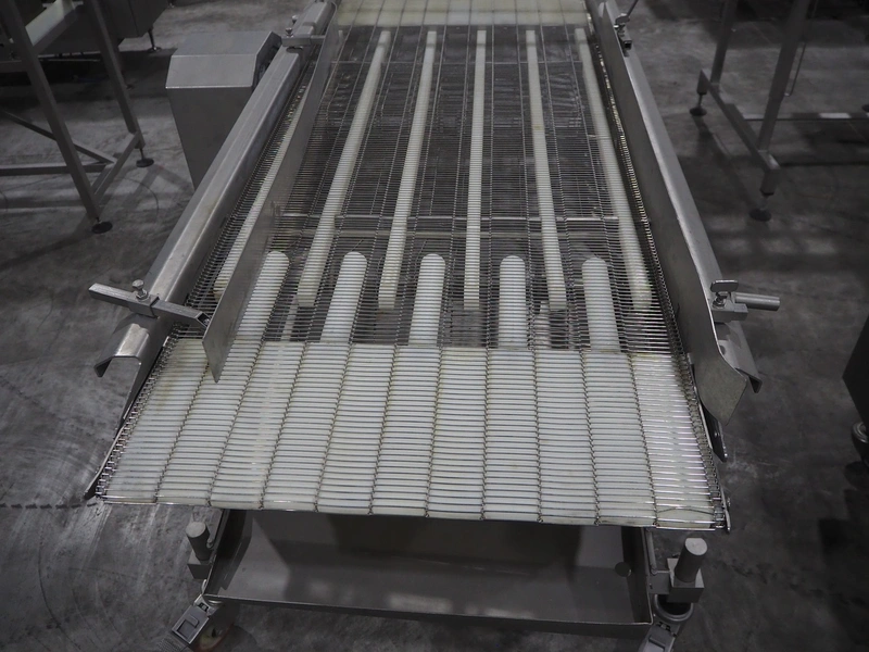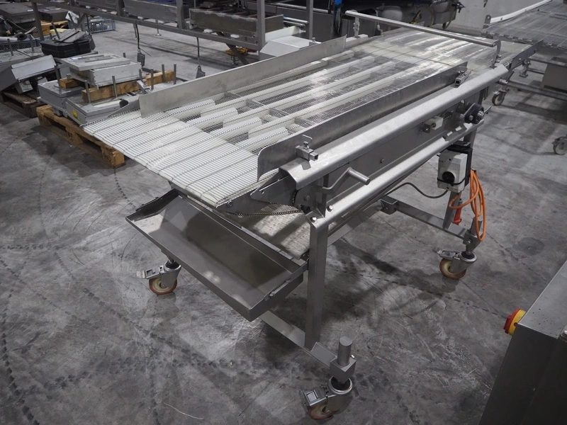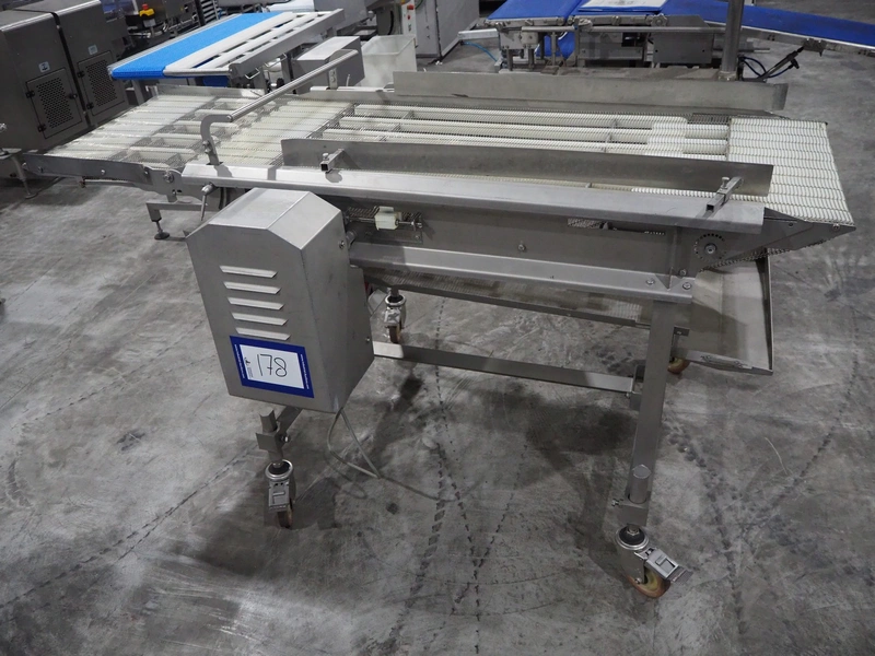 S/s mobile mesh belt, belt width: 630 mm, total dimensions: 2100 mm x 1100 mm x 1150 mm.