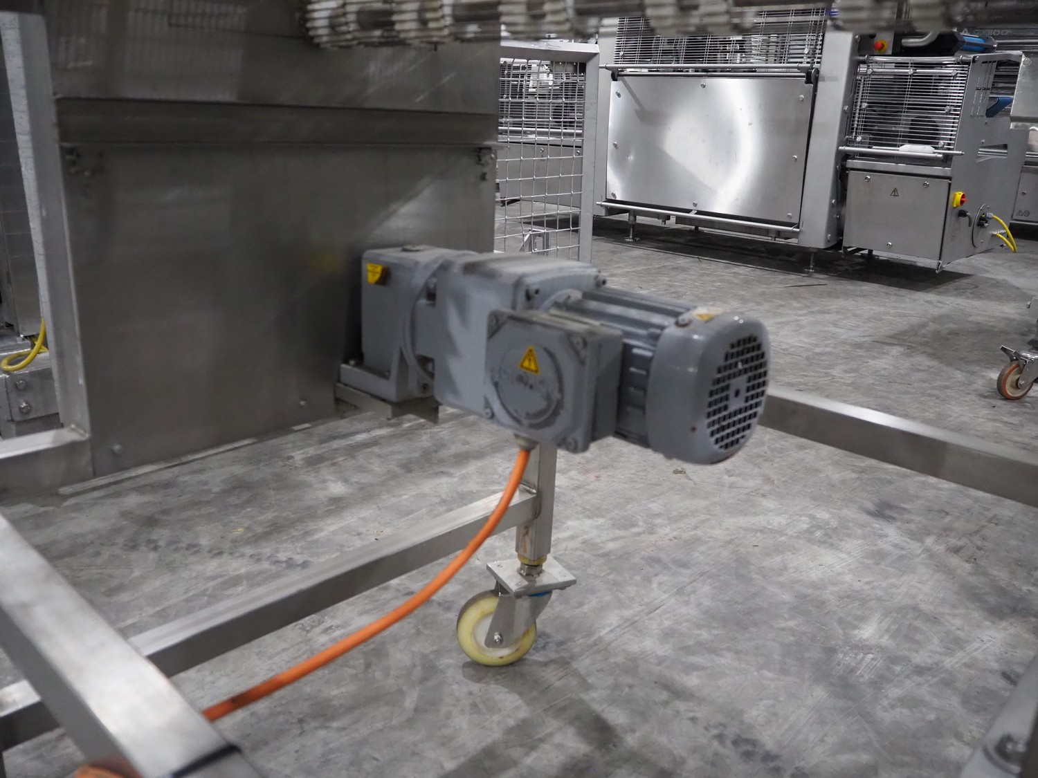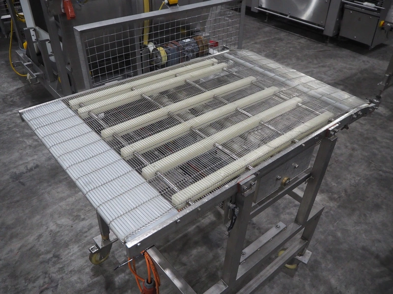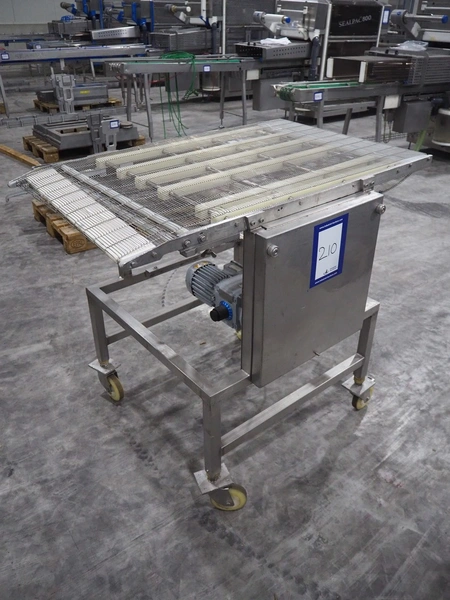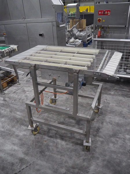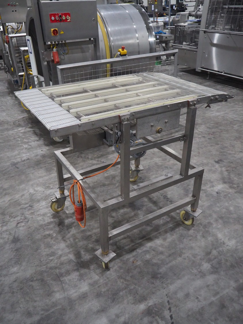 S/s mobile mesh belt, s/s mesh belt, belt width: 710 mm, total dimensions: 1220 mm x 900 mm x 1100 mm.