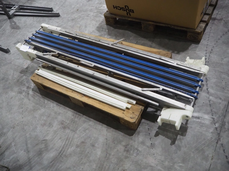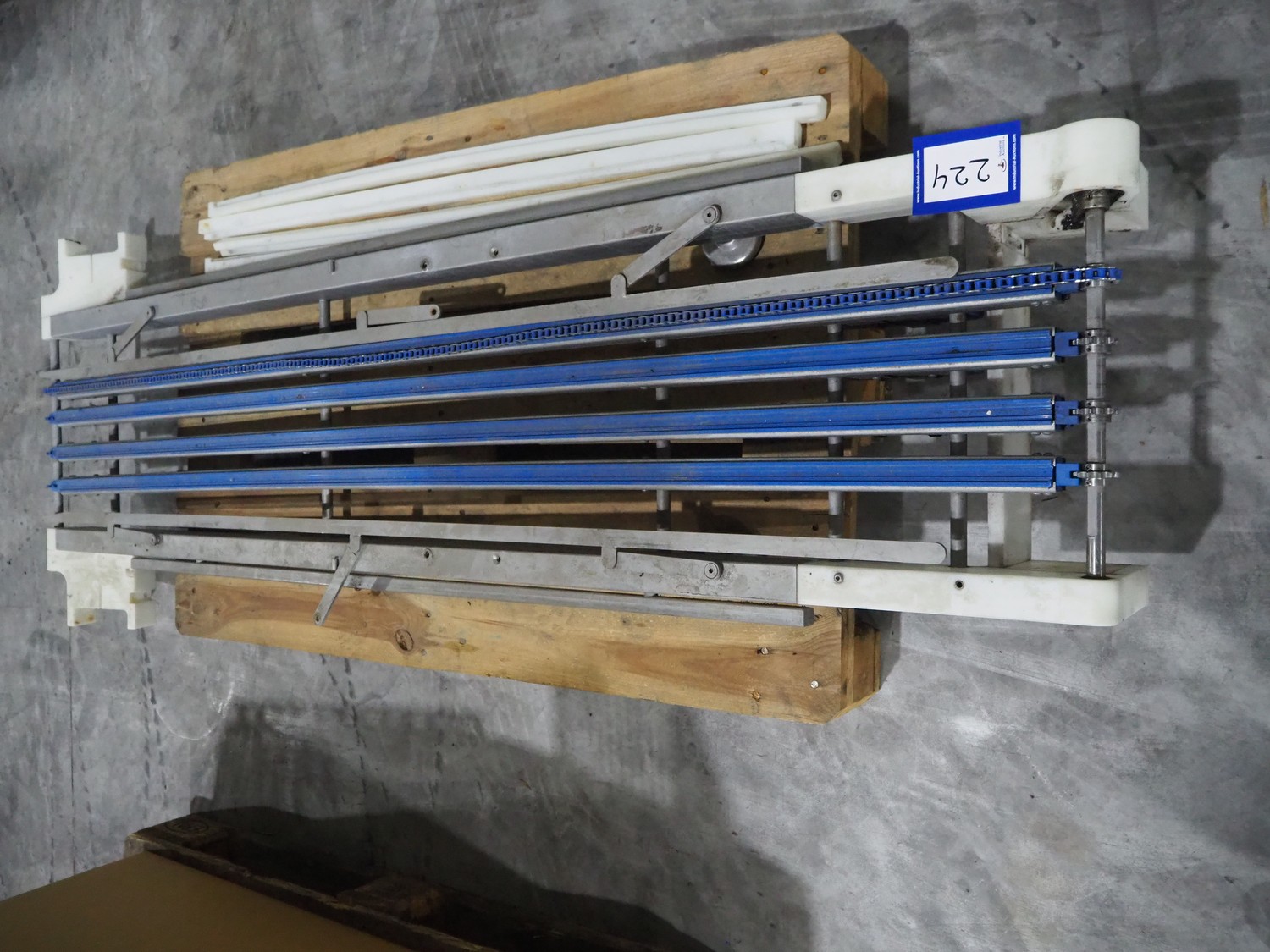 Transport belt, chain conveyor, chain width: 190 mm, total dimensions: 1900 mm x 750 mm x 180 mm. 3 chains are missing.
