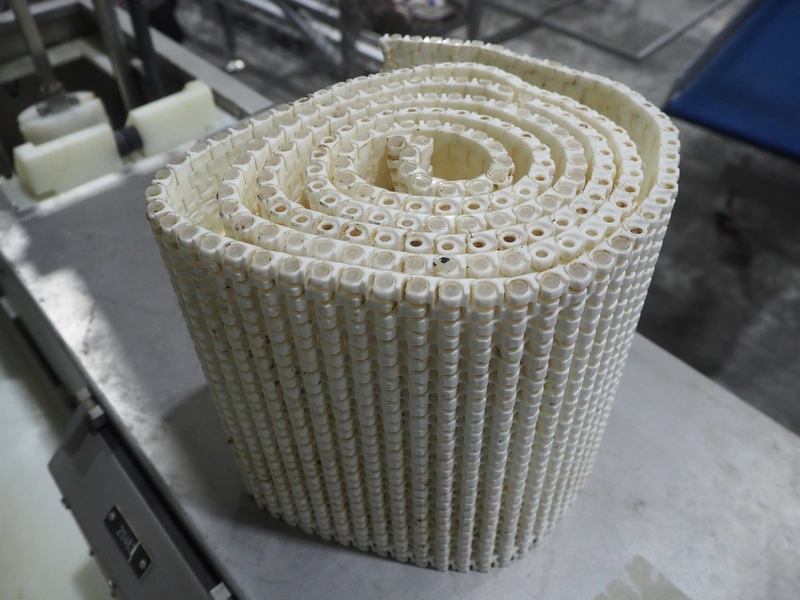 TVI Entwicklung & Produktion GmbH transport belt, plastic mesh belt, belt width: 255 mm, total dimensions: 1150 mm x 750 mm x 1050 mm.