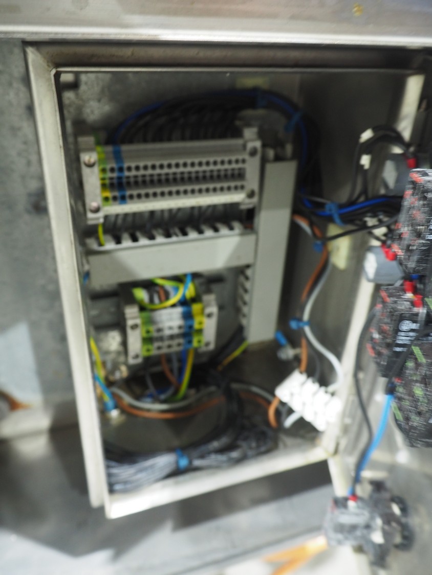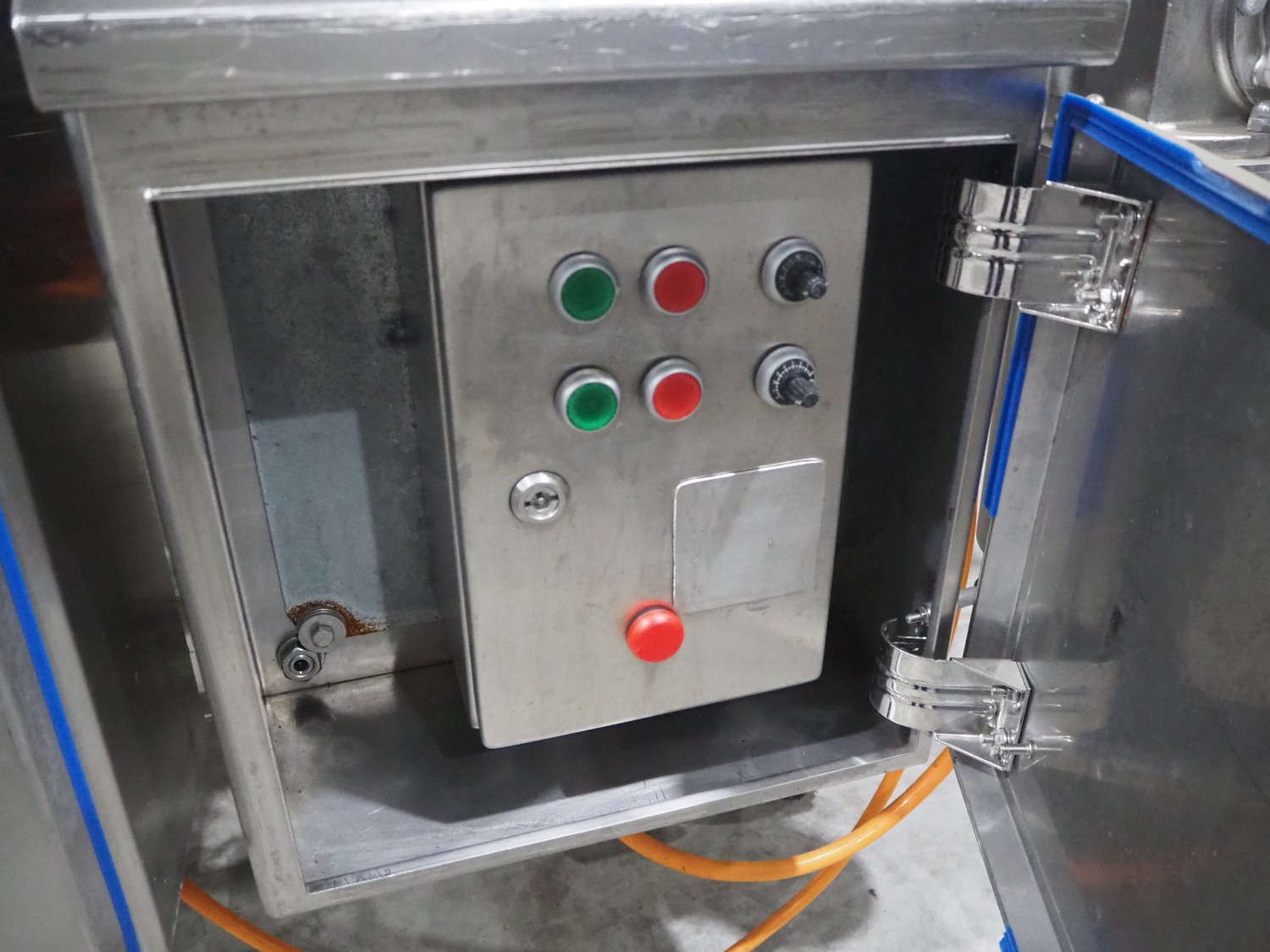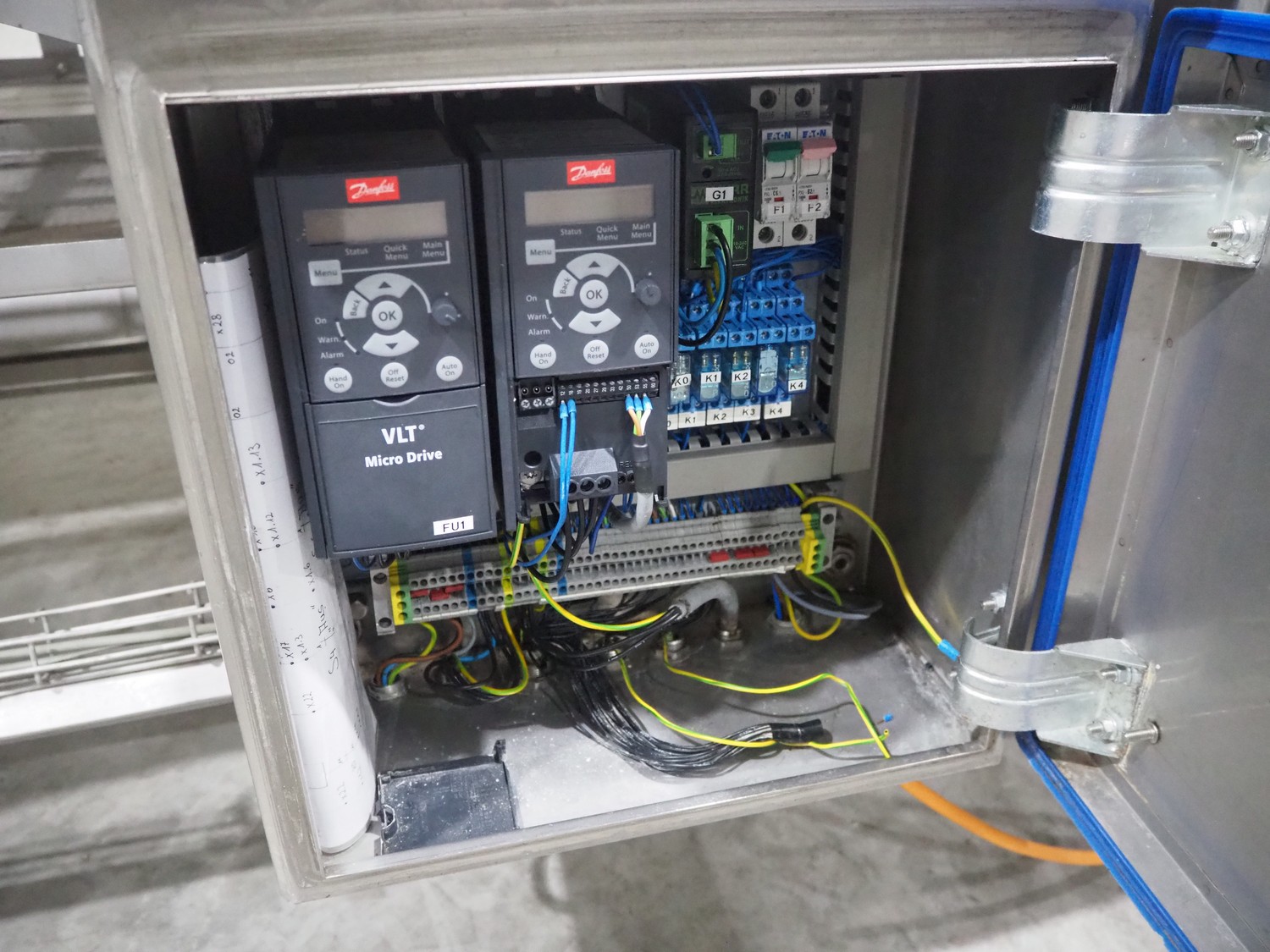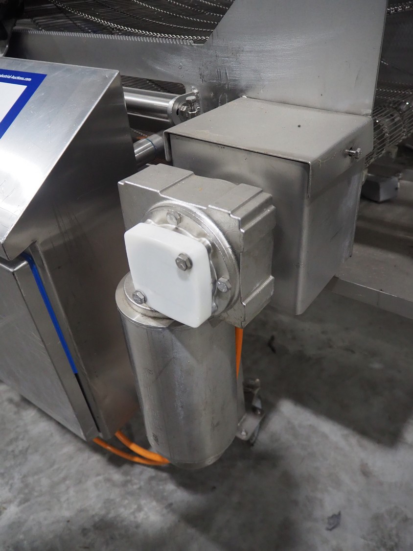 Mobile transport belt, 2 lanes, s/s mesh belts, belt width: 510 mm, total dimensions: 8100 mm x 1900 mm x 1100 mm.