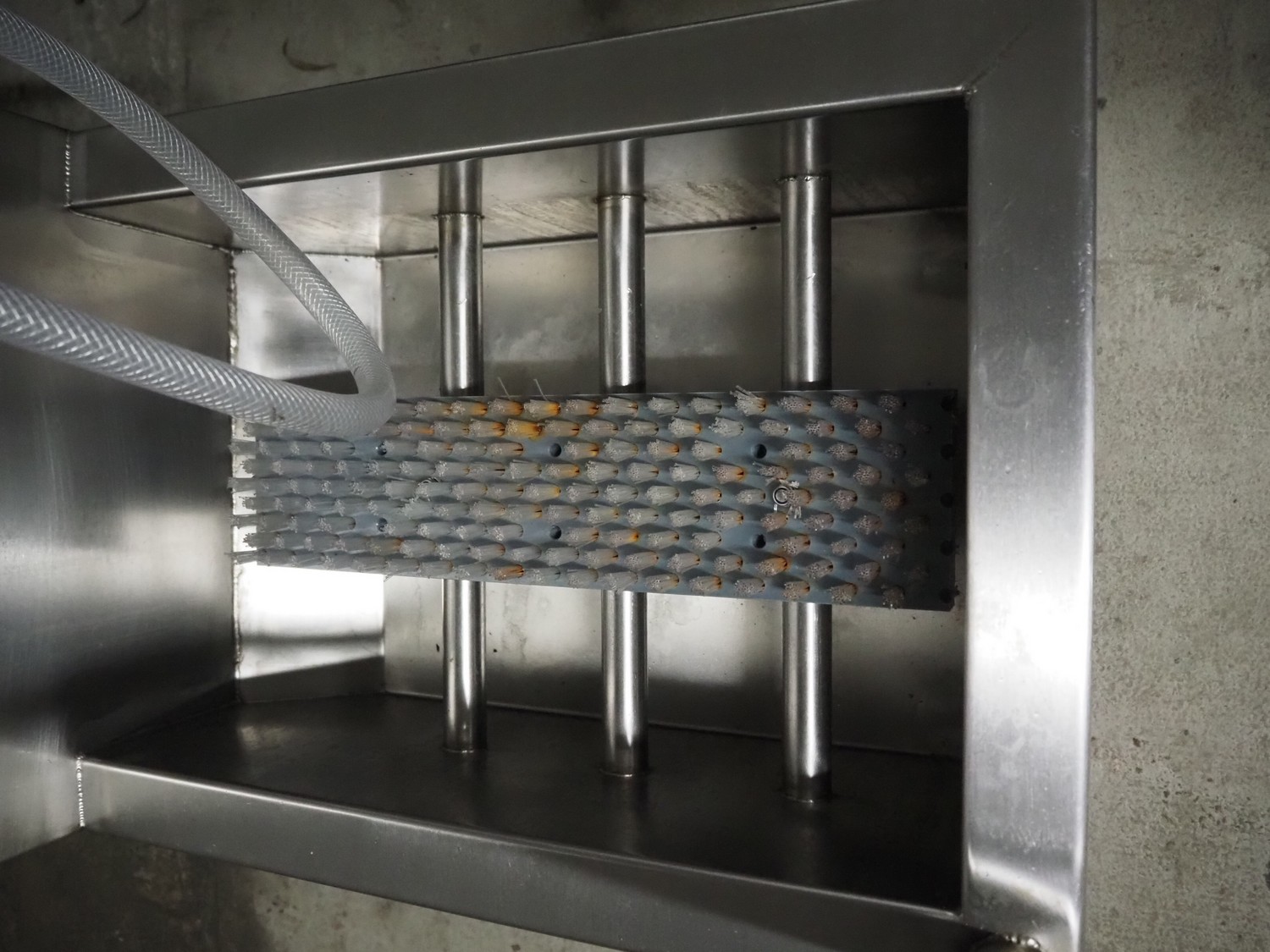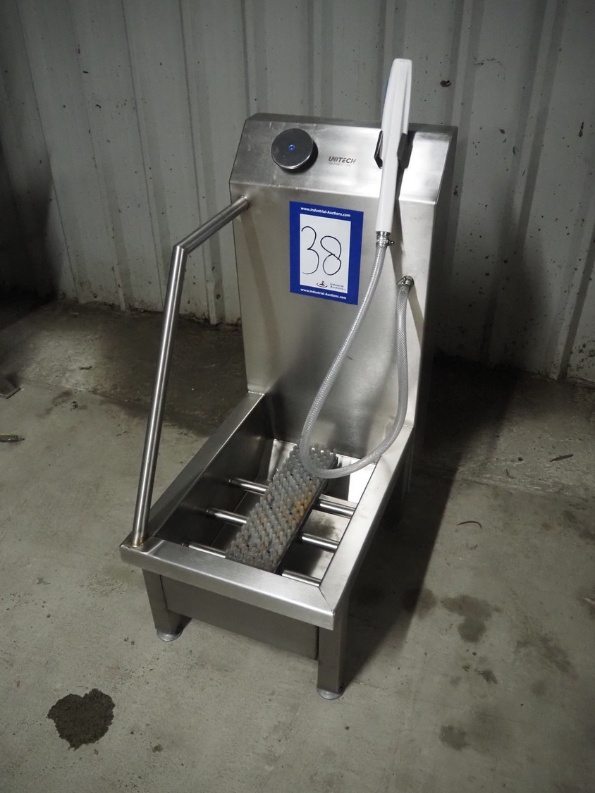 Unitech sole cleaner, brush dimensions: 400 mm x 100 mm, total dimensions: 650 mm x 400 mm x 875 mm.