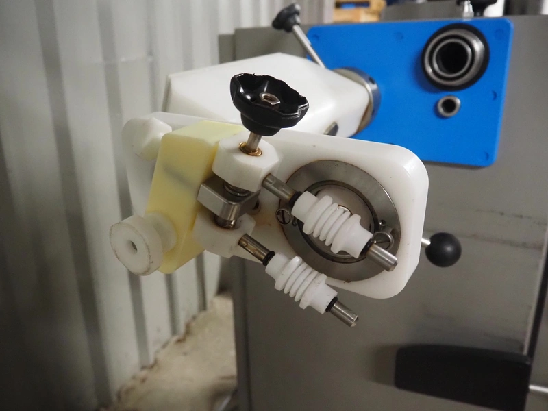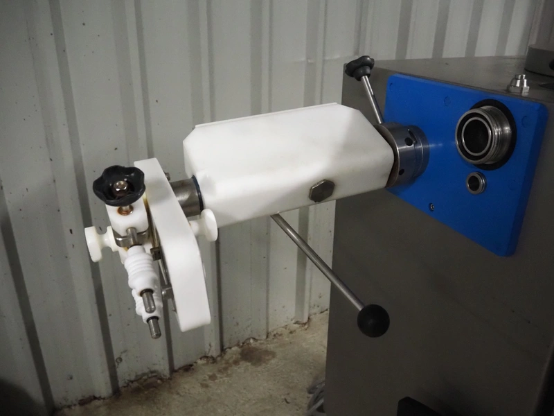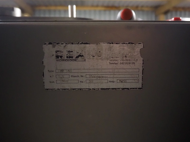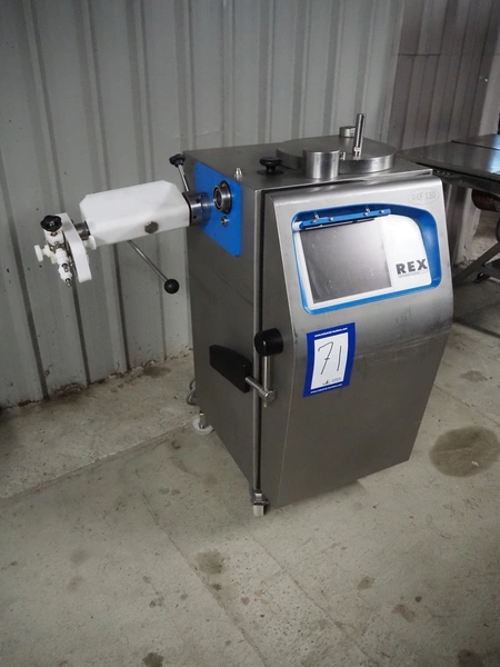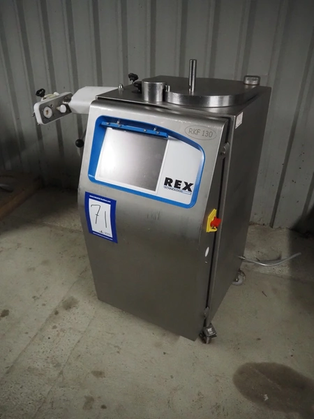 REX piston filler with case holding device, type: RKF 130, machine number: 1300340411, 400 V, 50 Hz, 16 A, kW, 3.3 kW, volume: 30 liter, total dimensions: 1100 mm x 800 mm x 1200 mm.