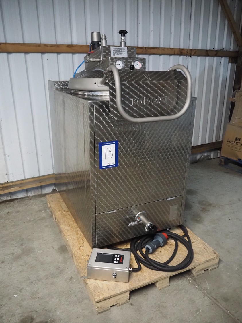 Korimat autoclave, type: KA 380/2.5, manufacturing number: 382311, year of construction: 12/2023, 230/400 V, 3 Ph, 25 kW, volume: 380 liter, dimensions: 1700 mm x 1100 mm x 1850 mm. Never used.