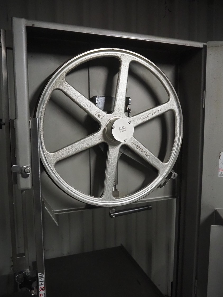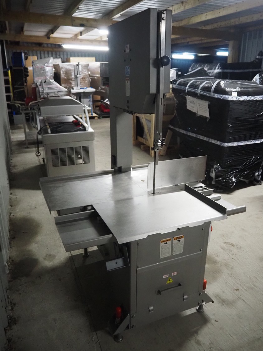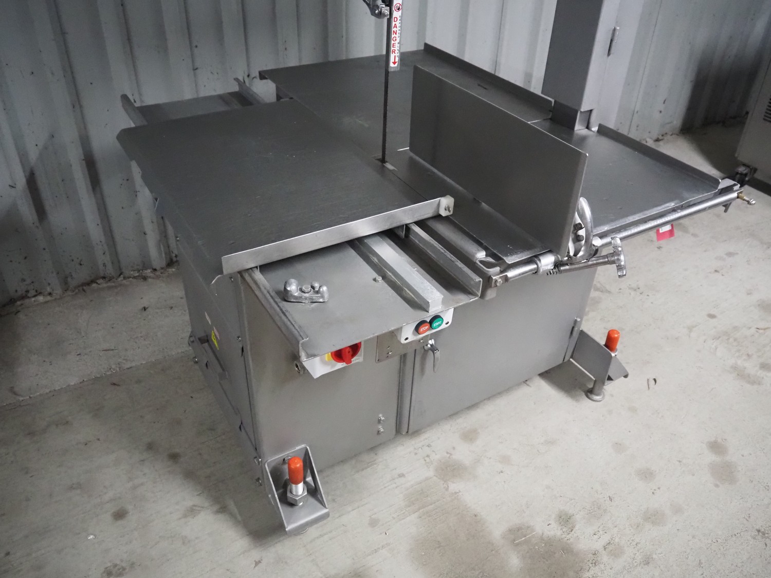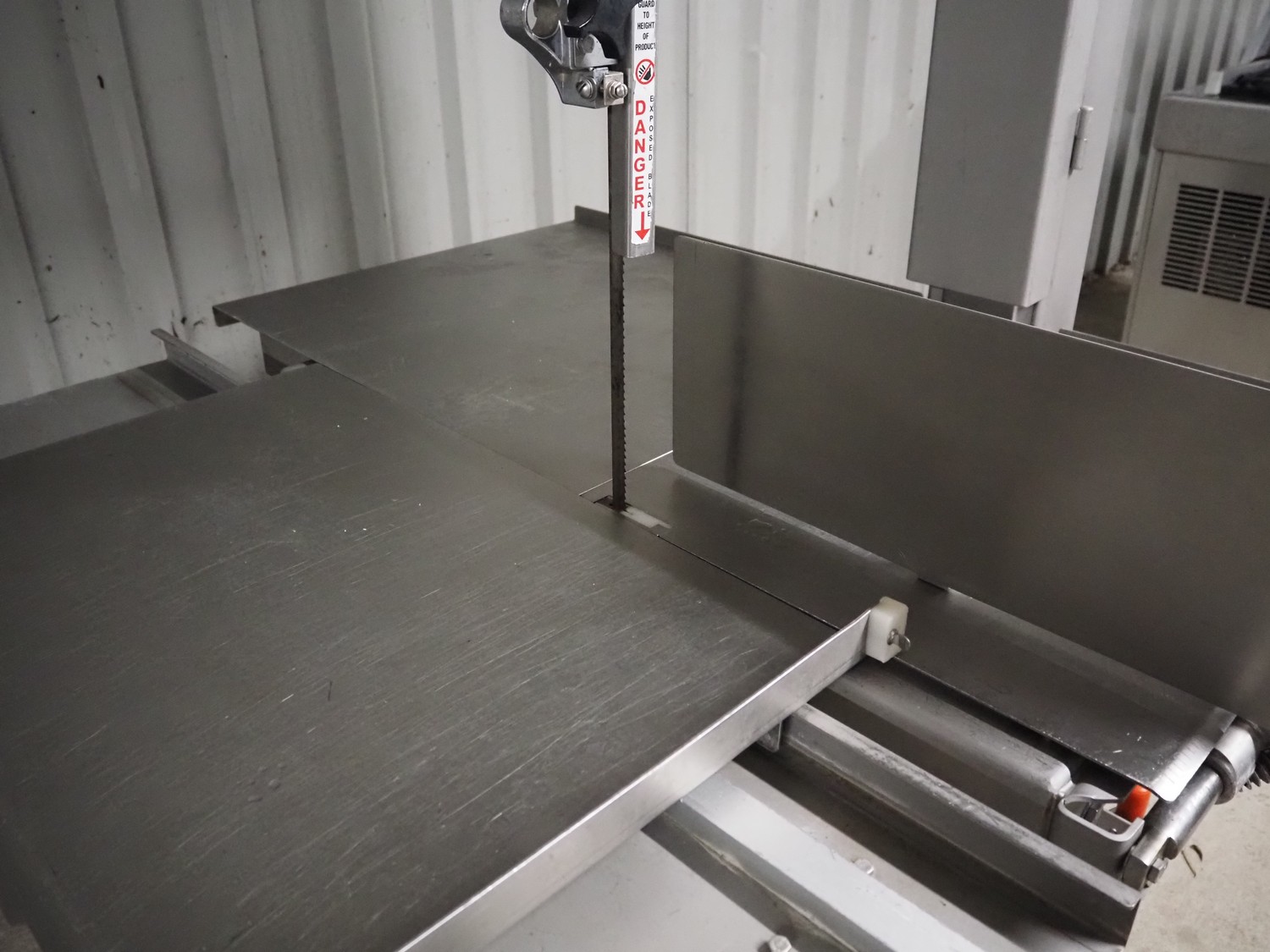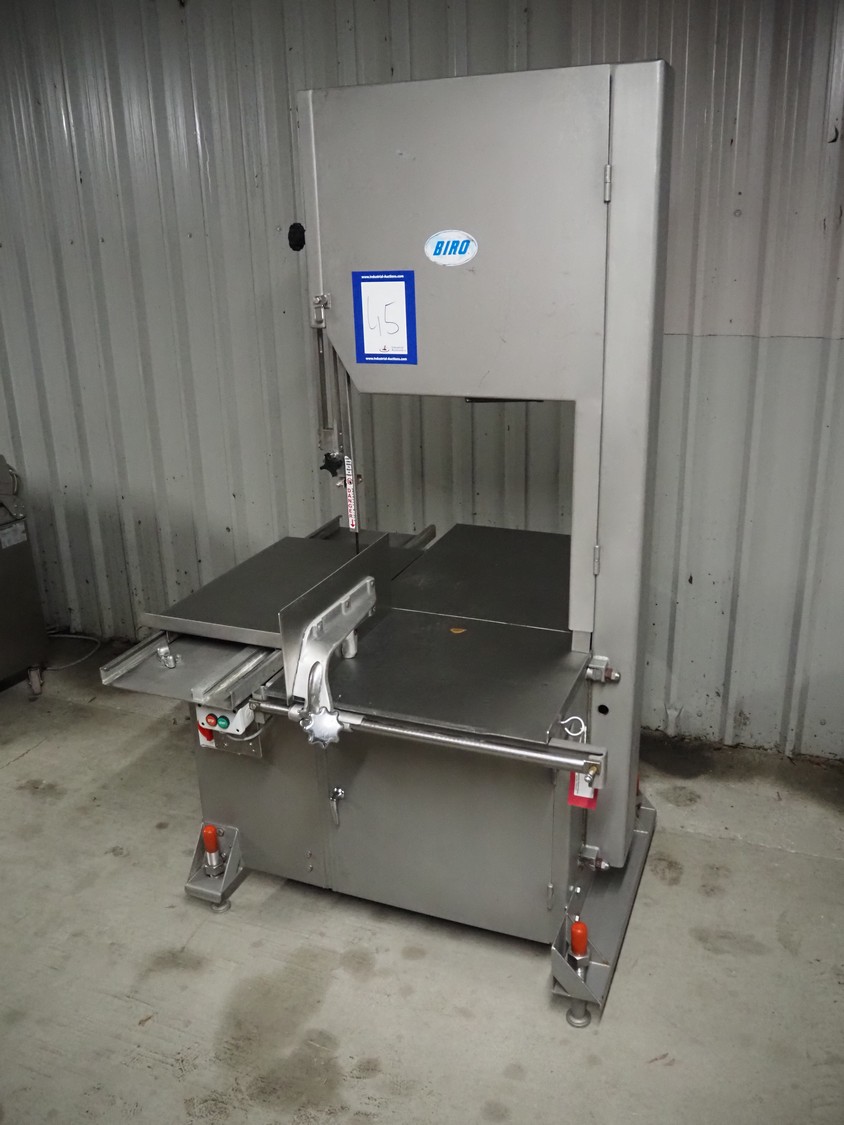 Biro bandsaw, type: 55, serial number: 55112, 380 V, 3 Ph, 50 Hz, 6.9 A, 4 Hp, table dimensions: 1195 mm x 1095 mm, total dimensions: 1330 mm x 1220 mm x 2010 mm.
