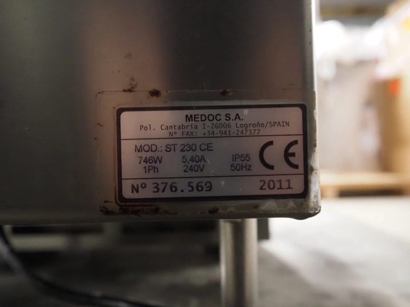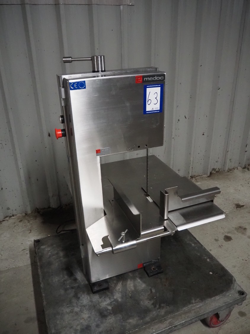 Medoc bandsaw, model: ST 230 CE, number: 376.569, year of construction: 2011, 240 V, 1 Ph, 50 Hz, 5.40 A, 746 W, table dimensions: 600 mm x 530 mm, total dimensions: 650 mm x 550 mm x 940 mm.