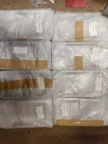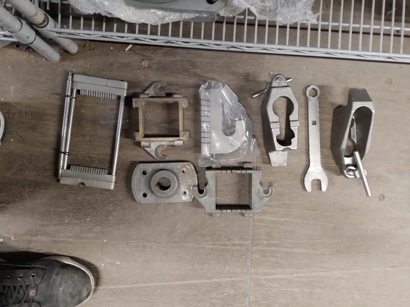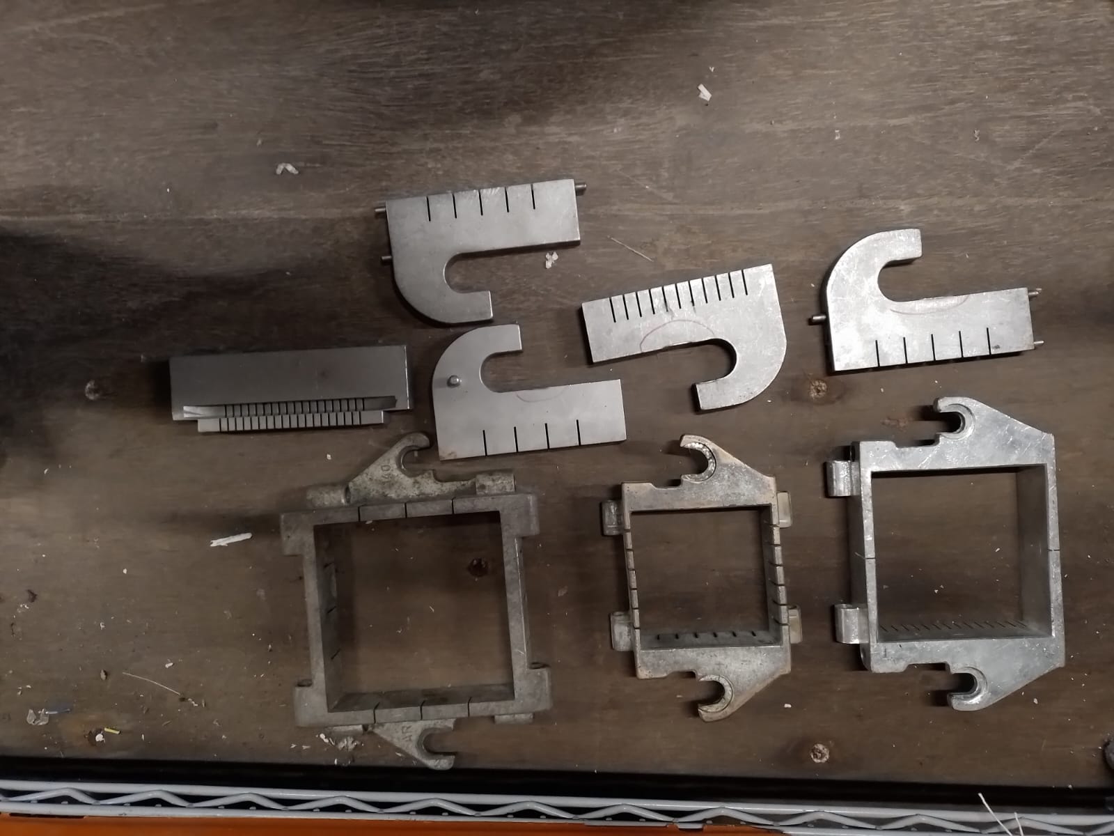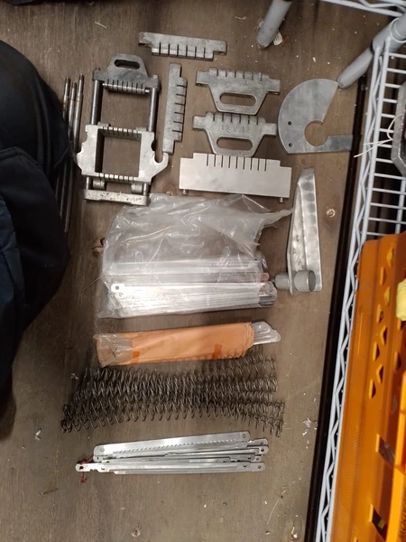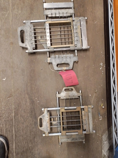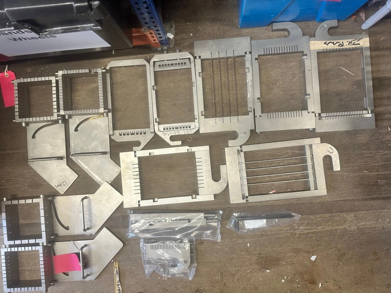 Large amount of parts for Rühle dicer, among others: grids and knives.