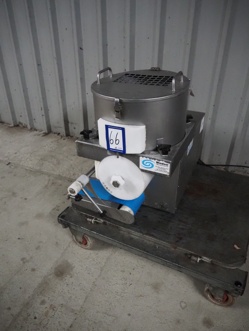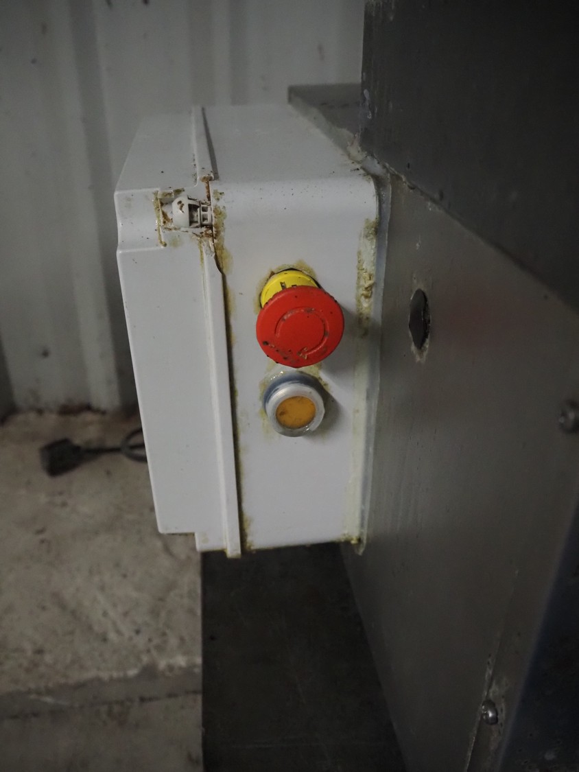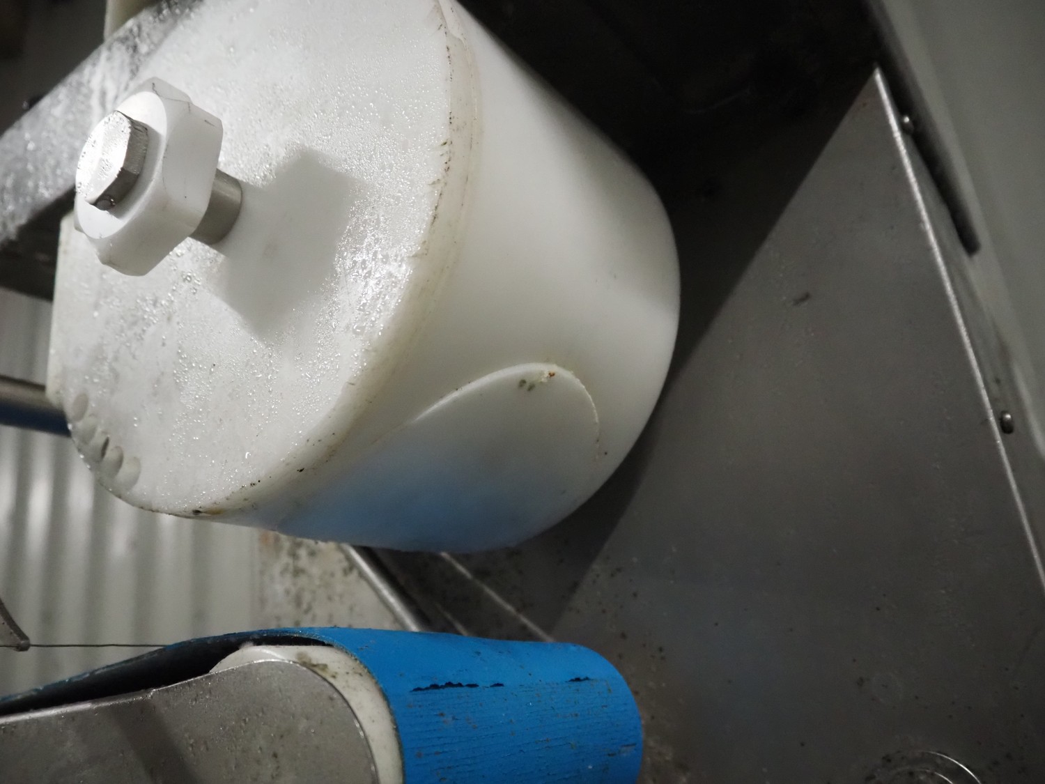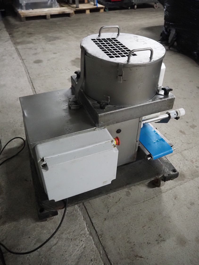 Deighton Manufacturing UK LTD burger forming machine, dye: Ø 115 mm, plastic belt, belt width: 120 mm, total dimensions: 800 mm x 530 mm x 630 mm.