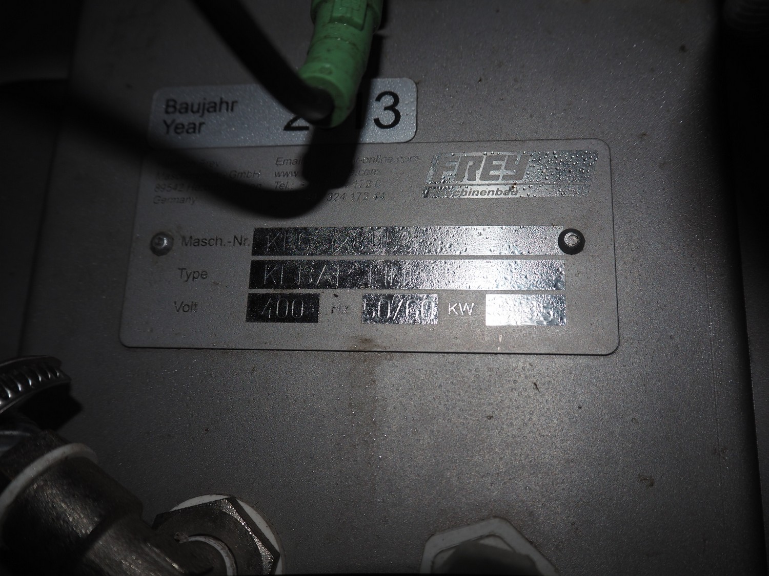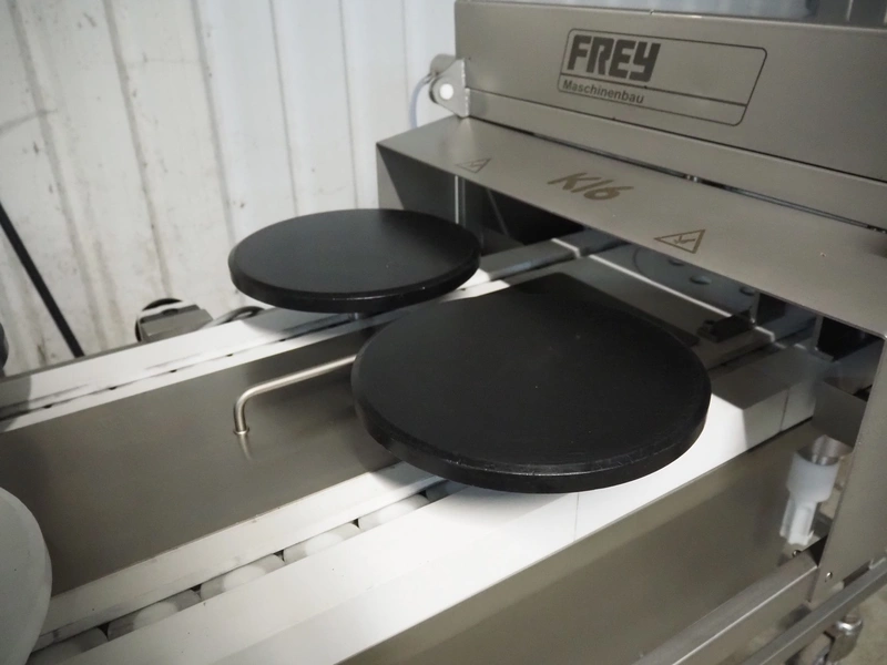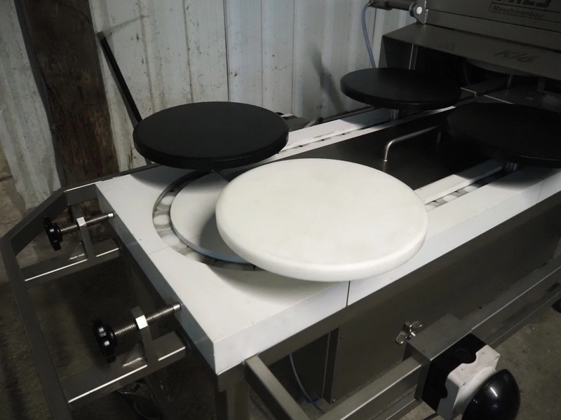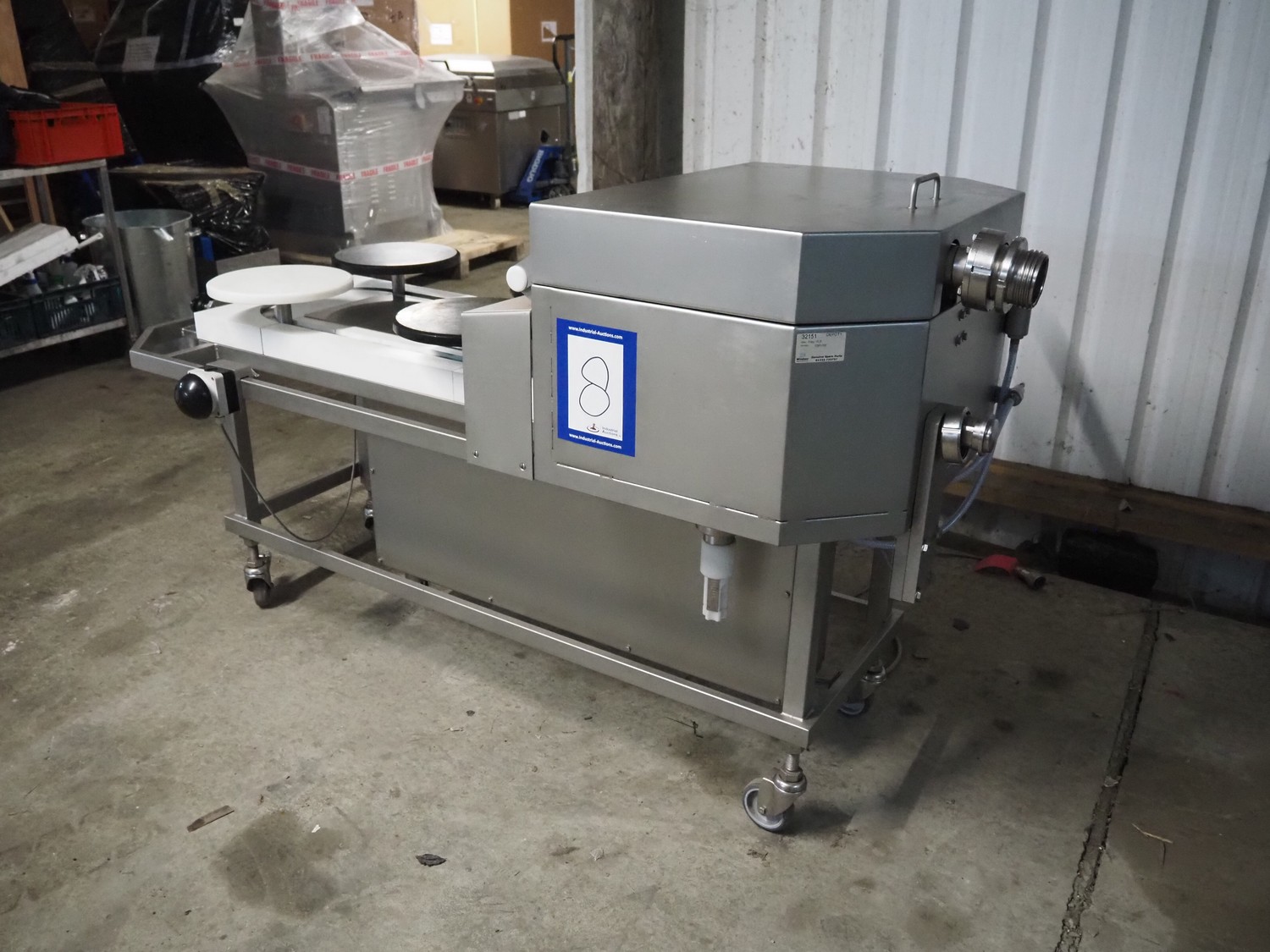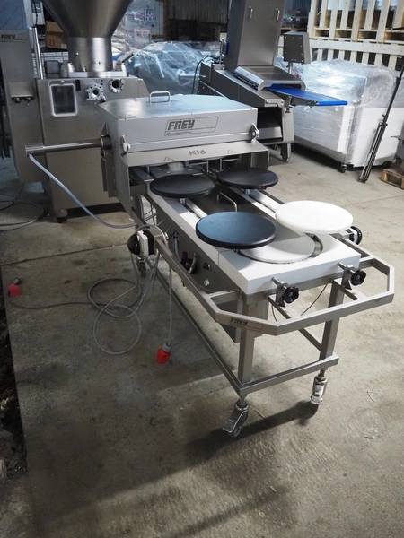 Frey Maschinenbau GmbH mobile kebab filling machine, type: KEBAB-LINE, machine number: KL6 1281153, 400 V, 50/60 Hz, 6 stations, diameter each station: 300 mm, total dimensions: 2070 mm x 1270 mm x 1160 mm.