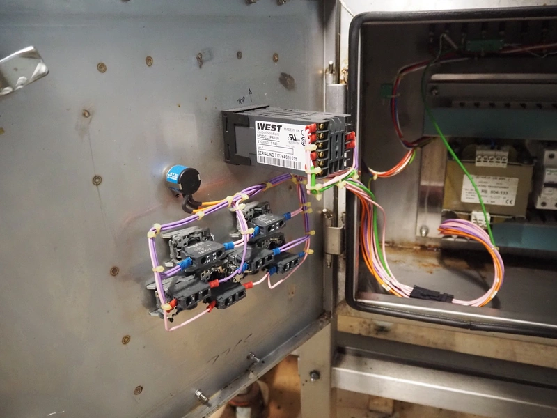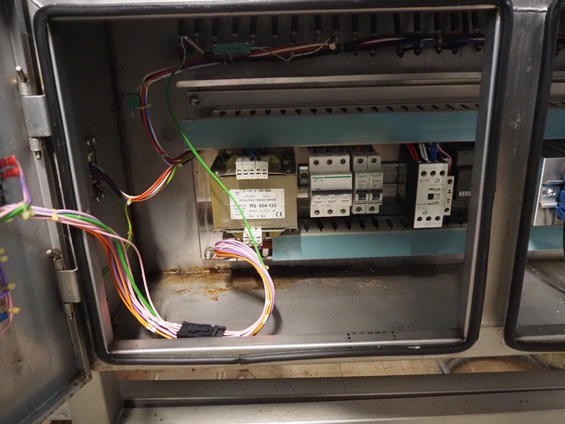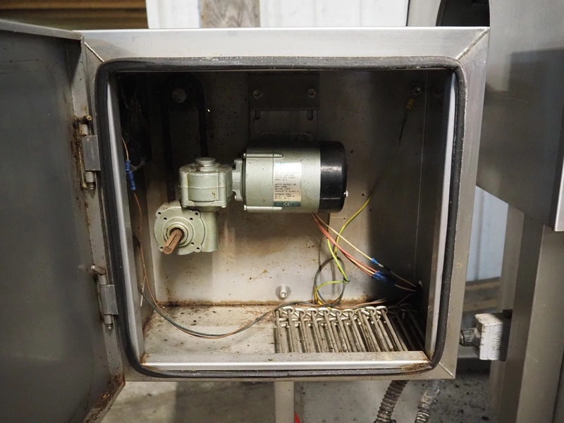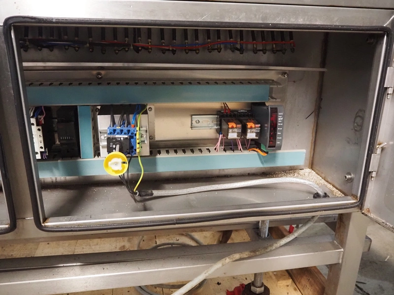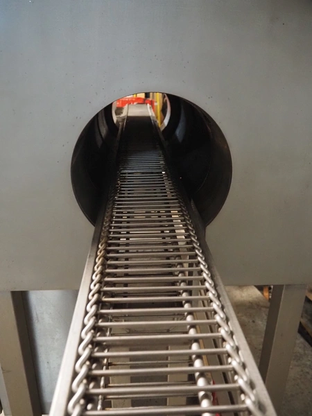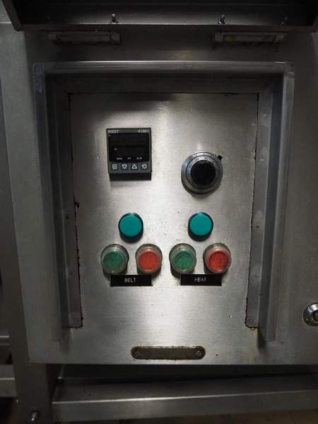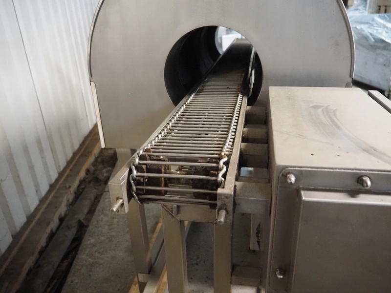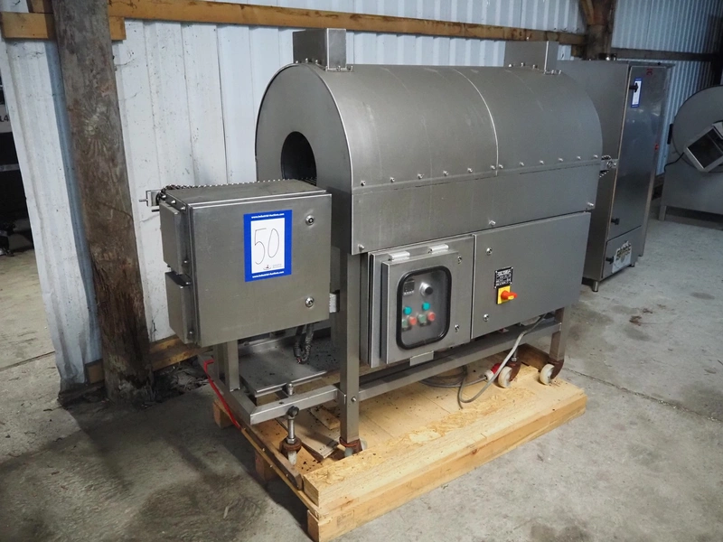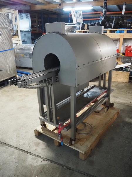 Frampton Worldwide Ltd mobile flash roaster, model: FR-1-3, serial number: 7765/0414, 415 V, 3 Ph, 20 kW, s/s mesh belt, belt width: 140 mm, clearance: Ø 260 mm, total dimensions: 2350 mm x 900 mm x 1650 mm.