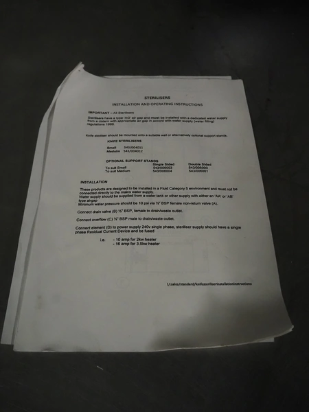 Syspal knife sterilizer, dimensions: 860 mm x 440 mm x 150 mm.