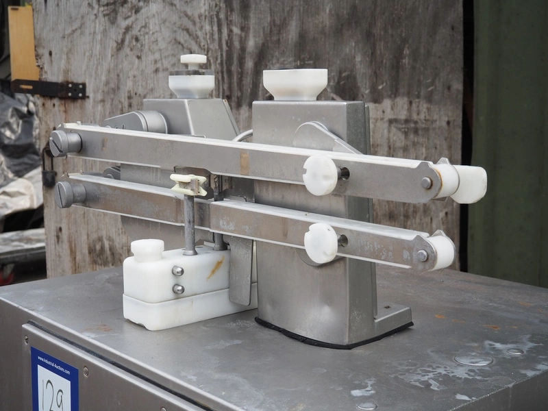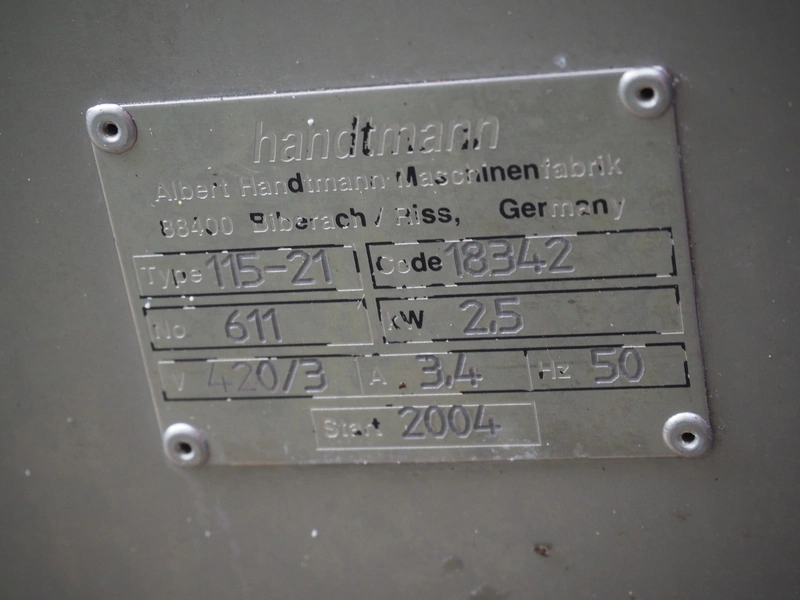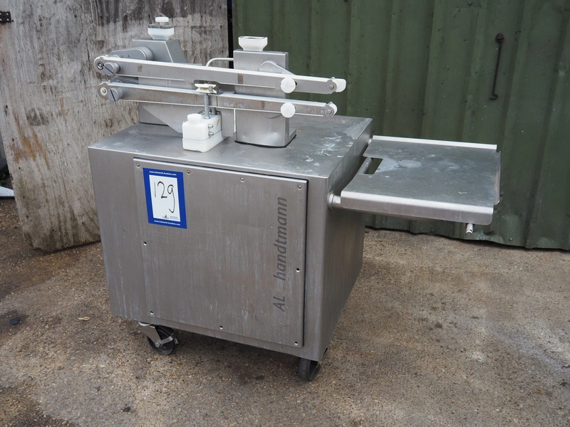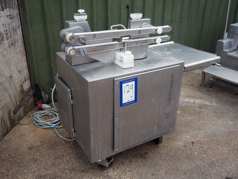 Handtmann mobile linking machine, type: 115-21, number: 611, year of construction: 2004, 420 V, 3 Ph, 50 Hz, 3.4 A, 2.5 kW, dimensions: 1300 mm x 700 mm x 1250 mm.