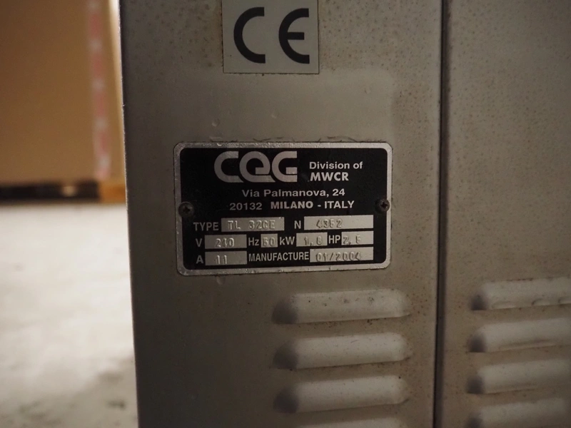 Omega grinder, type: TL 32CE, serial number: 4352, year of construction: 01/2004, 240 V, 50 Hz, 11 A, 1.8 kW, plate dimensions: Ø 100 mm, total dimensions: 750 mm x 460 mm x 640 mm.