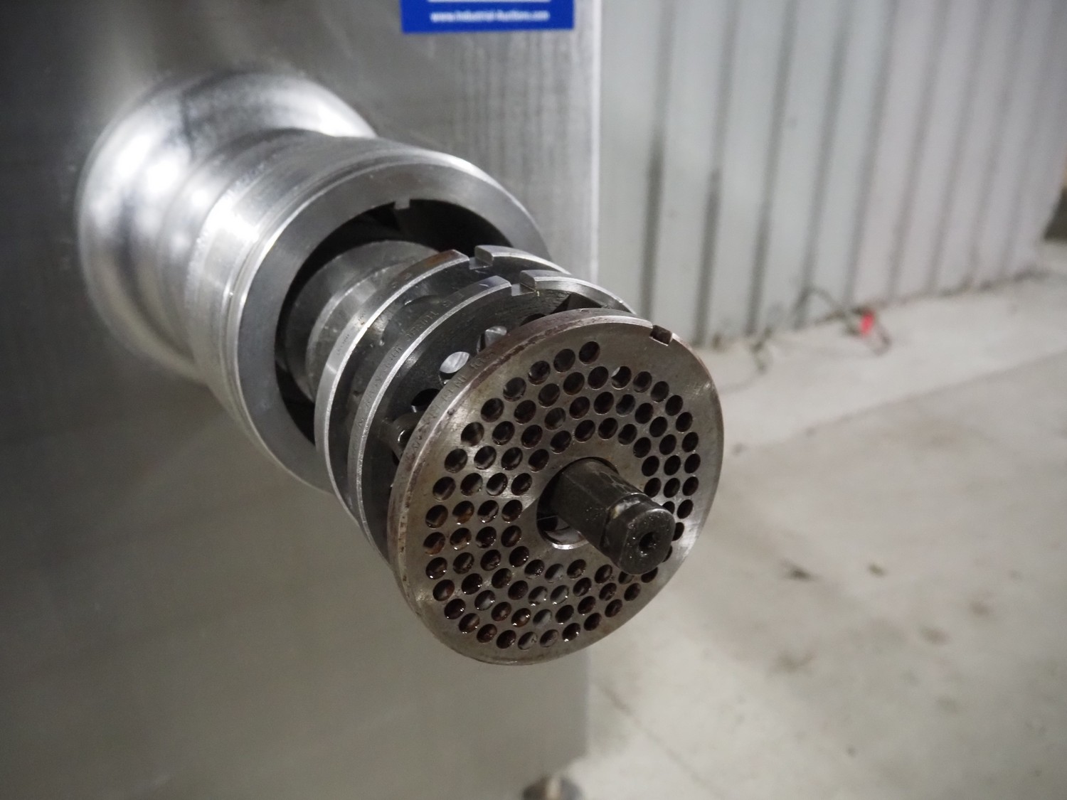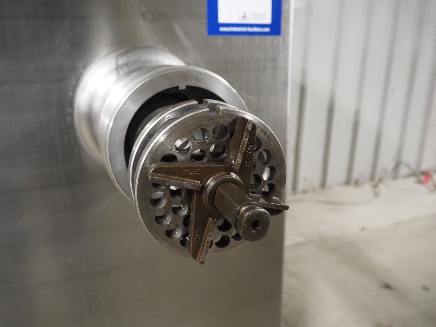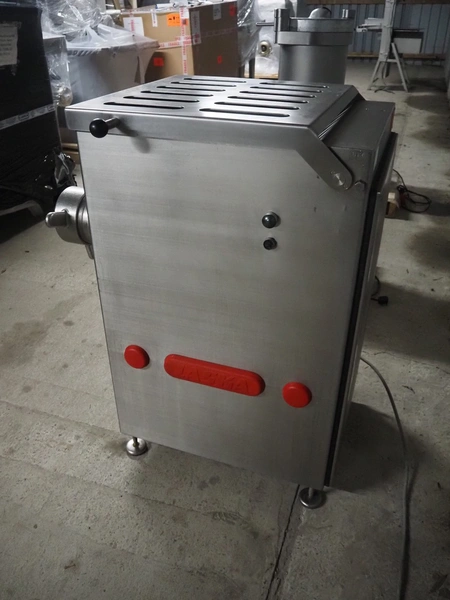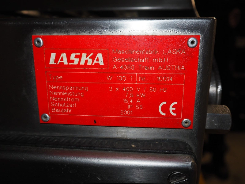 Laska grinder, type: W 130 1, serial number: 10014, year of construction: 2001, 3x400 V, 50 Hz, 15.4 A, 7.5 kW, plate diameter: Ø 130 mm, total dimensions: 1070 mm x 700 mm x 1150 mm. With extra plates and knives.