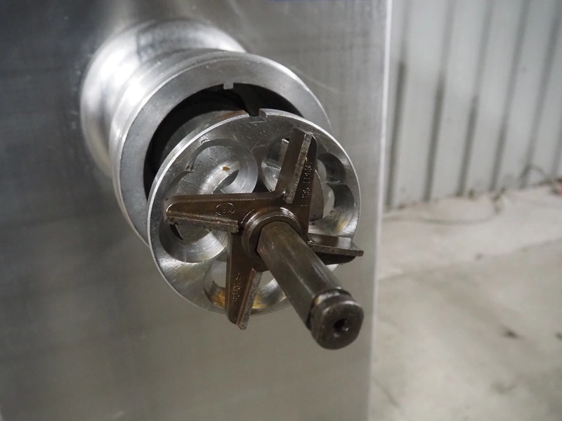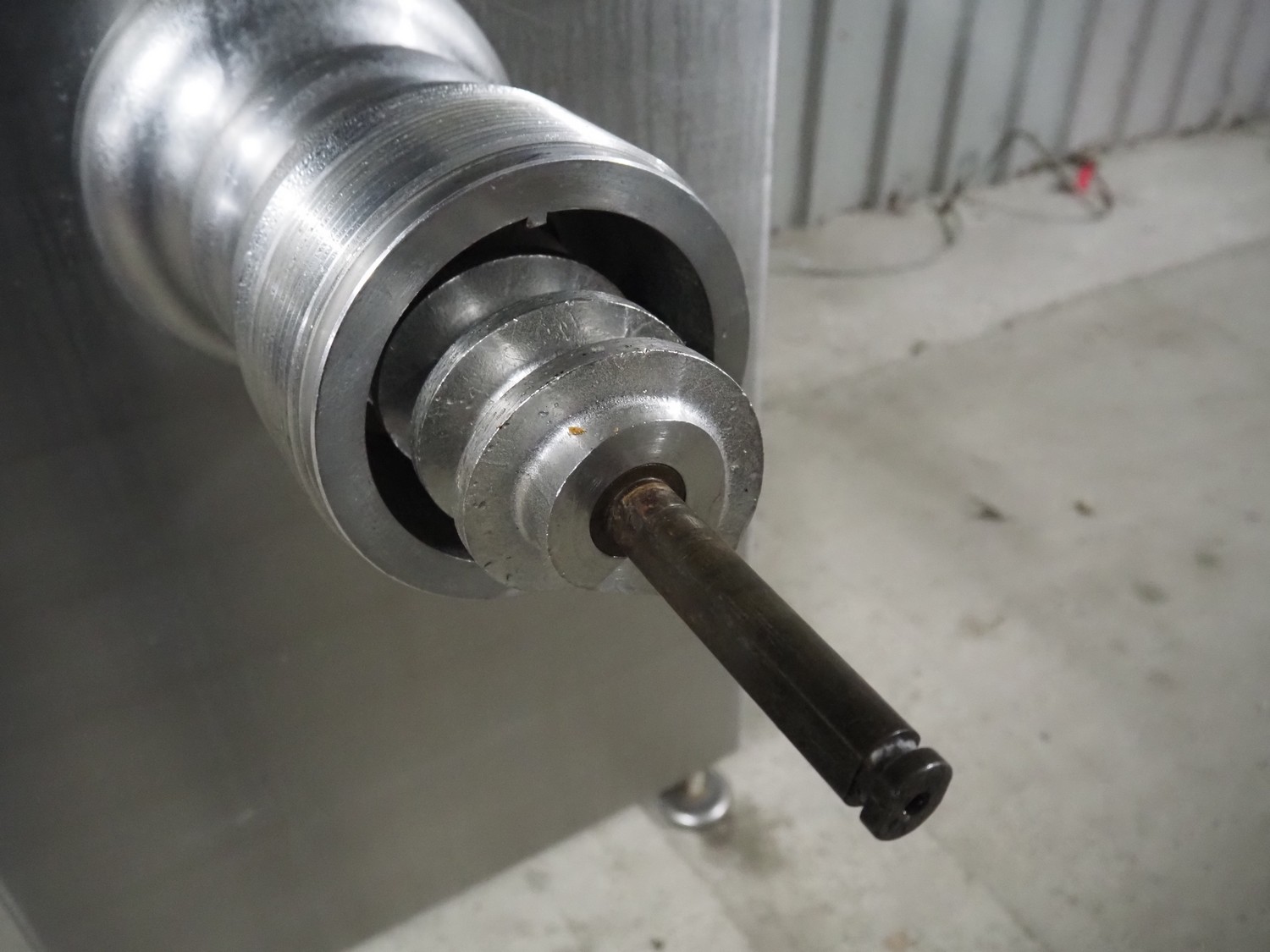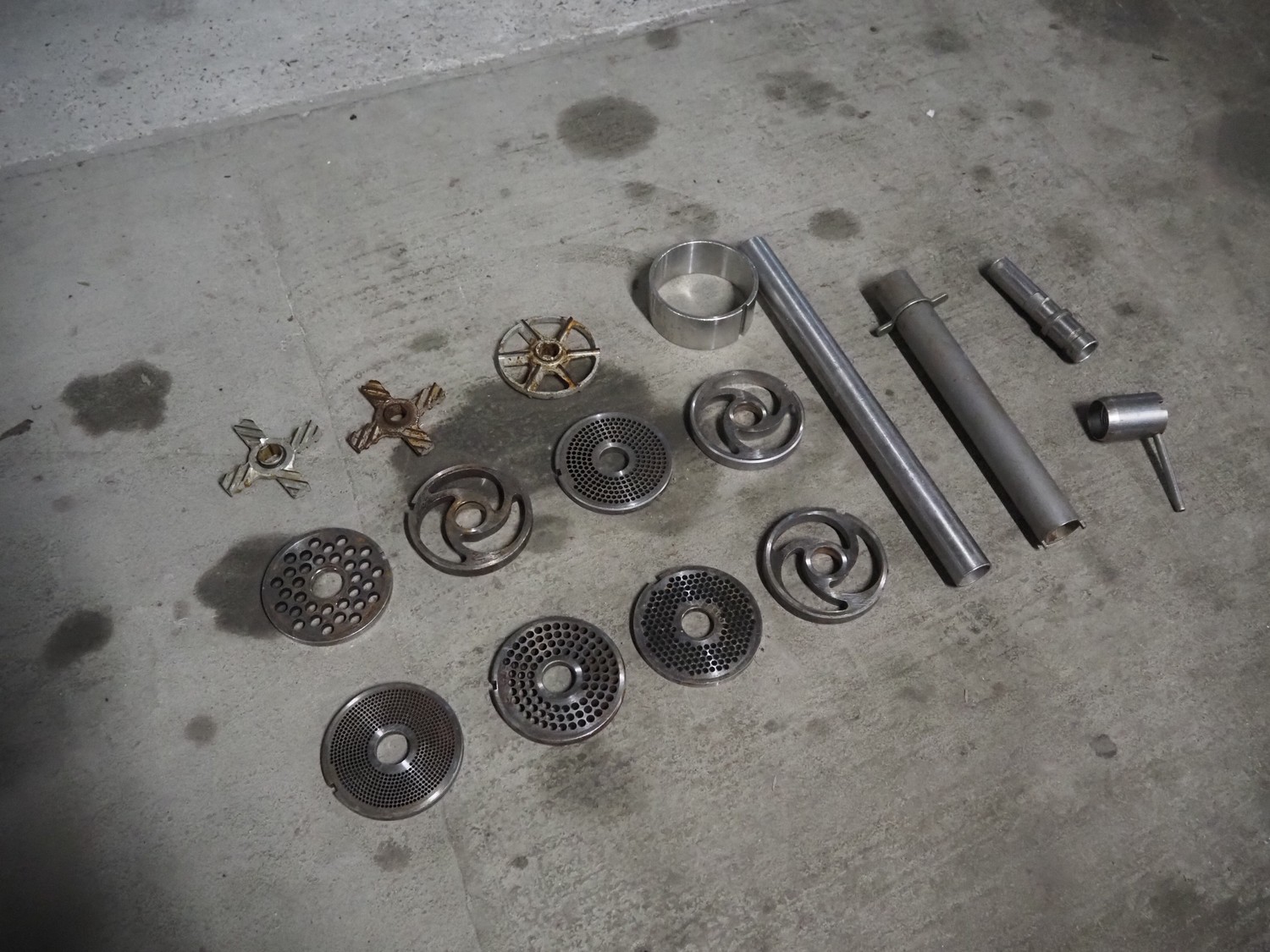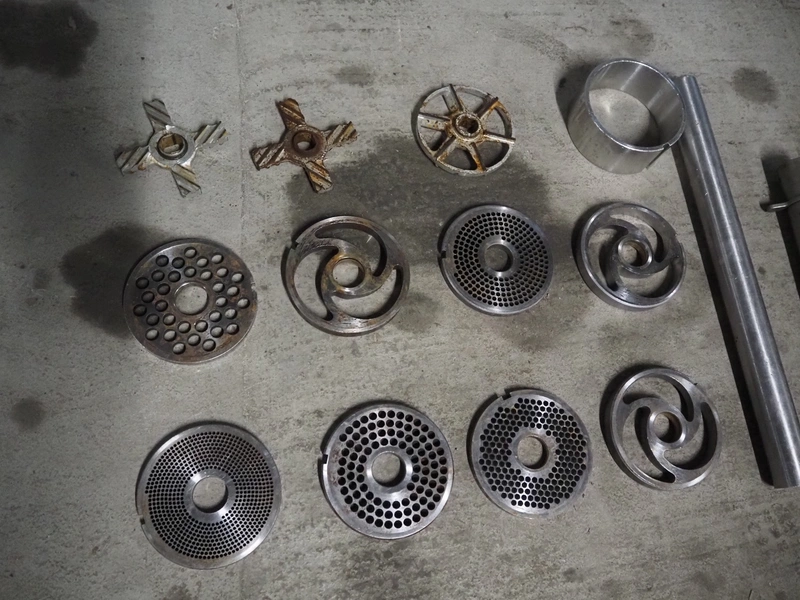 Laska grinder, type: W 130 1, serial number: 10014, year of construction: 2001, 3x400 V, 50 Hz, 15.4 A, 7.5 kW, plate diameter: Ø 130 mm, total dimensions: 1070 mm x 700 mm x 1150 mm. With extra plates and knives.