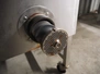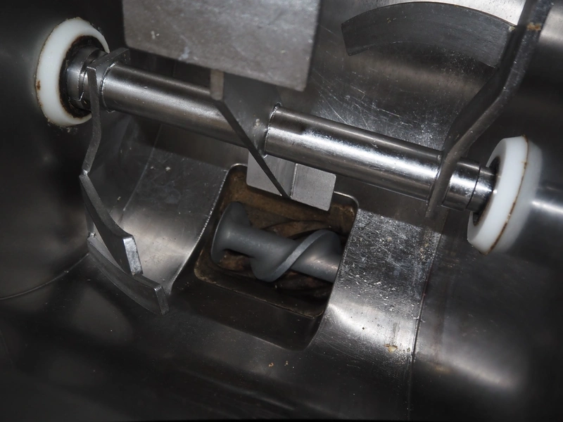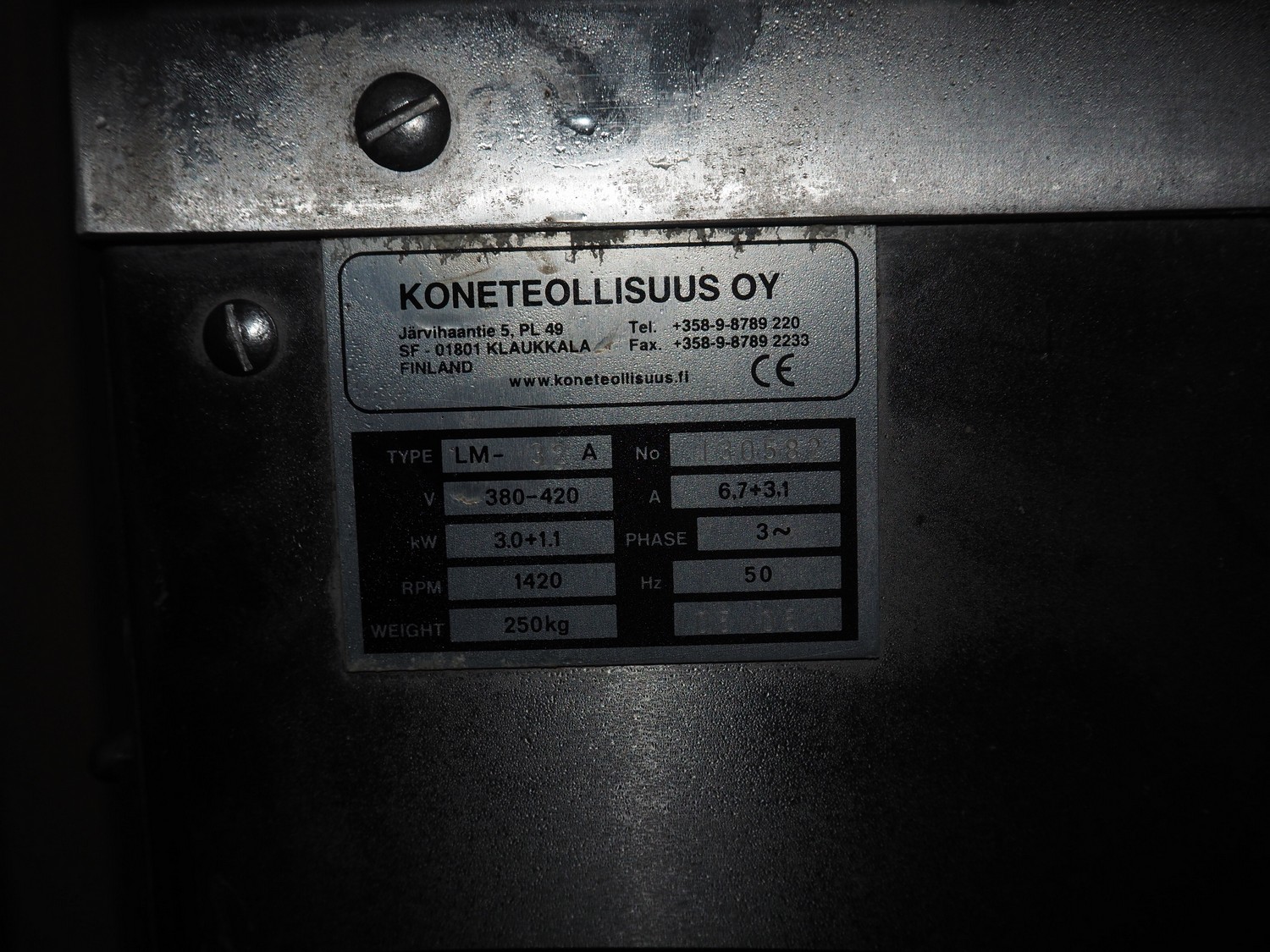 Koneteollisuus OY mobile paddle mixer-grinder, type: LM-32A, serial number: 130582, 380-420 V, 3 Ph, 50 Hz, 6.7+3.1 A, 3.0+1.1 kW, weight: 250 kg, plate diameter: Ø100 mm, total dimensions: 930 mm x 800 mm x 1160 mm.