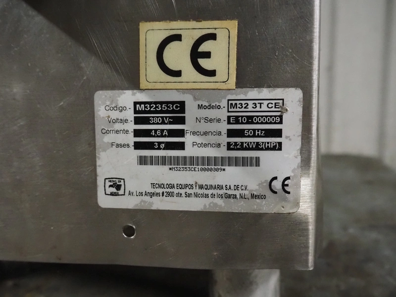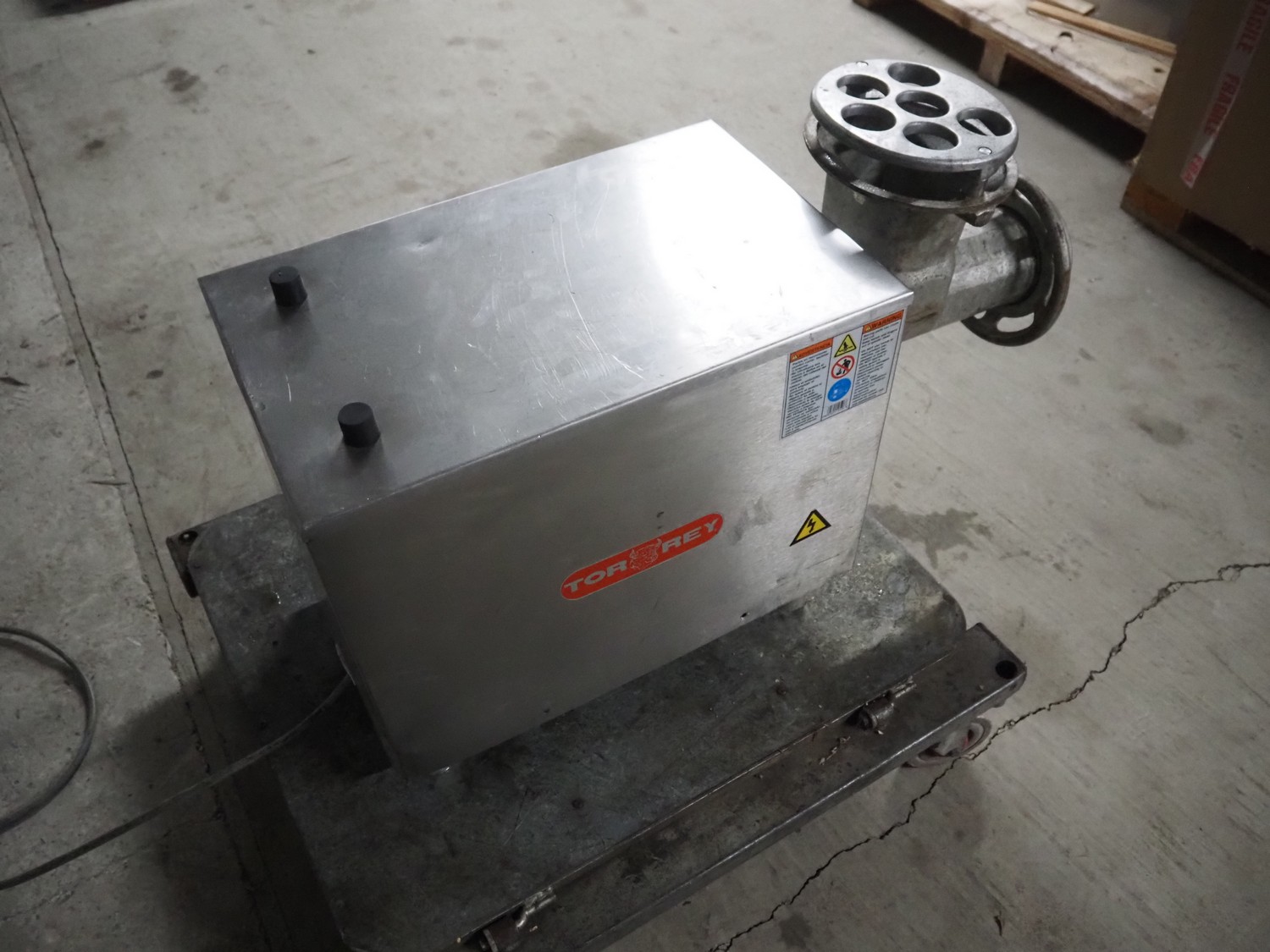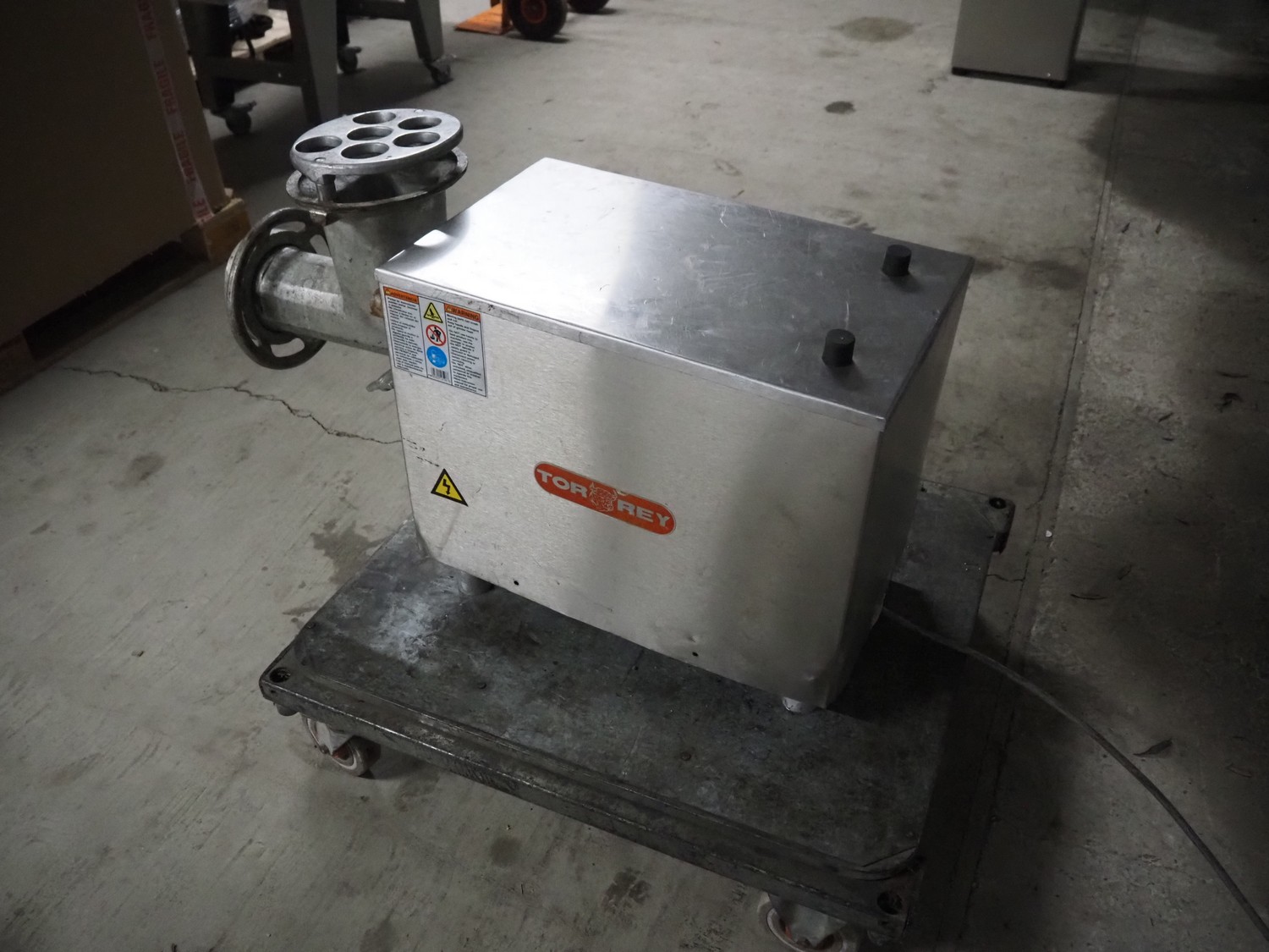 Torrey grinder, model: M32 3T CE, serial number: E 10-000009, 380 V, 3 Ph, 50 Hz, 4.6 A, 2.2 kW, plate diameter: 100 mm, total dimensions: 950 mm x 360 mm x 560 mm. Incomplete.