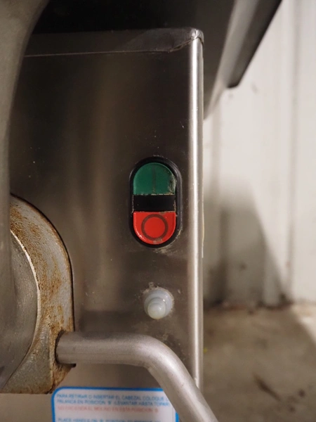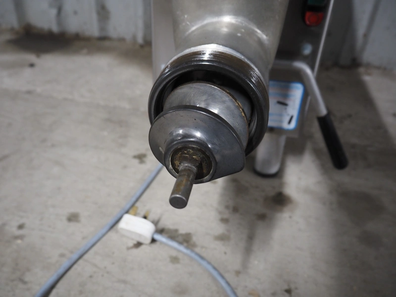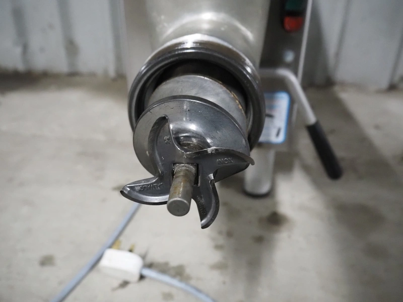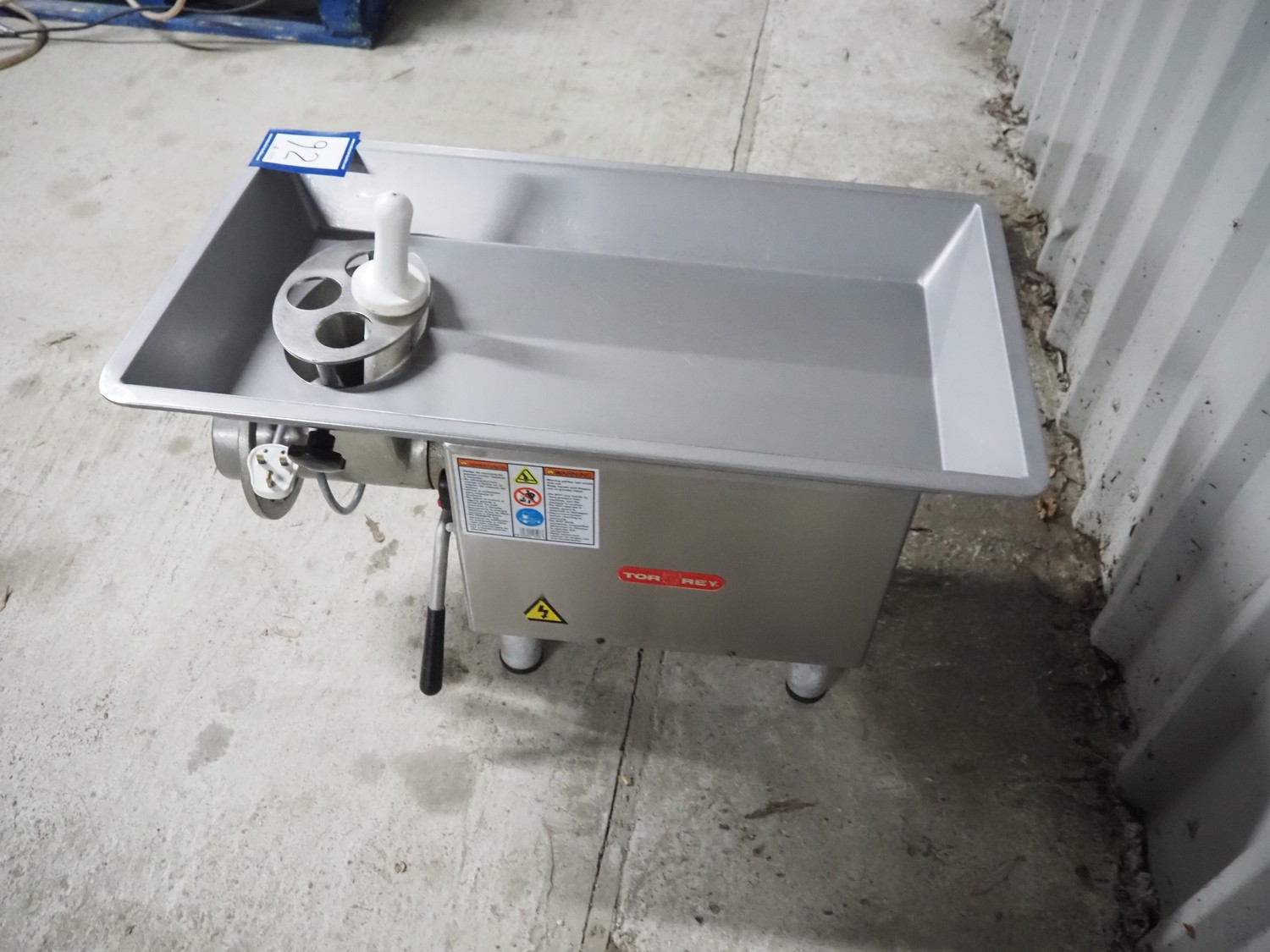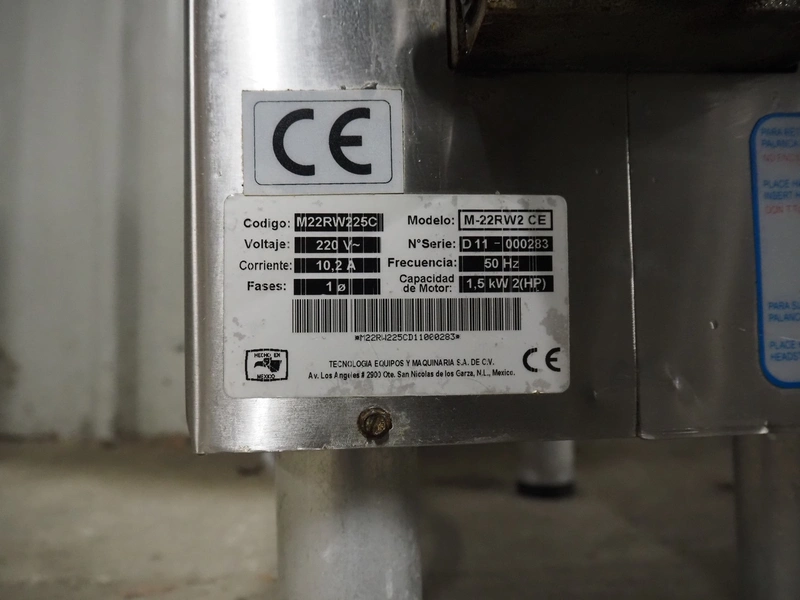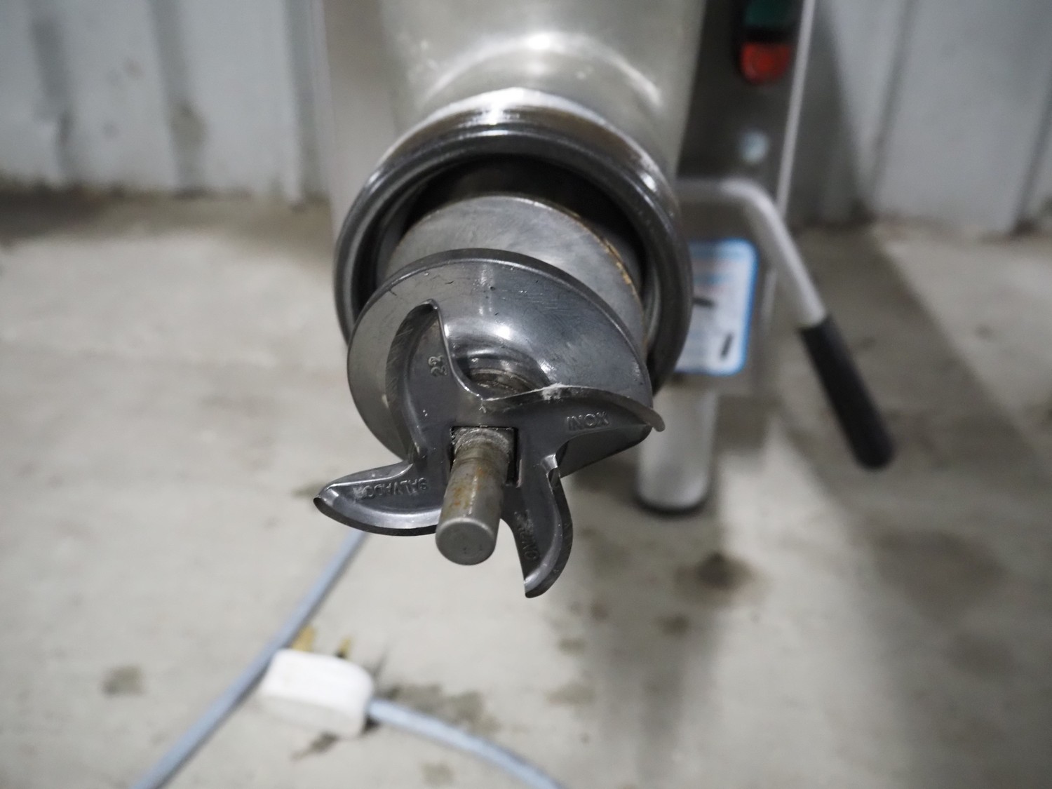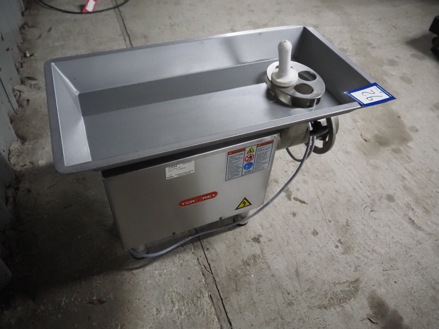 Torry grinder, model: M-22RW2 CE, serial number: D11-000283, 220 V, 1 Ph, 50 Hz, 10.2 A, 1.5 kW, plate diameter: 80 mm, total dimensions: 770 mm x 430 mm x 500 mm.