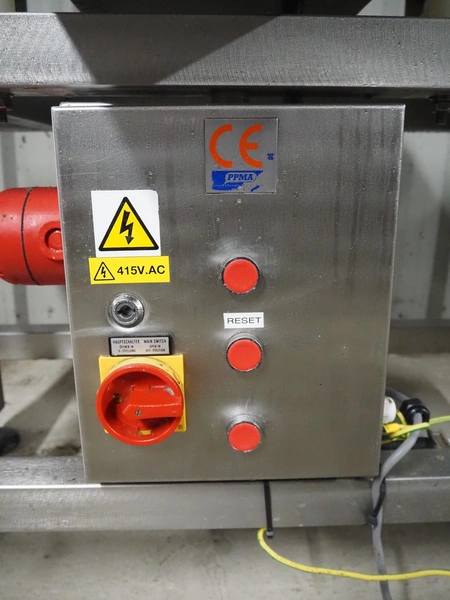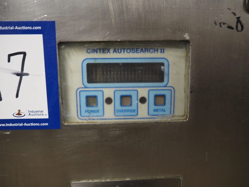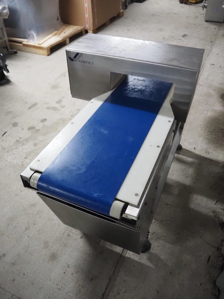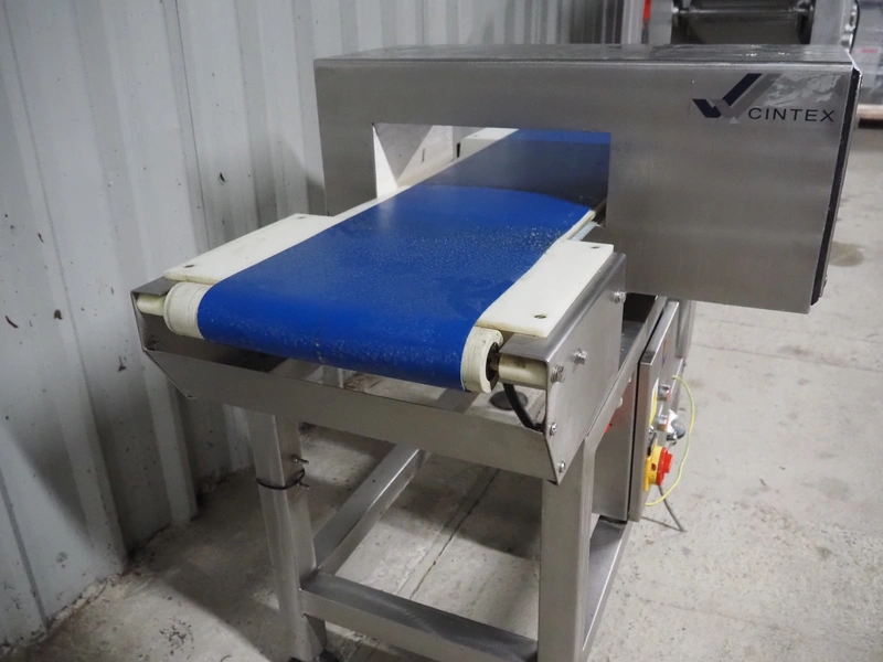 Cintex Ltd. metal detector, plastic belt, belt width: 295 mm, clearance: 360 mm x 105 mm, total dimensions: 1580 mm x 750 mm x 970 mm.