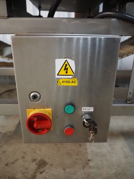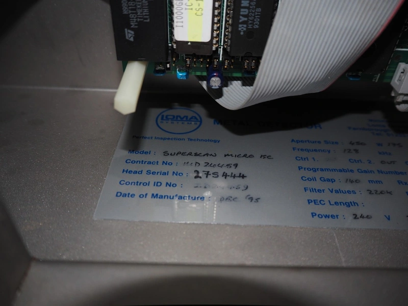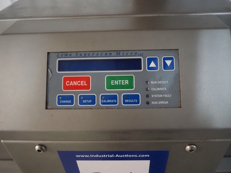 Loma Systems metal detector, model: Superscan micro ISC, serial number: 275444, 240 V, 50 Hz, 2 A, plastic mesh belt, belt width: 300 mm, clearance: 450 mm x 145 mm, total dimensions: 1500 mm x 930 mm x 1085 mm.