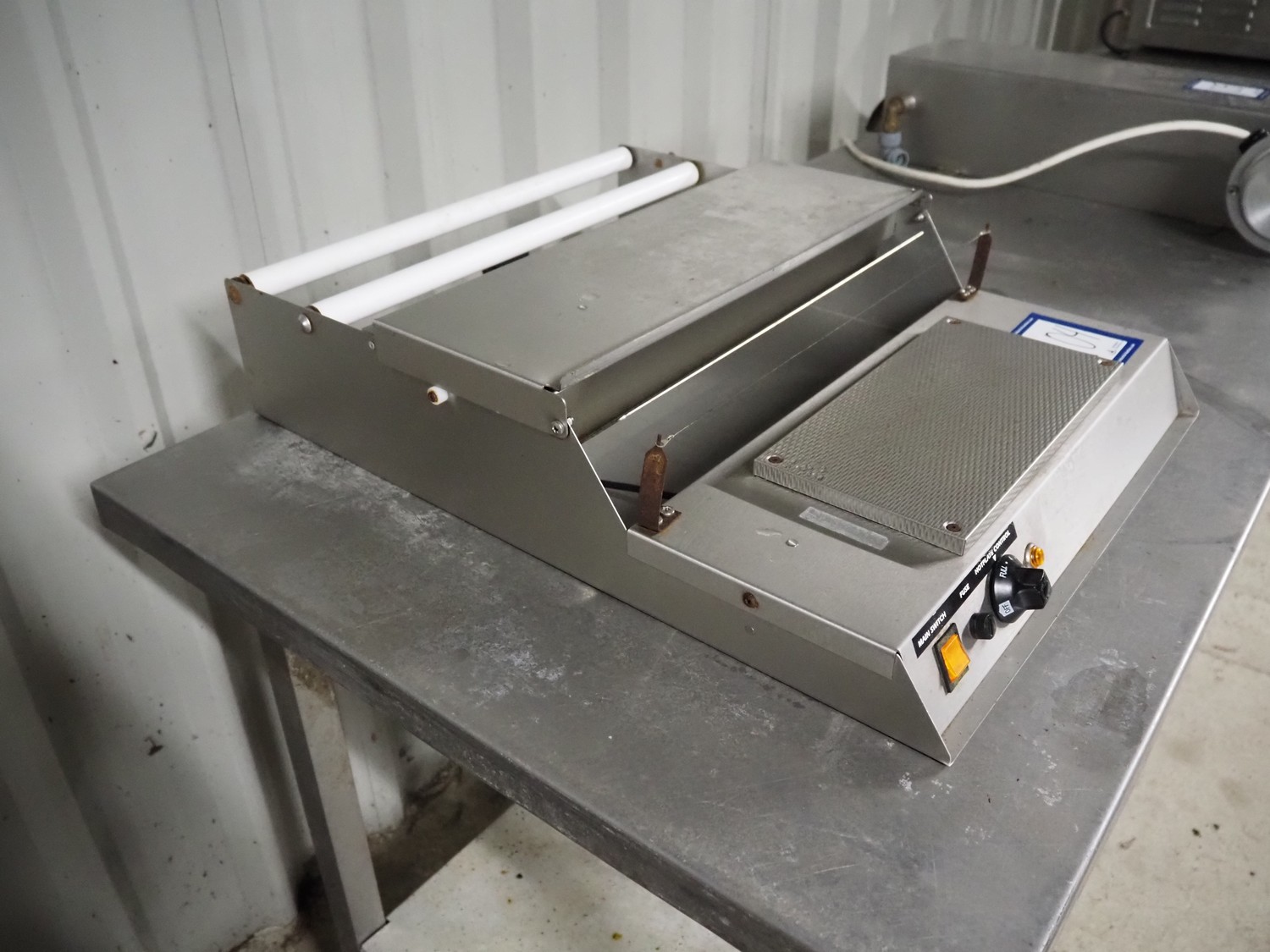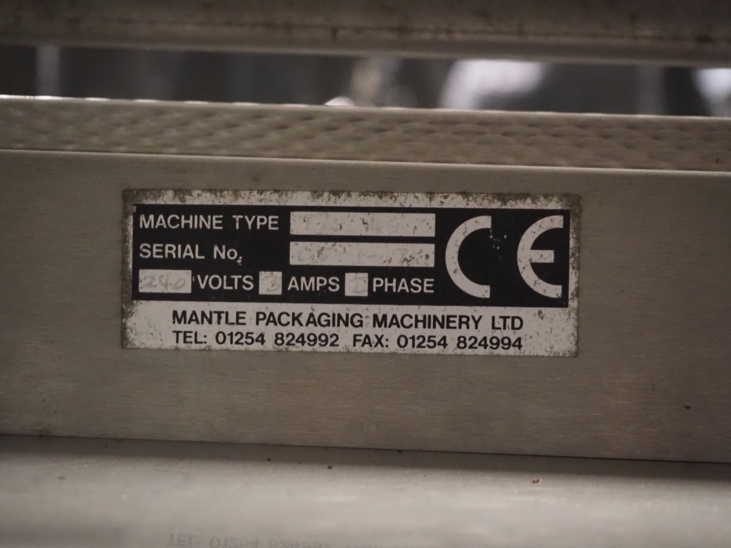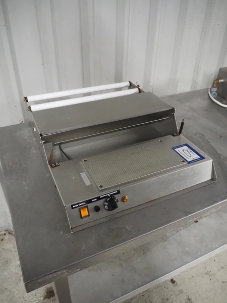 Mantle Packaging Machinery LTD sealing machine, 240 V, 1 Ph, 3 A, seal length: 455 mm, total dimensions: 700 mm x 520 mm x 120 mm.