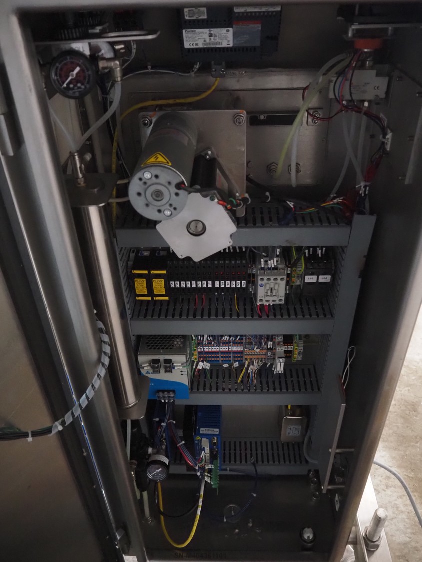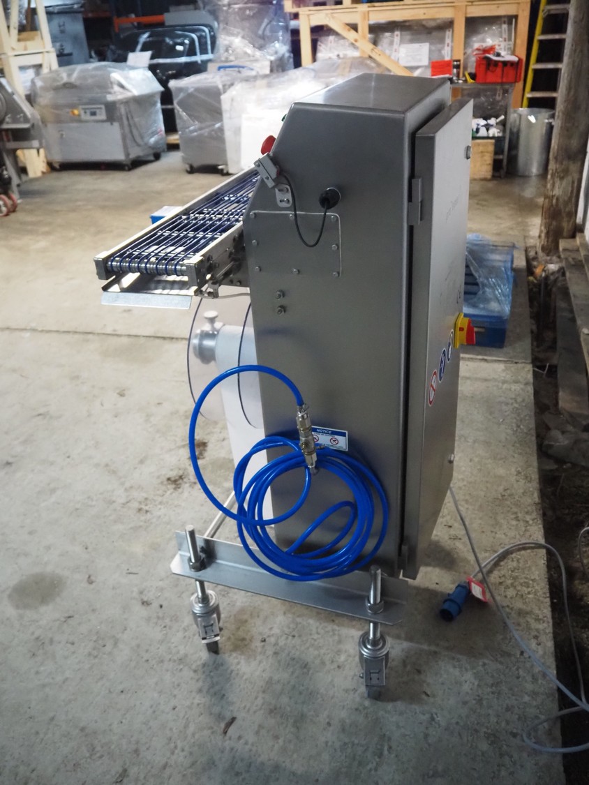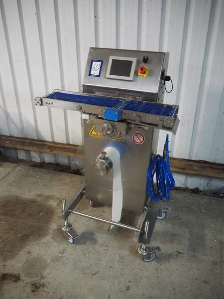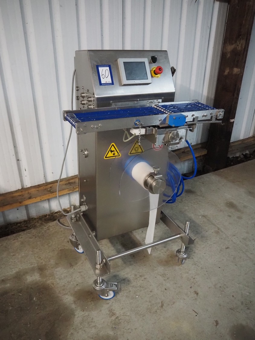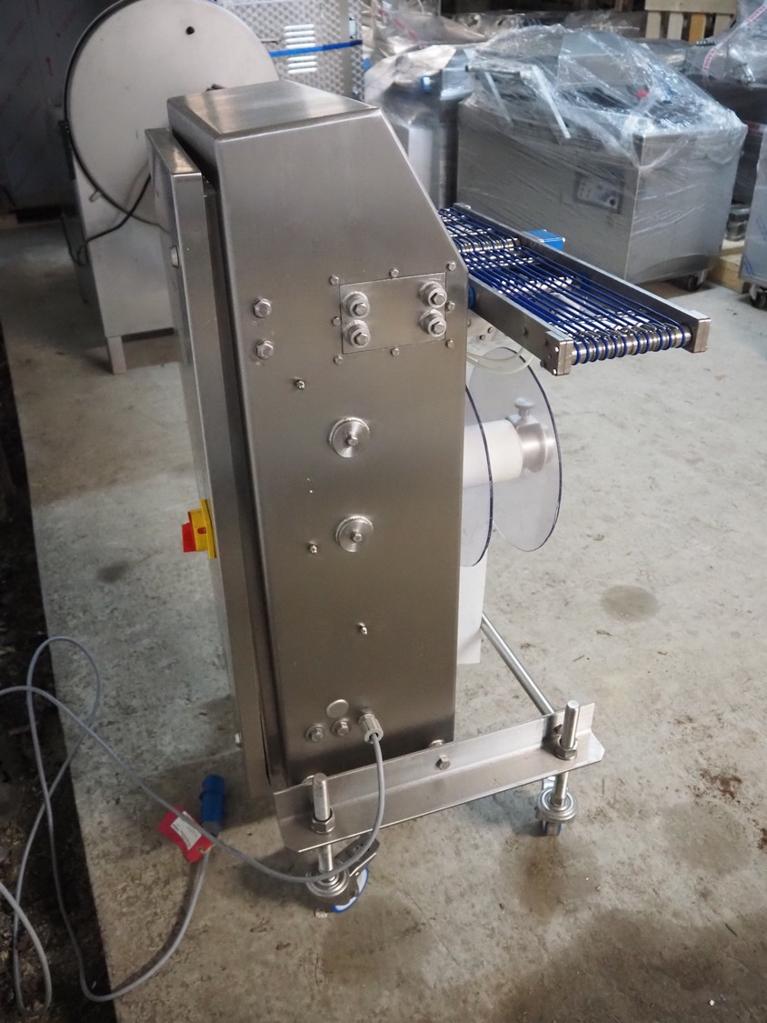 Pacproinc mobile interleaver, model: PPI-200-IP-LX-P4-06, serial number: M404361101, 240 V, 1 Ph, 50-60 Hz, 7.5 A, 2.0 kW, plastic belt, belt width: 170 mm, leaf width: 120 mm, total dimensions: 800 mm x 700 mm x 1300 mm.
