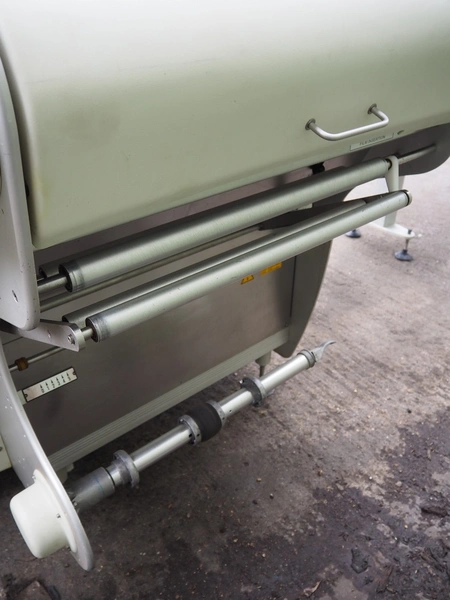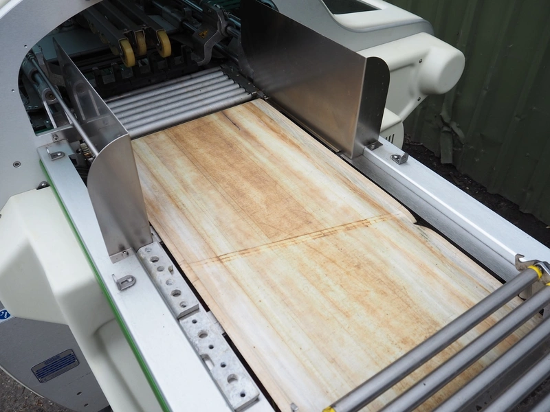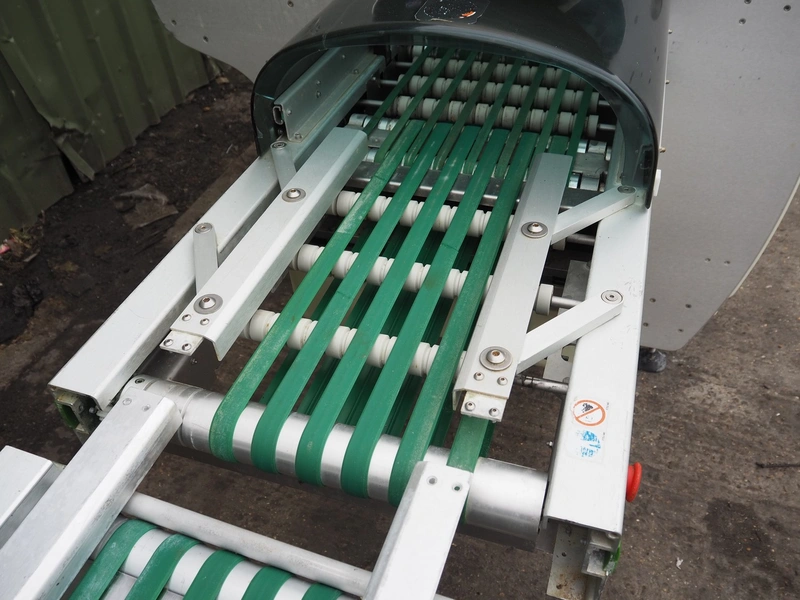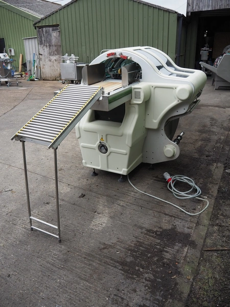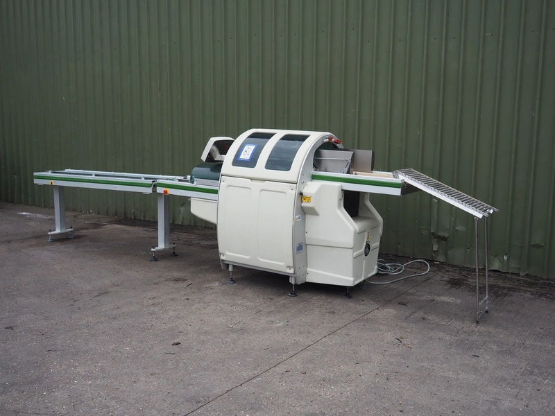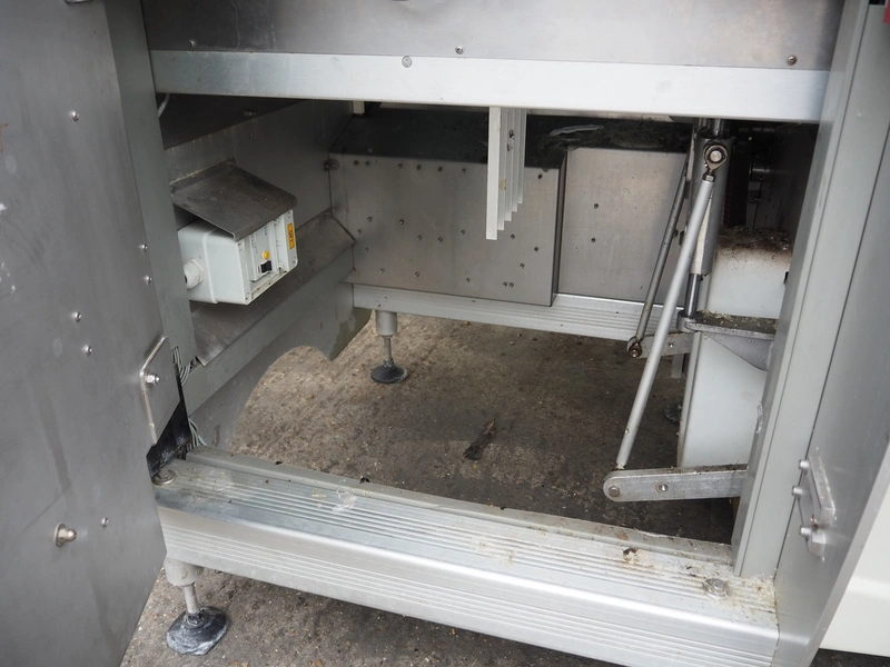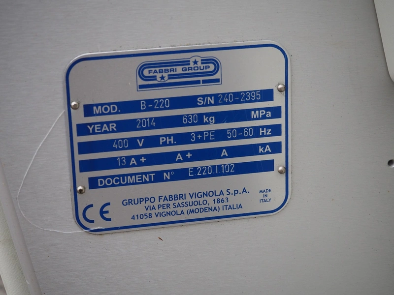 Fabbri Group packaging machine, model: B-220, serial number: 240-2395, year of construction: 2014, 400 V, 3 Ph, 50-60 Hz, 13 A, clearance: 400 mm x 250 mm, total dimensions: 2600 mm x 1500 mm x 1500 mm. With infeed belt, belt width: 400 mm, total dimensions infeed belt: 2050 mm x 550 mm x 900 mm.