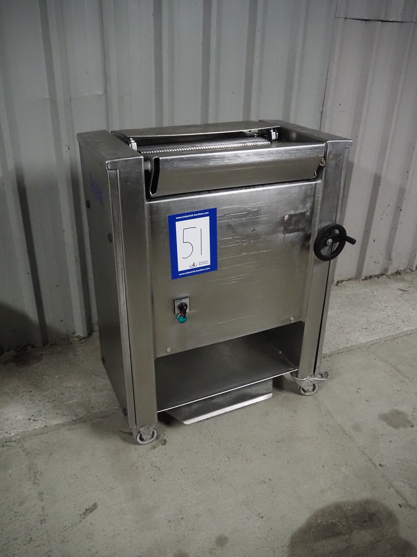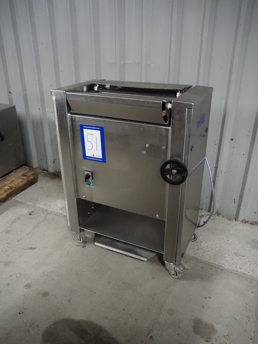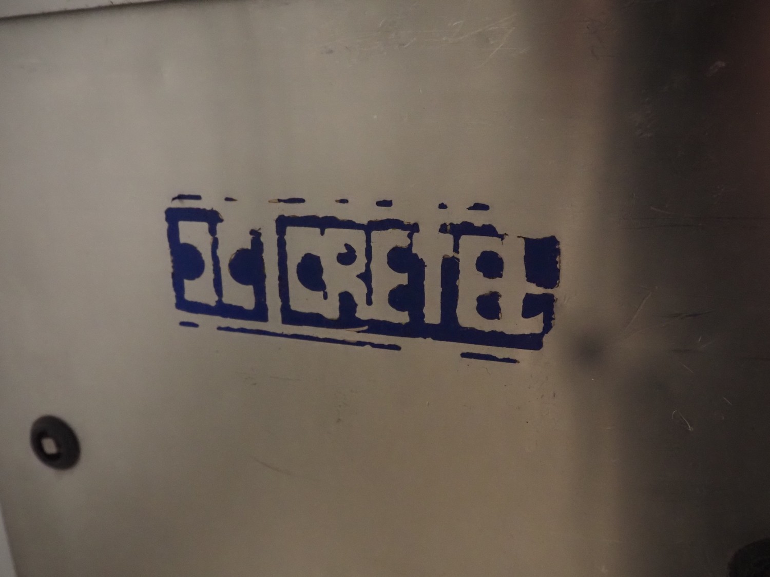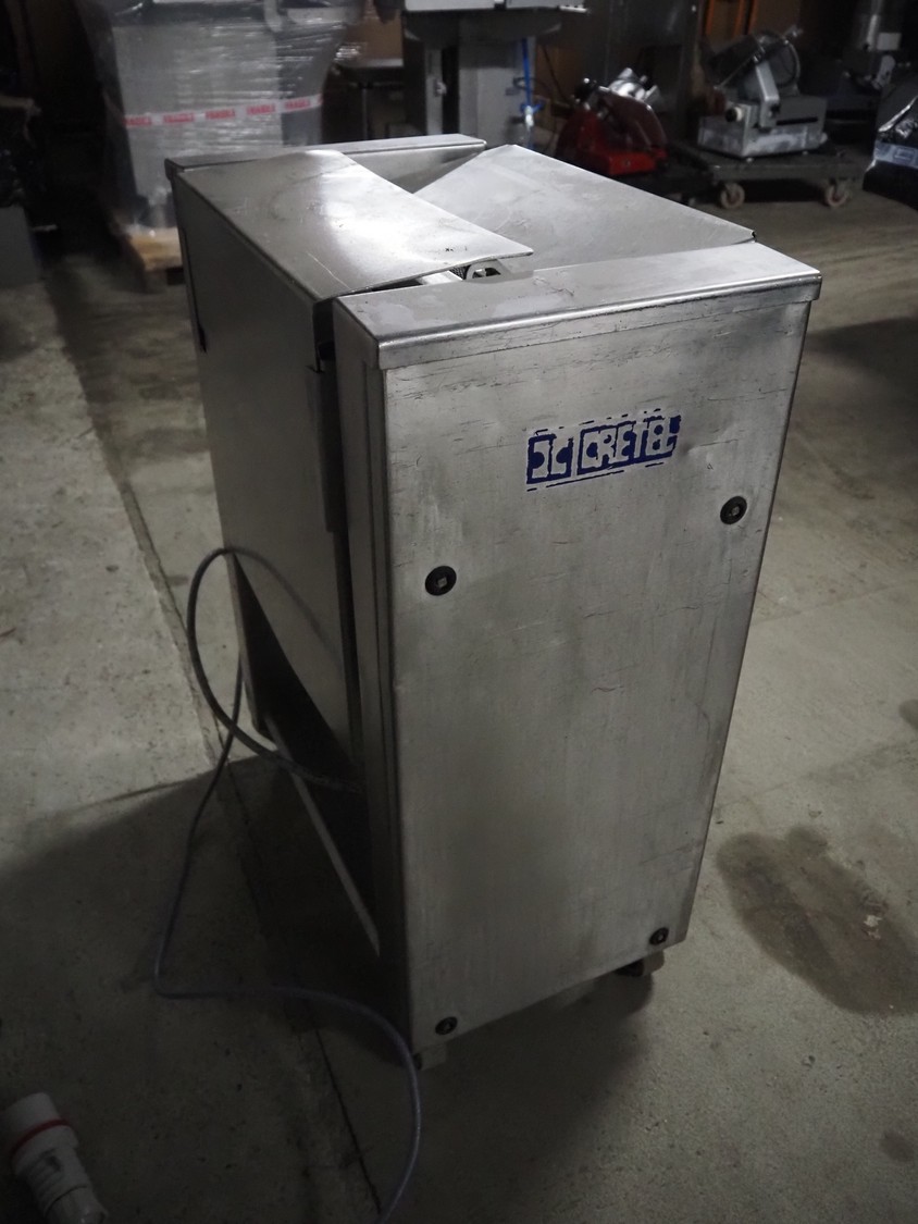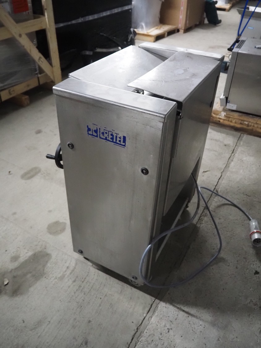 Cretel mobile skinning machine, working width: 440 mm, total dimensions: 750 mm x 450 mm x 980 mm.