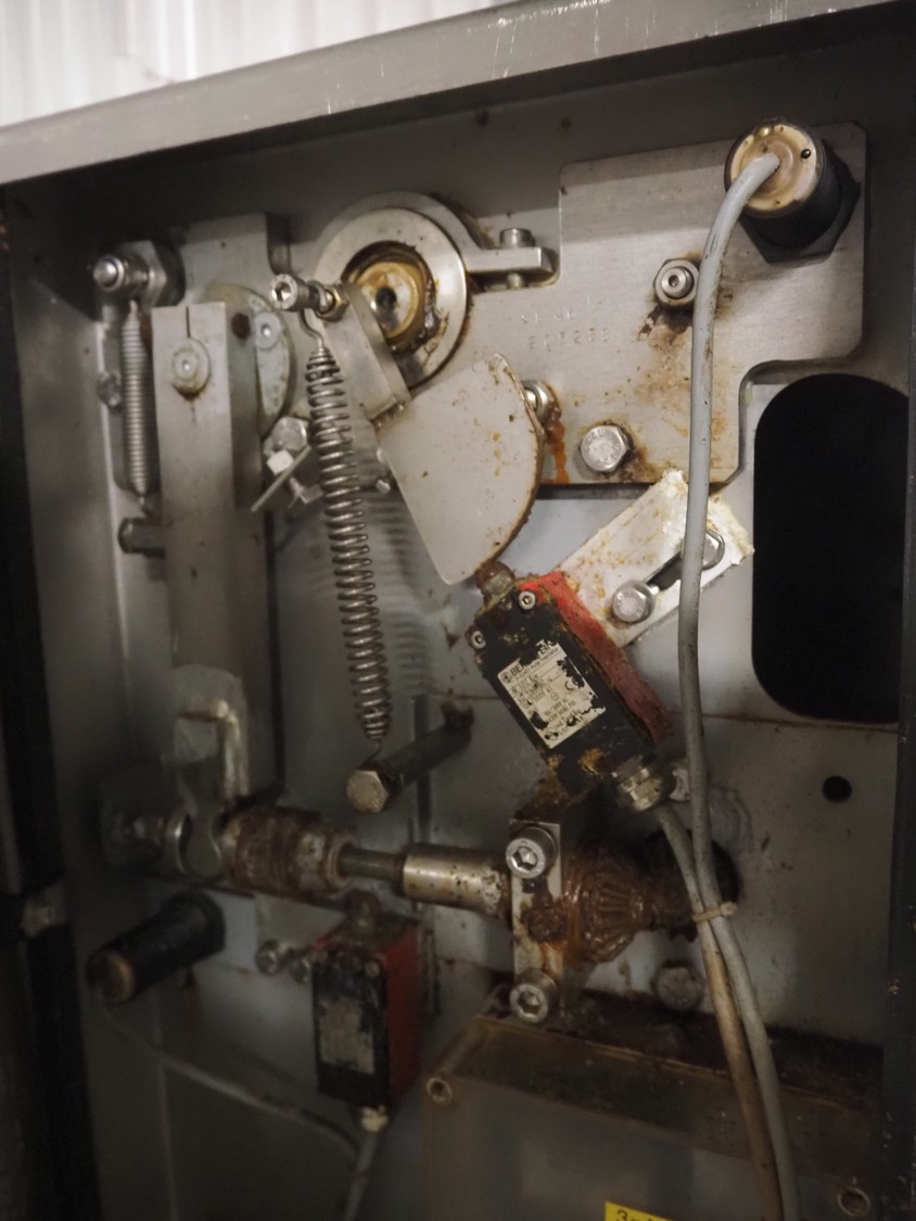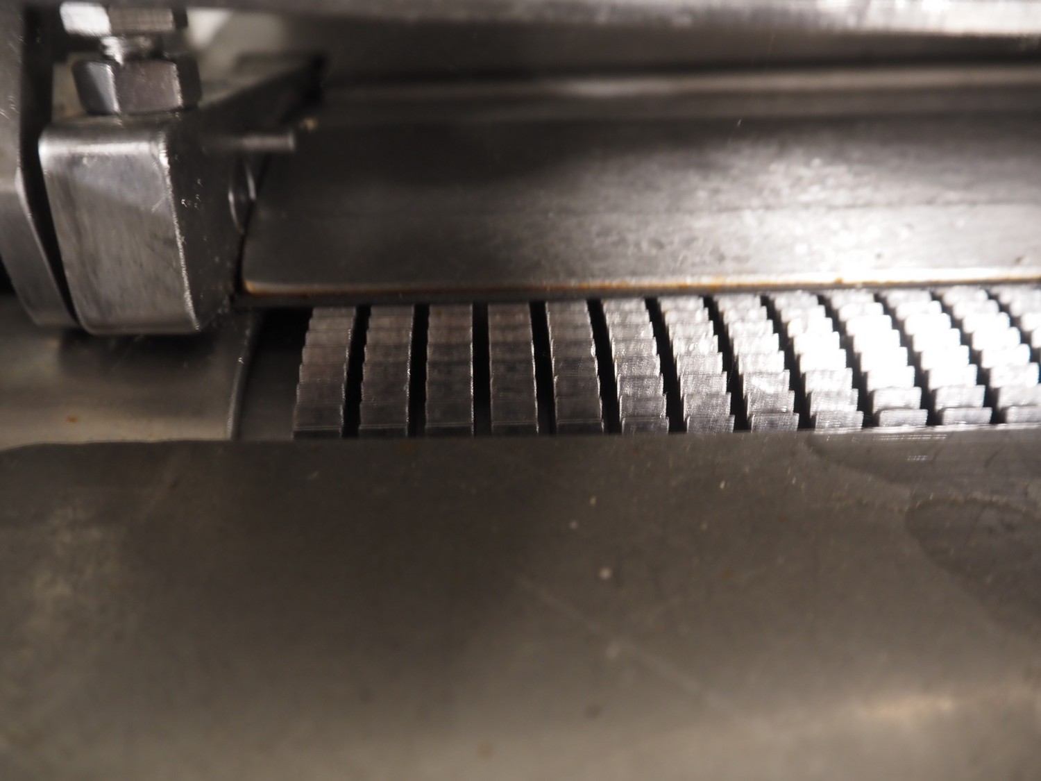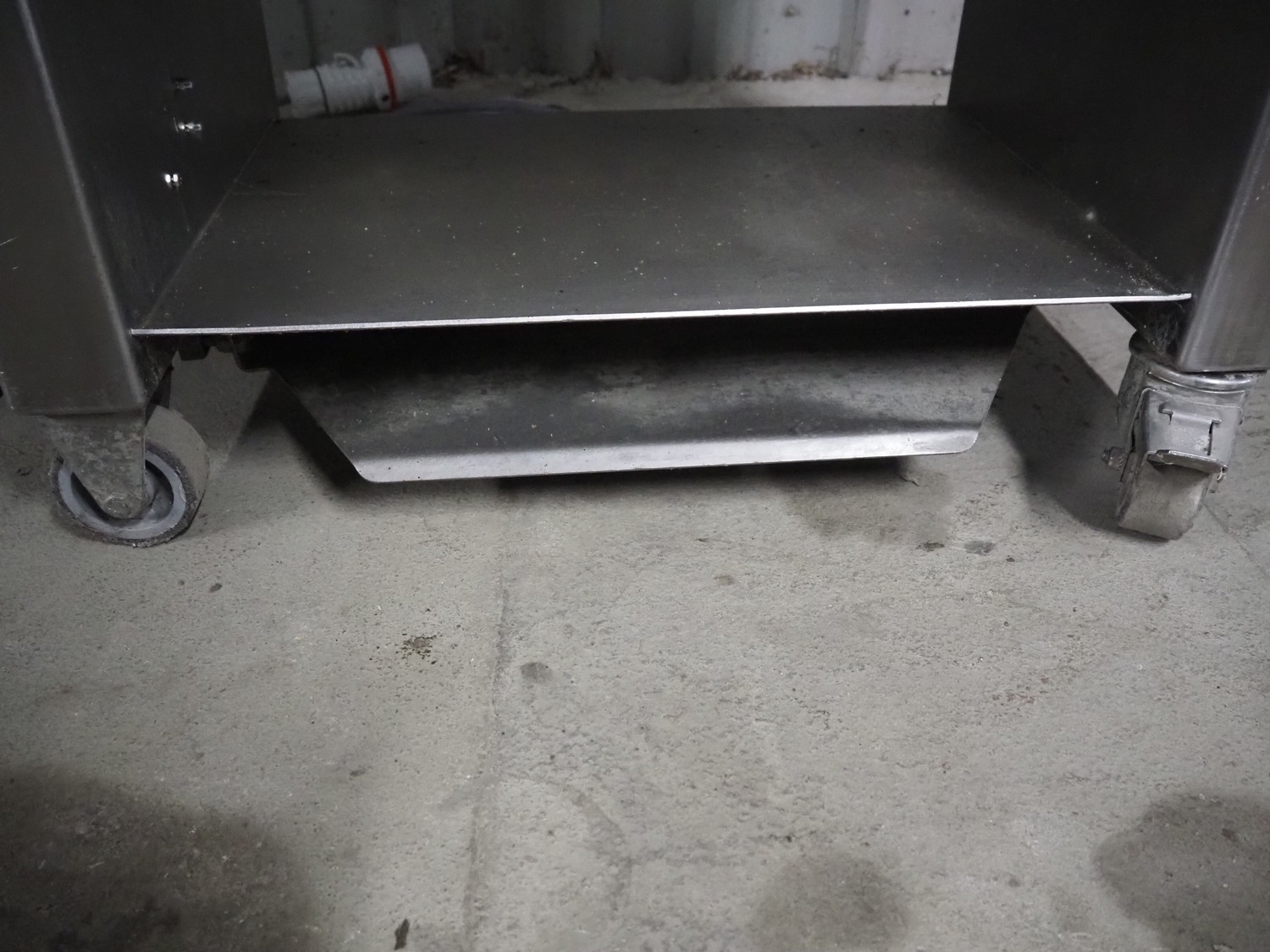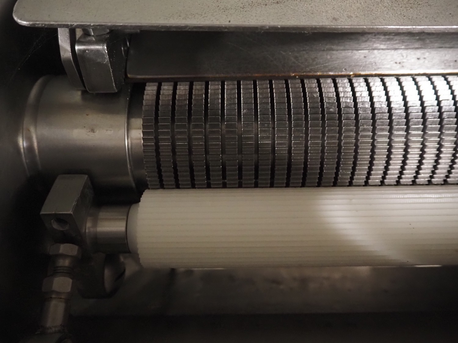 Cretel mobile skinning machine, working width: 440 mm, total dimensions: 750 mm x 450 mm x 980 mm.