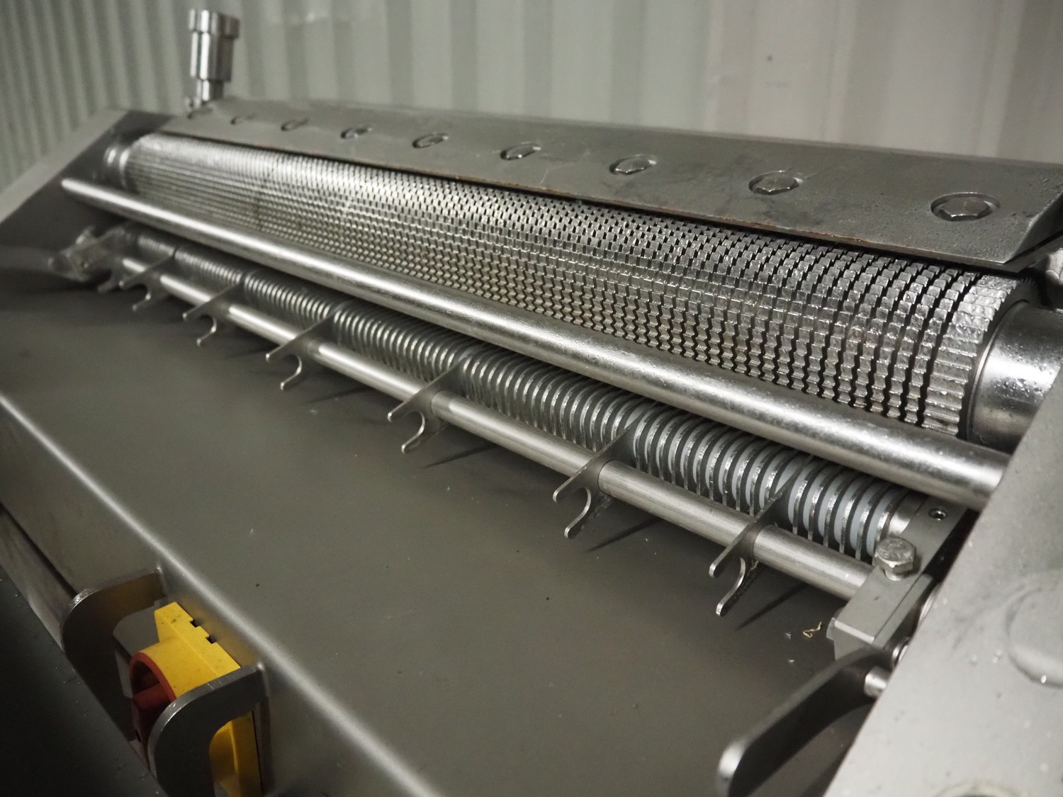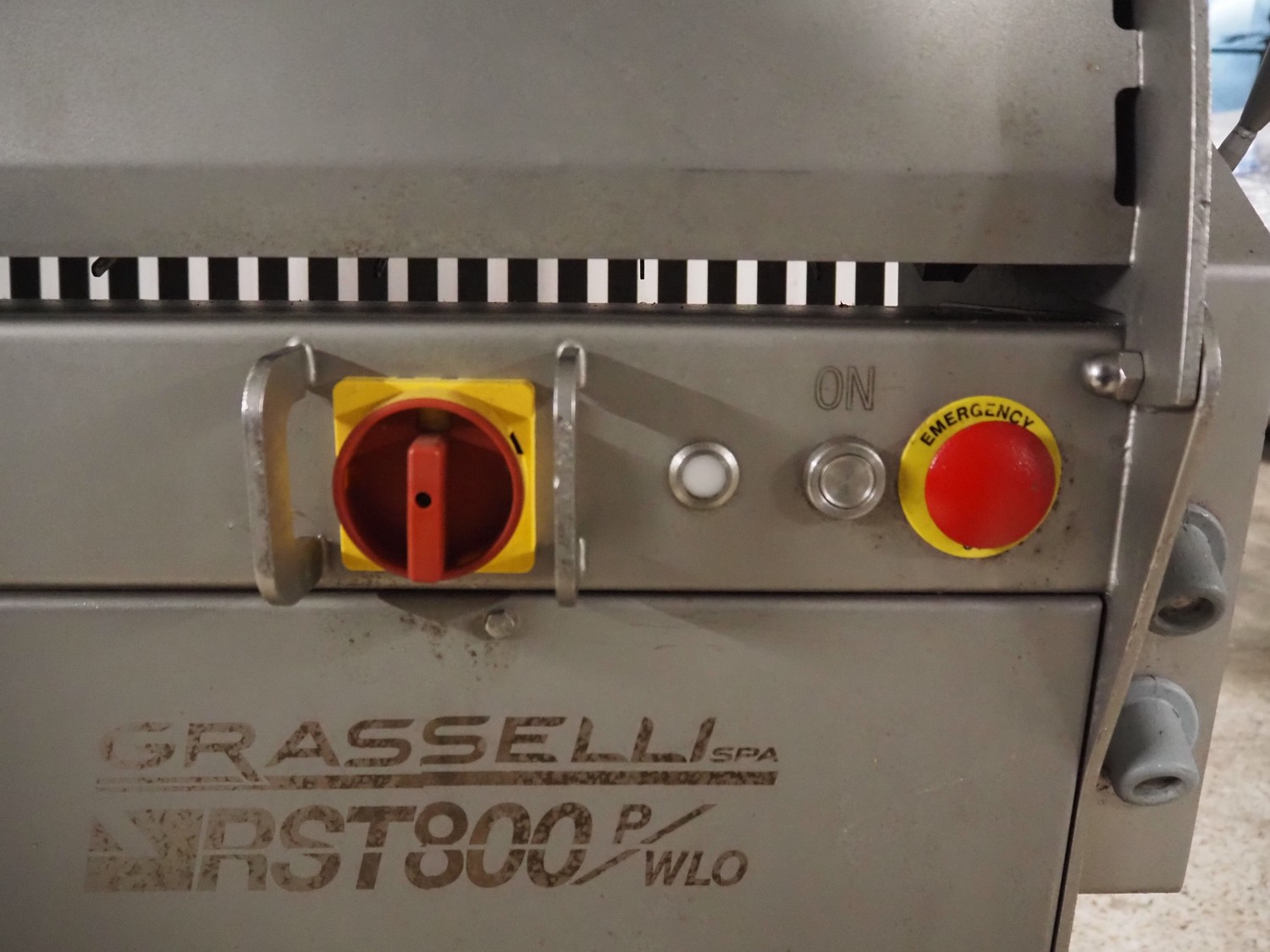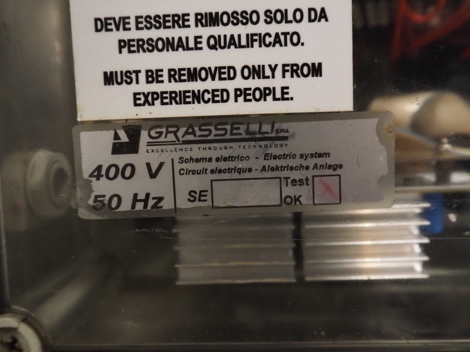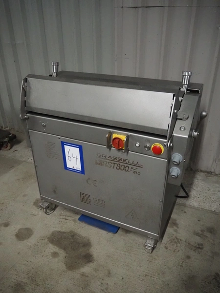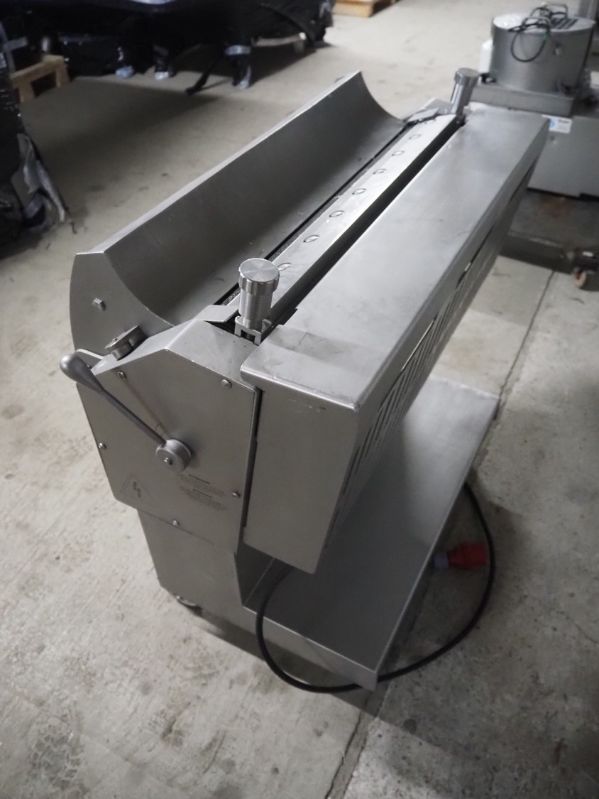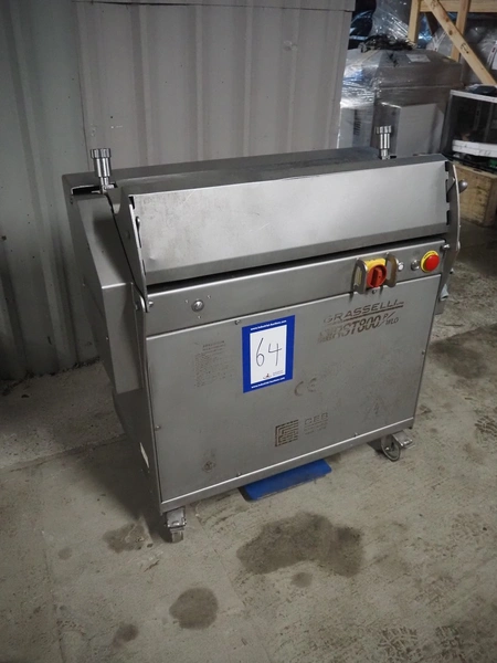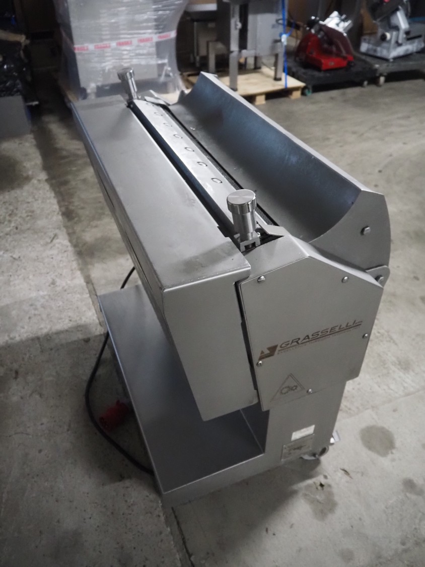 Grasselli mobile skinning machine, model: RST800-Piclo, serial number: W09R02IP135, year of construction: 2017, 400 V, 3 Ph, 50 Hz, 2.5 A, 1.1 kW, foot control, working width: 800 mm, total dimensions: 1050 mm x 550 mm x 1000 mm.
