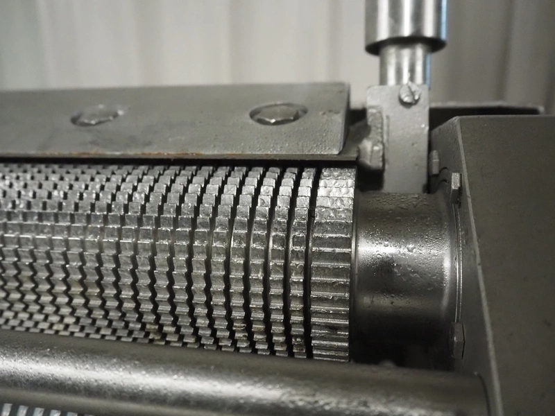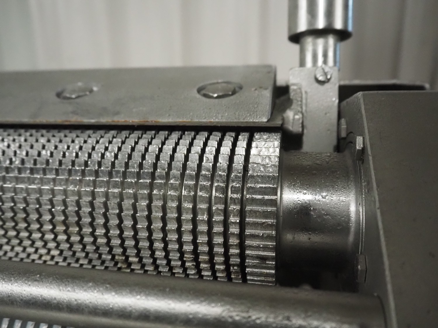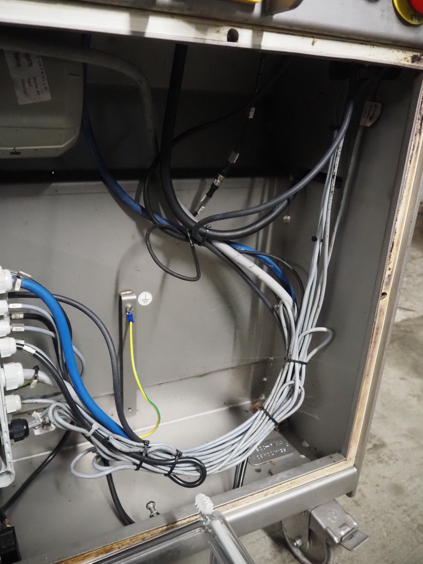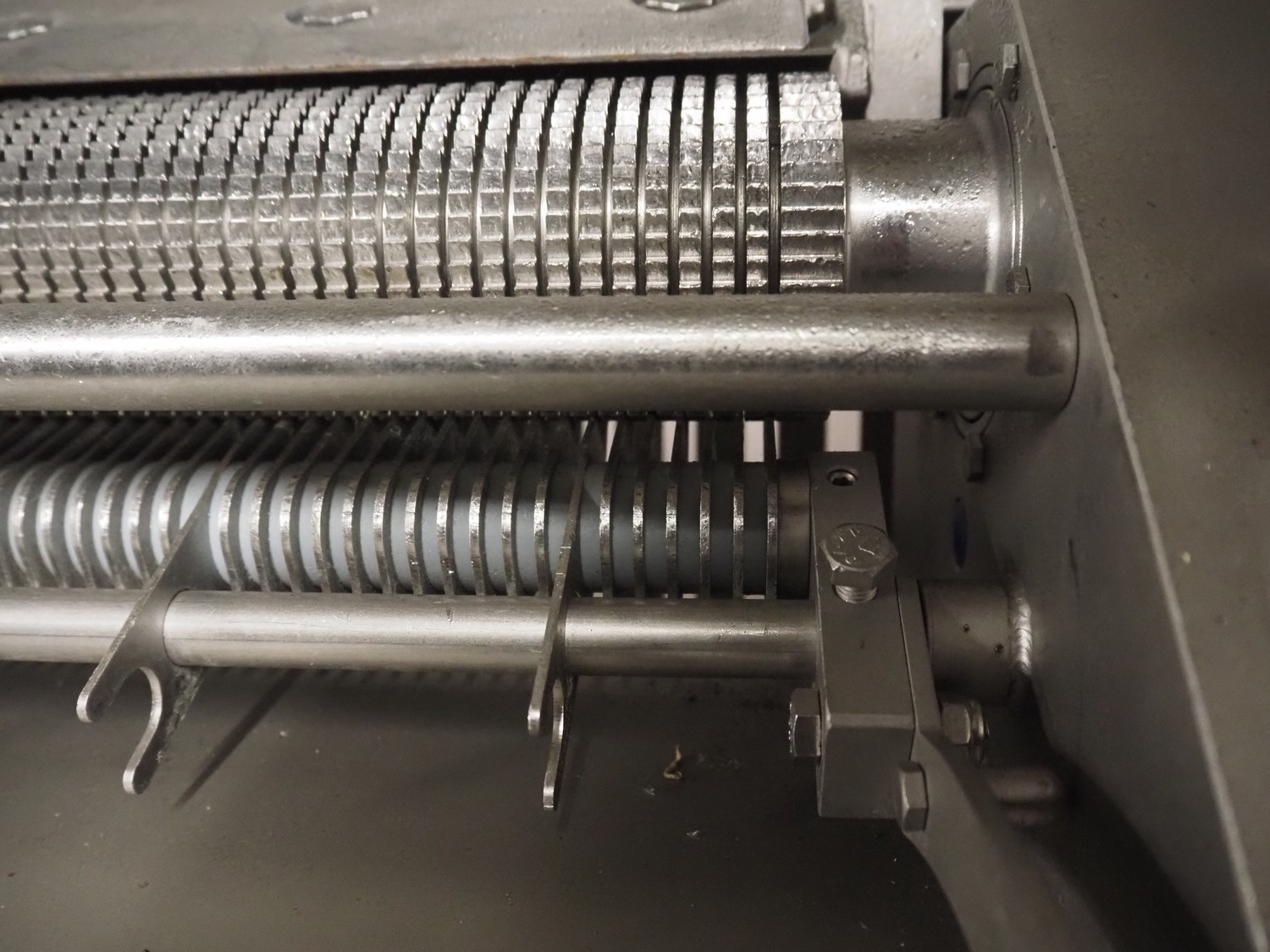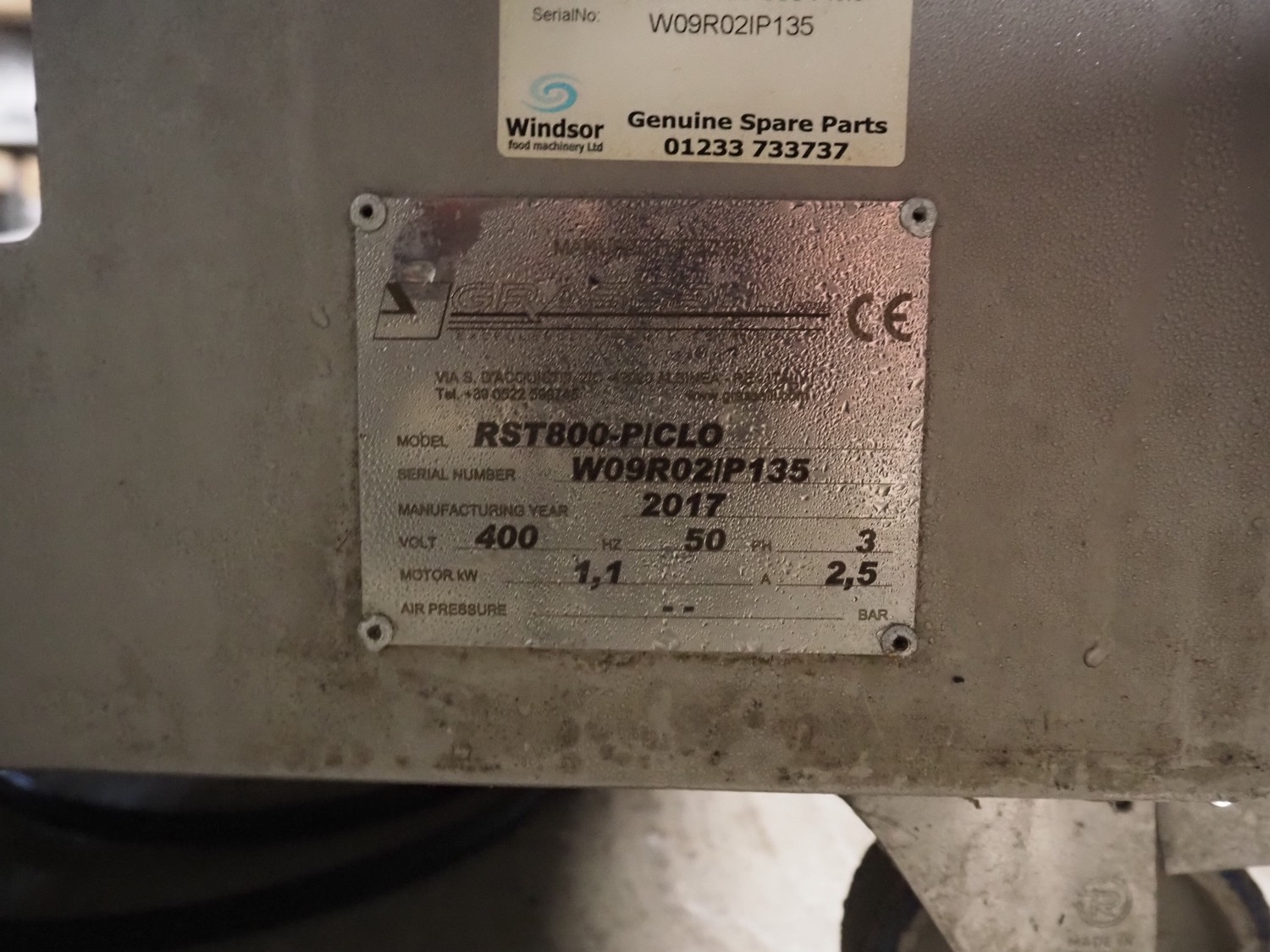 Grasselli mobile skinning machine, model: RST800-Piclo, serial number: W09R02IP135, year of construction: 2017, 400 V, 3 Ph, 50 Hz, 2.5 A, 1.1 kW, foot control, working width: 800 mm, total dimensions: 1050 mm x 550 mm x 1000 mm.