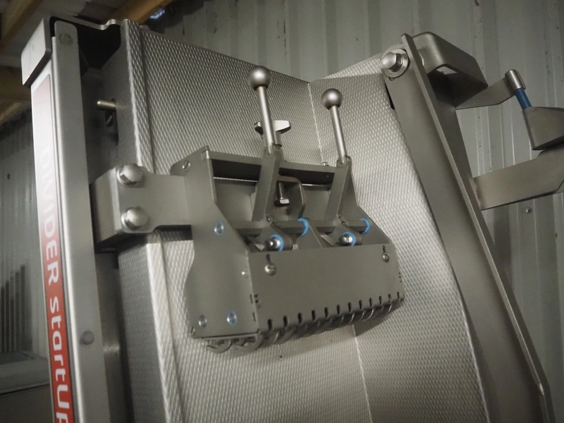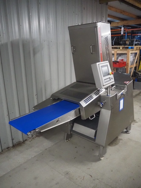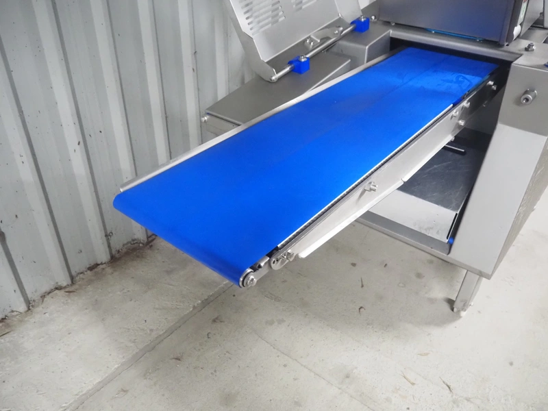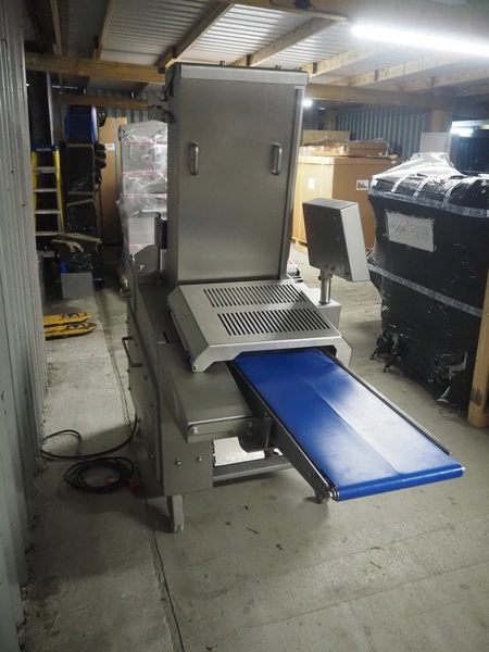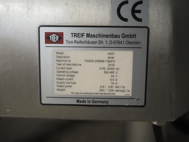 Treif Maschinenbau GmbH mobile slicer, type: K207, serial number: 750000.238888.139413, year of construction: 2019, 380-480 V, 3 Ph, 50/60 Hz, 9.5/16 A, 2.8/3.81 kW, weight: 560 kg, plastic belt, belt width: 355 mm, clearance: 260 mm x 165 mm, total dimensions: 2400 mm x 1030 mm x 2000 mm.