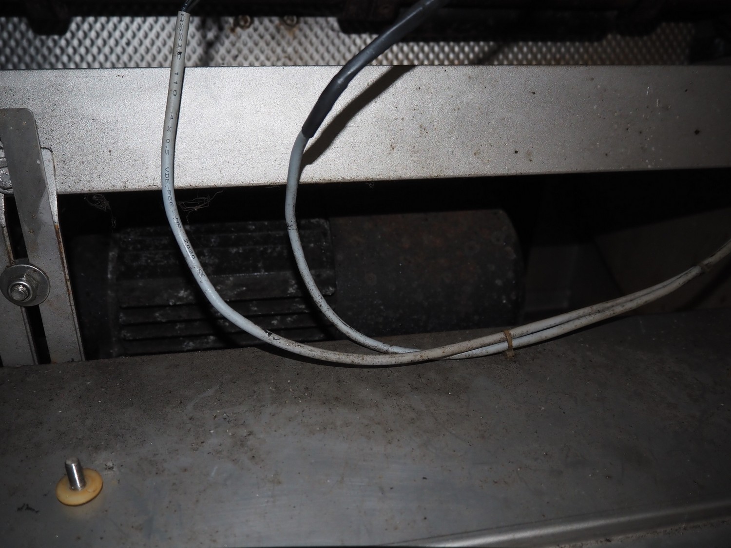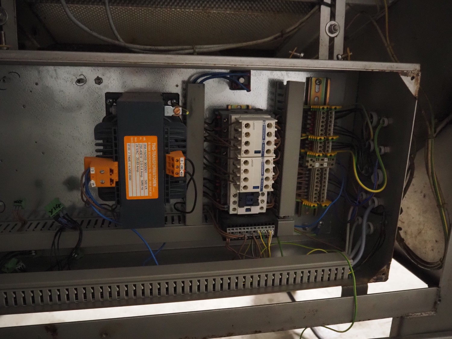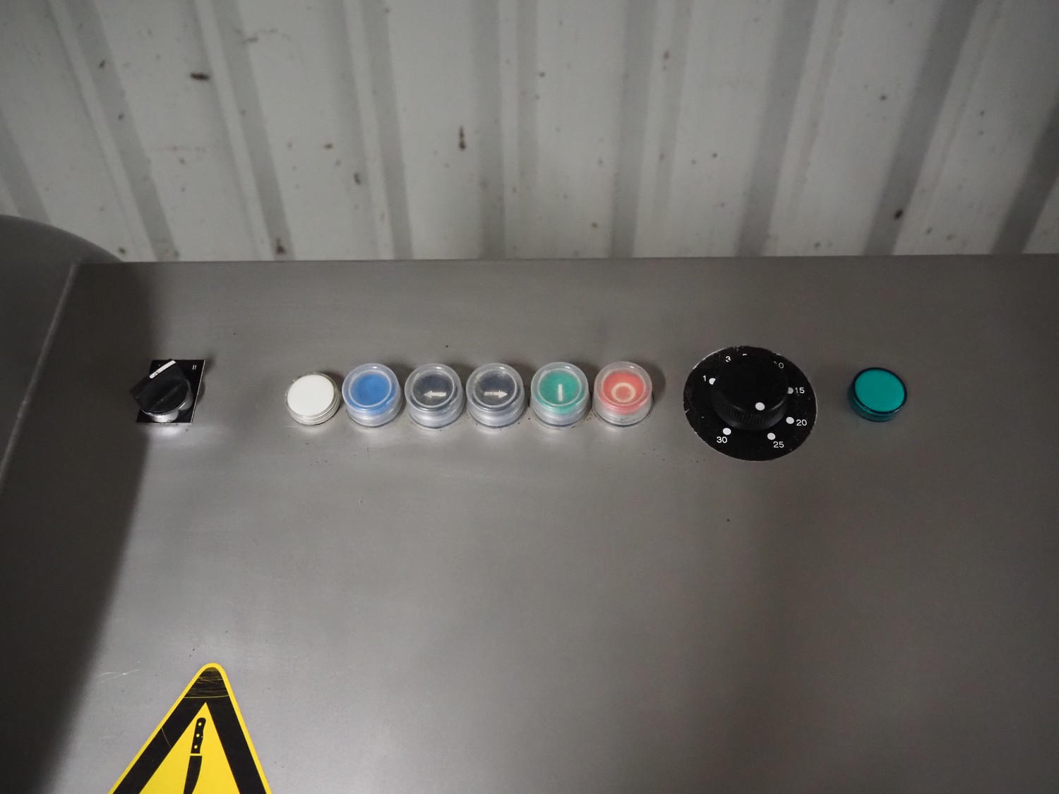 MHS Schneidetechnik slicer, type: PCE70D, serial number: 090401, 400 V, 7 A, 2.7 kW, clearance: 225 mm x 210 mm, total dimensions: 1850 mm x 860 mm x 1270 mm.