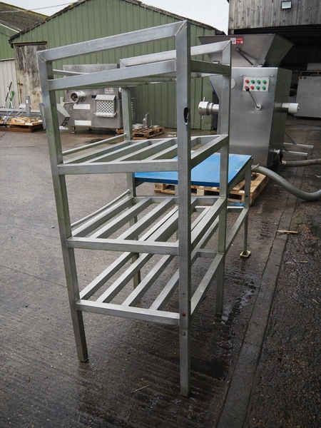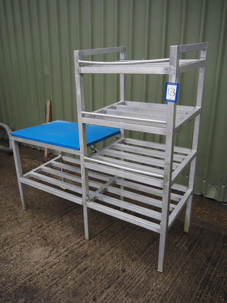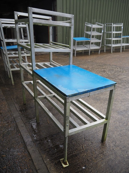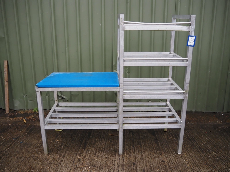 Aluminium packaging table with plastic top, dimensions worktop: 800 mm x 600 mm, 4 floors, dimensions each floor: (4x) 600 mm x 600 mm, total dimensions: 1500 mm x 600 mm x 1500 mm.