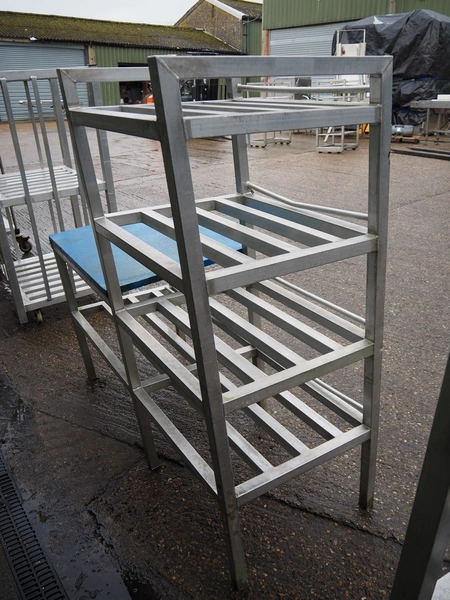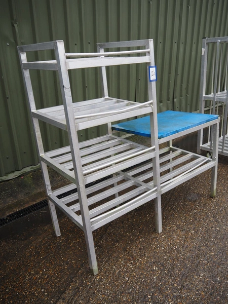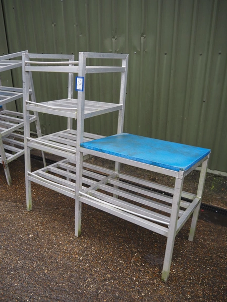 Aluminium packaging table with plastic top, dimensions worktop: 800 mm x 600 mm, 4 floors, dimensions each floor: (4x) 600 mm x 600 mm, total dimensions: 1500 mm x 600 mm x 1500 mm.
