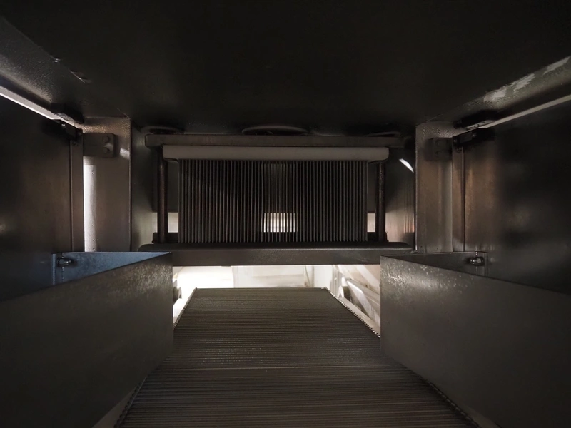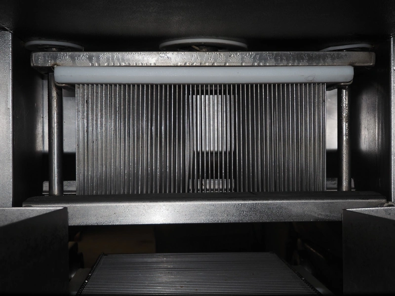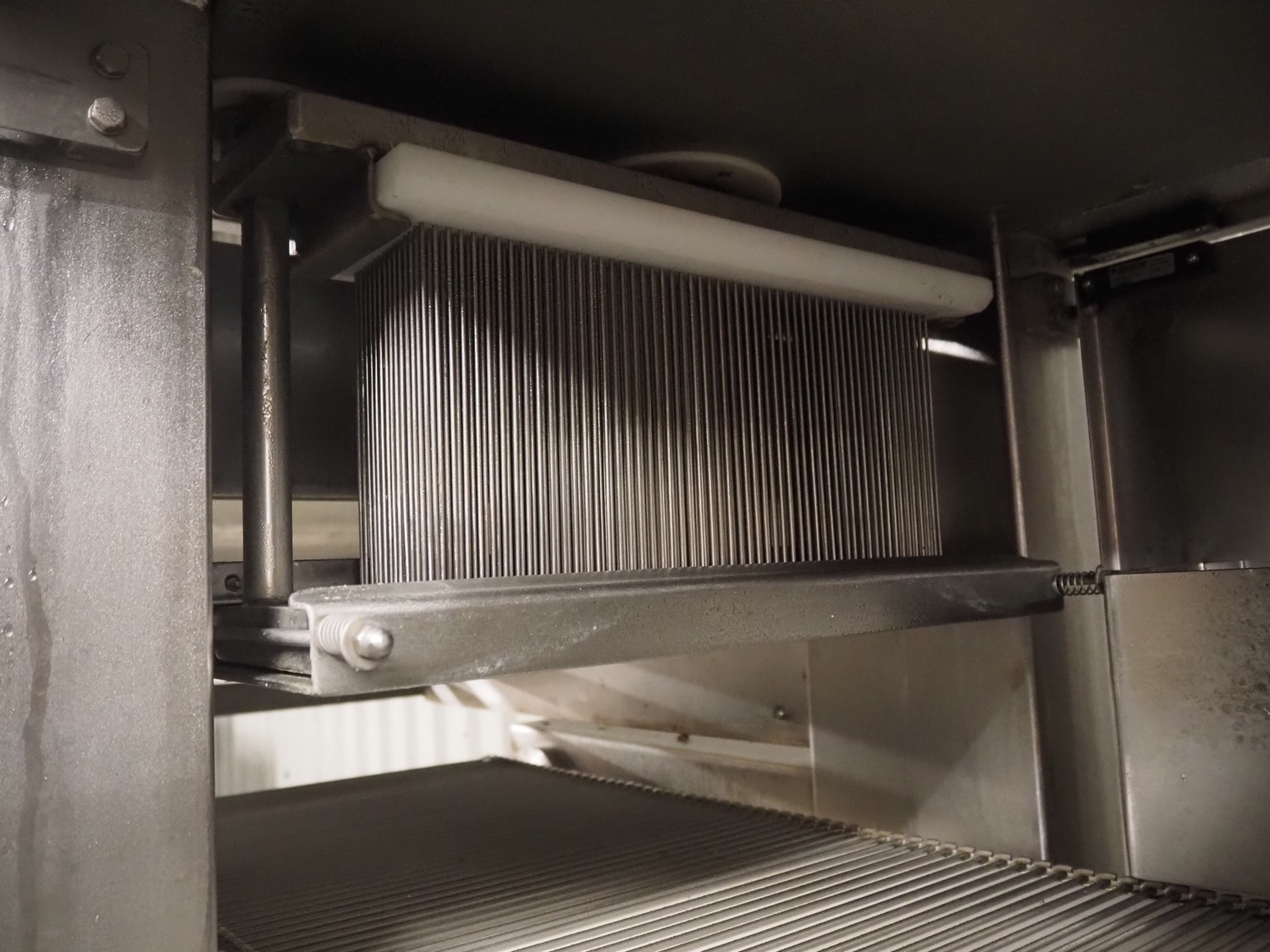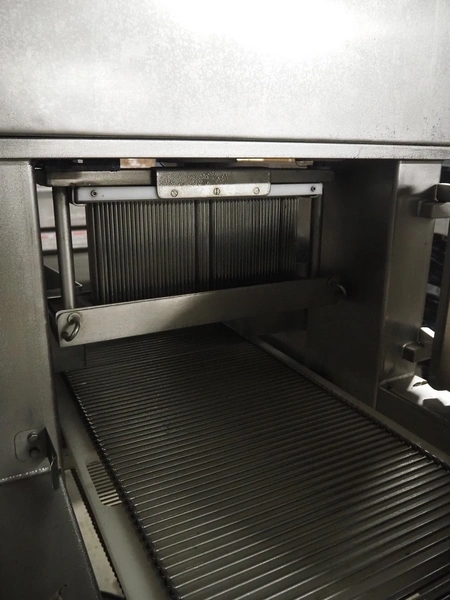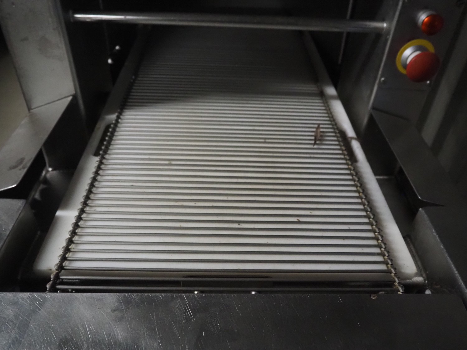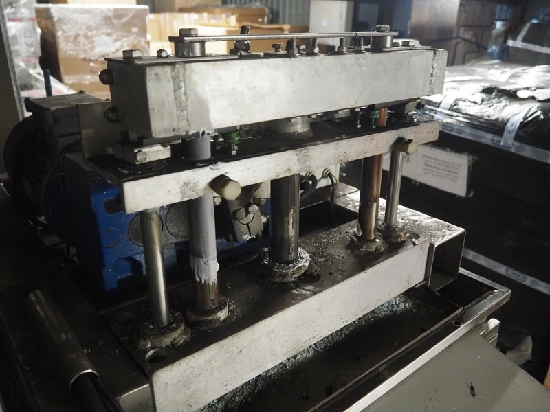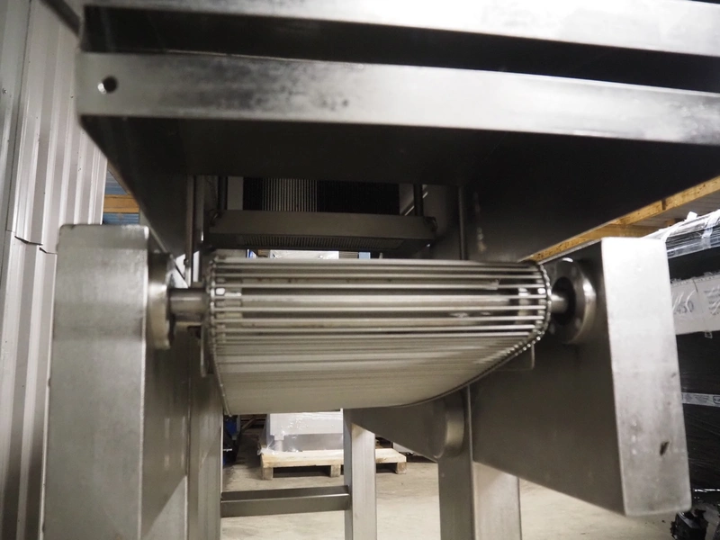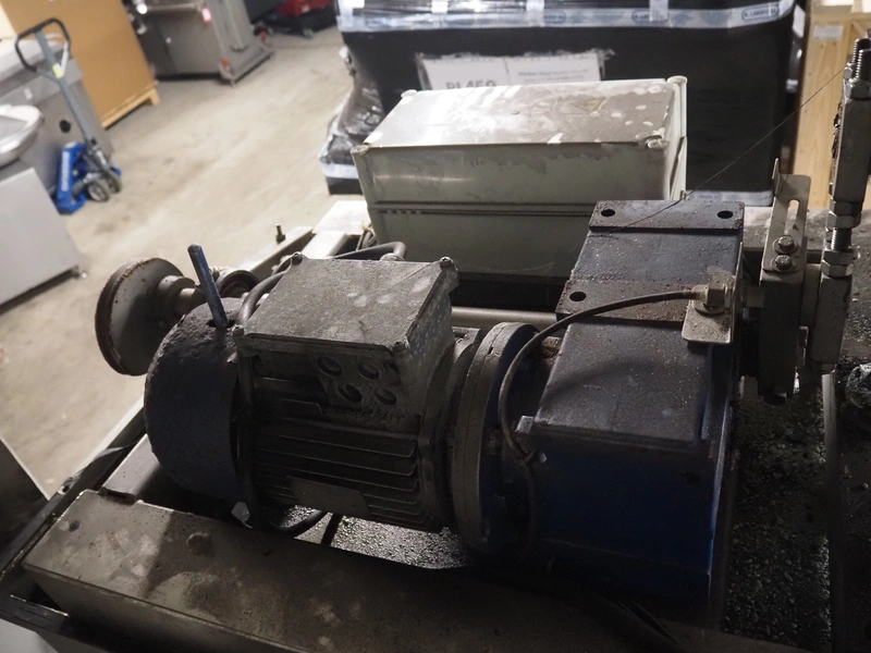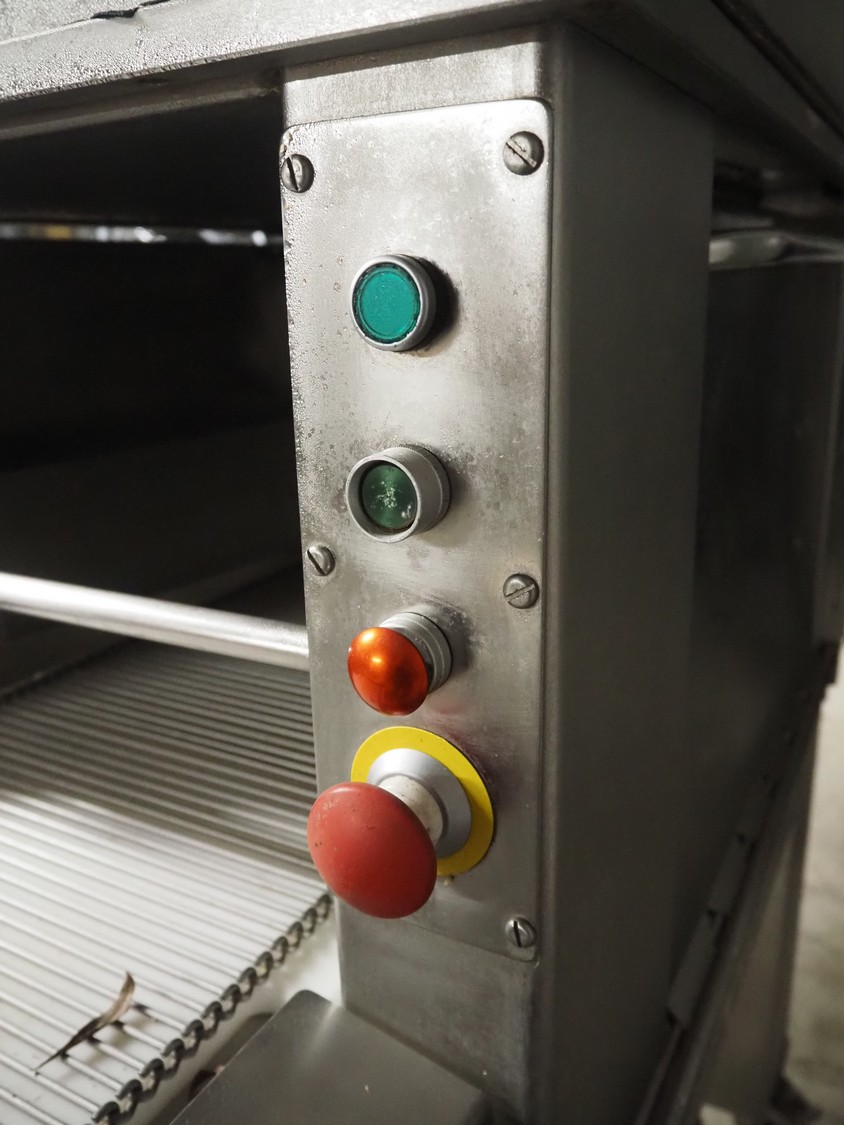 Tender Star mobile tenderizer, model: T.S.B. serial number: 201326, year of construction: 2001, 220/380 V, 3 Ph, 50 Hz, 12 A, s/s belt, belt width: 400 mm, clearance: 340 mm x 150 mm, total dimensions: 2200 mm x 850 mm x 1950 mm.