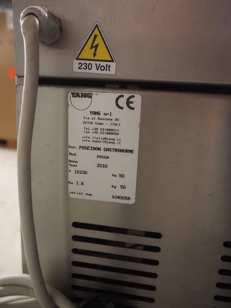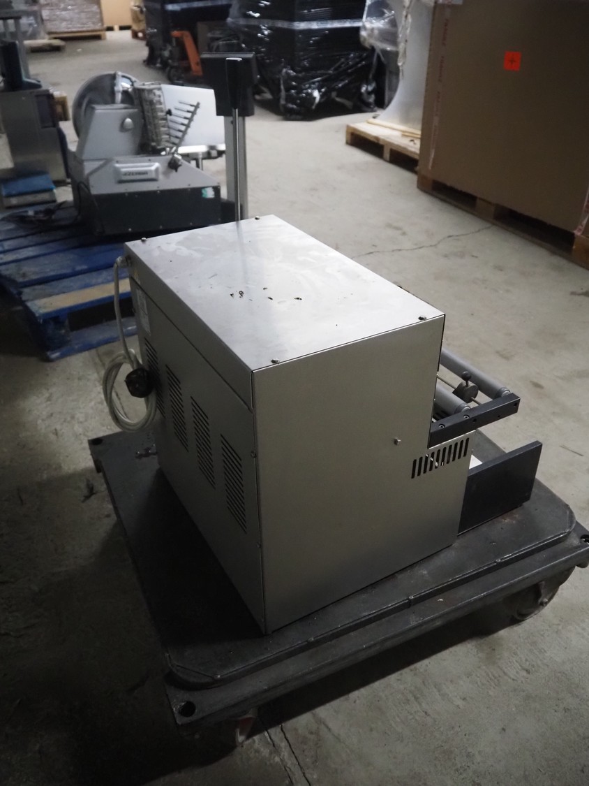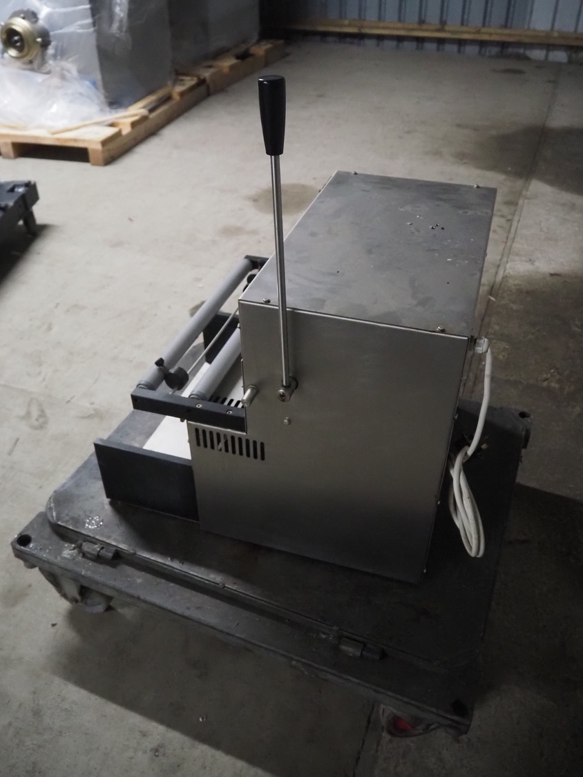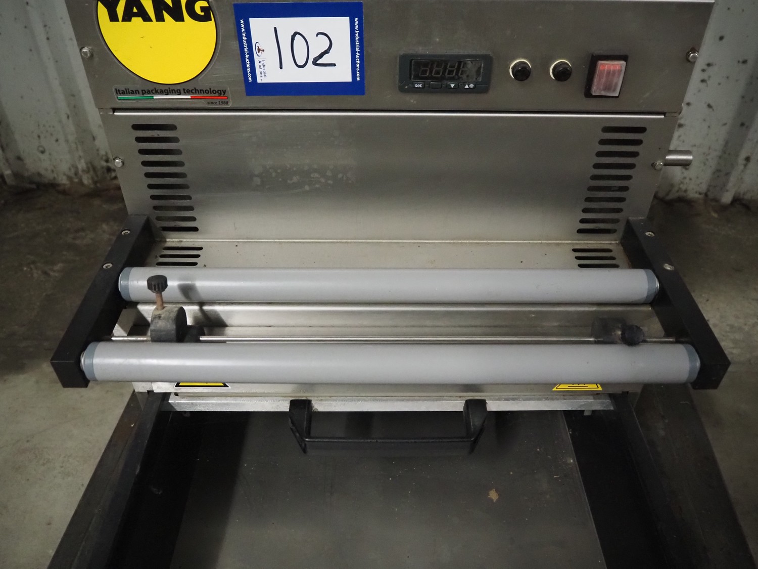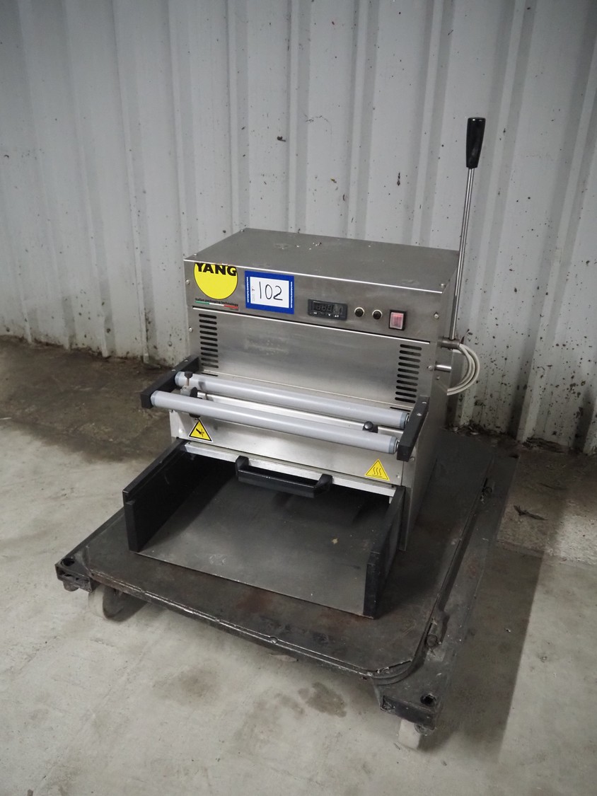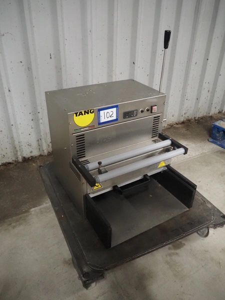 Yang traysealer, model: Posga, serial number: 1040059, year of construction: 2010, 230 V, 1 Ph, 50 Hz, 1.6 kW, dimensions dye: 310 mm x 250 mm, film width: 330 mm, total dimensions: 700 mm x 500 mm x 770 mm.