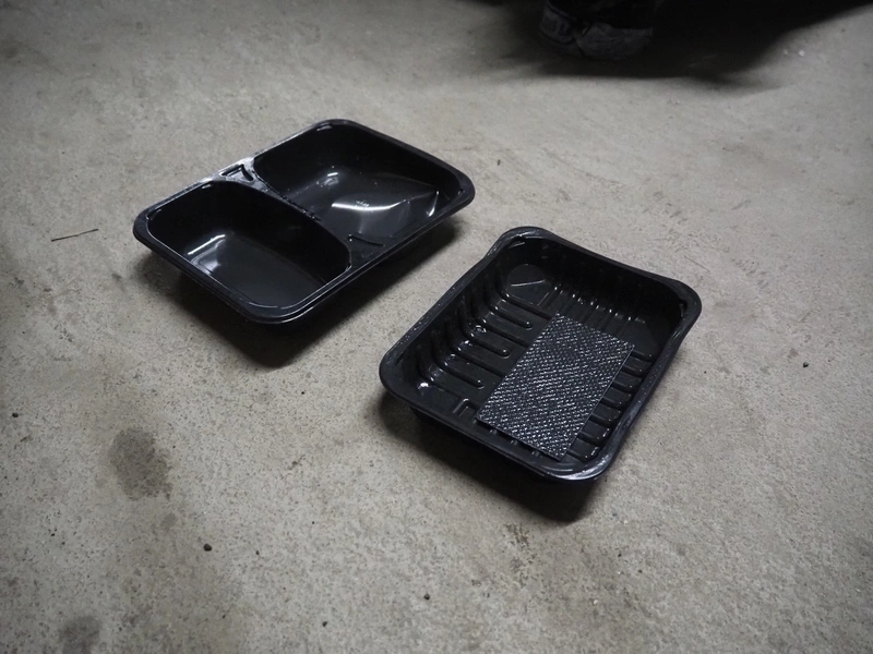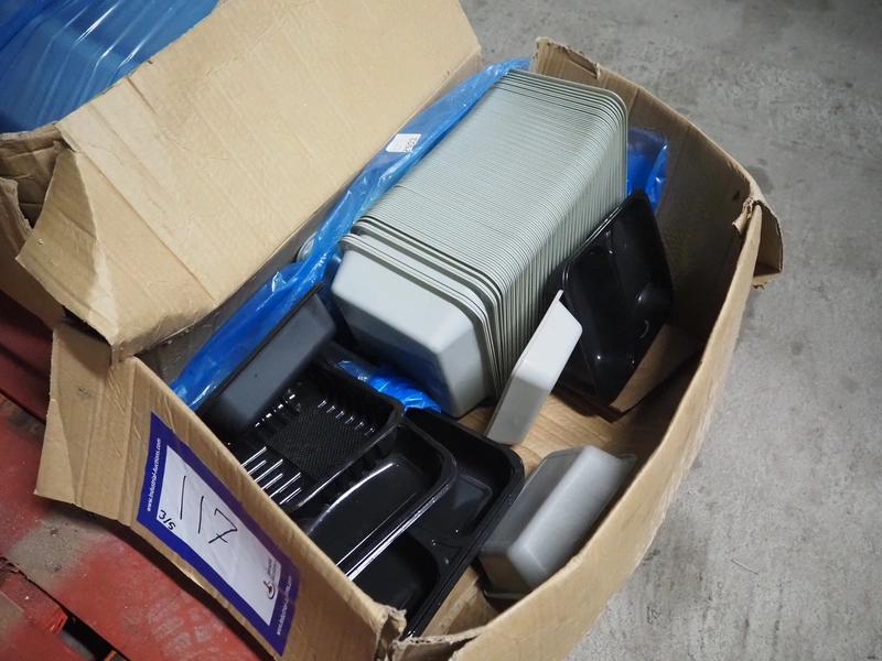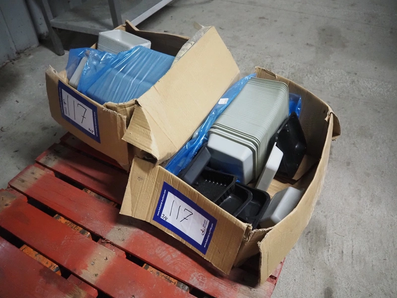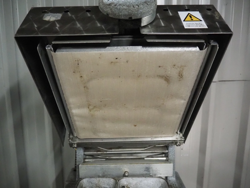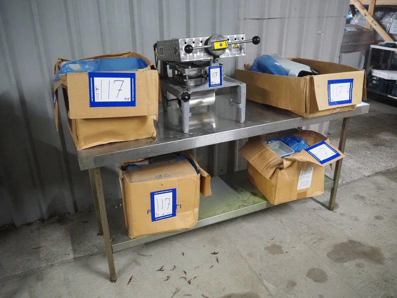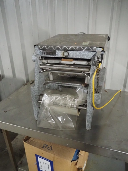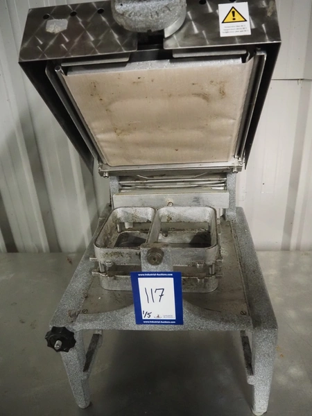 A.L.X.-Metall traysealer, model: M-fix-285/250-F-89, number: 1701, year of construction: 2004, 230 V, 50 Hz, 800 W, dimensions dye: 210 mm x 160 mm, total dimensions: 370 mm x 450 mm x 450 mm. Including 4 boxes with trays.