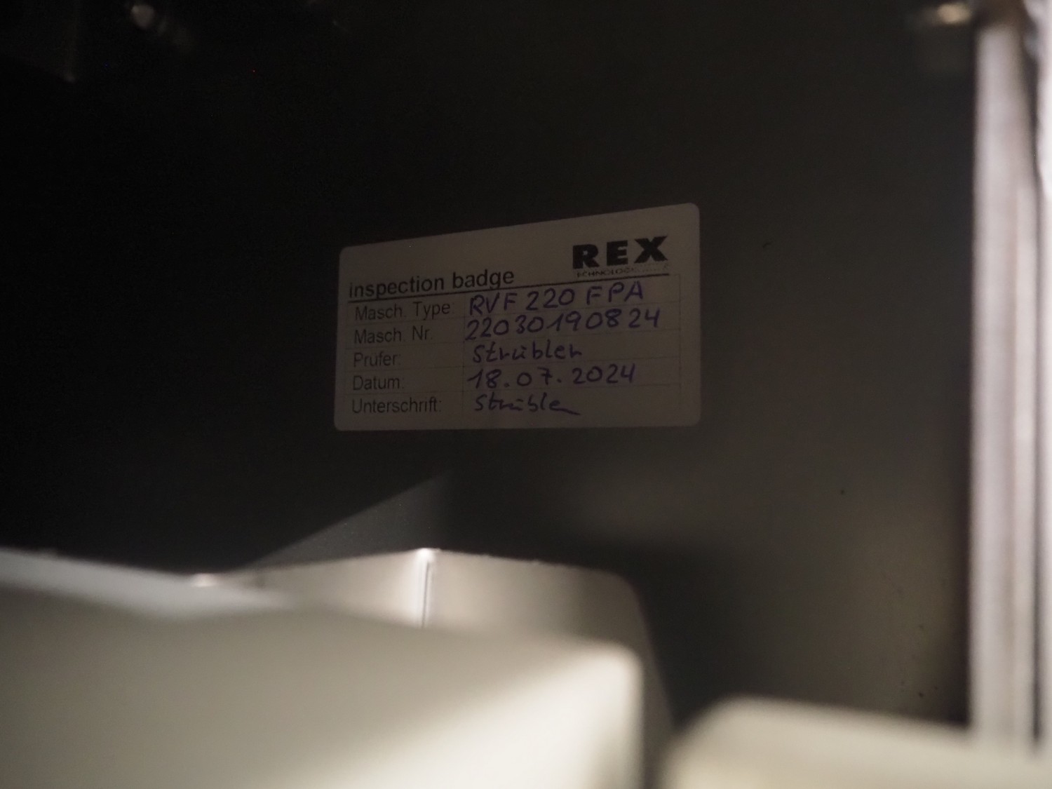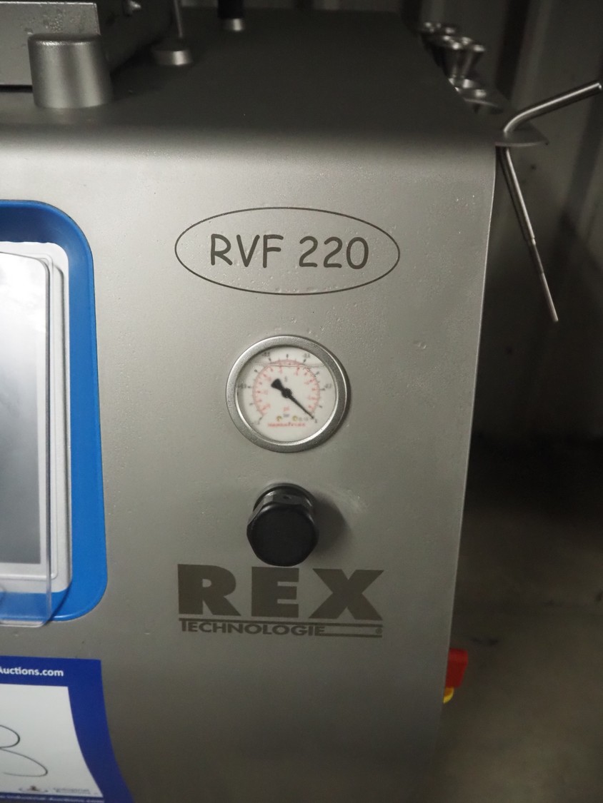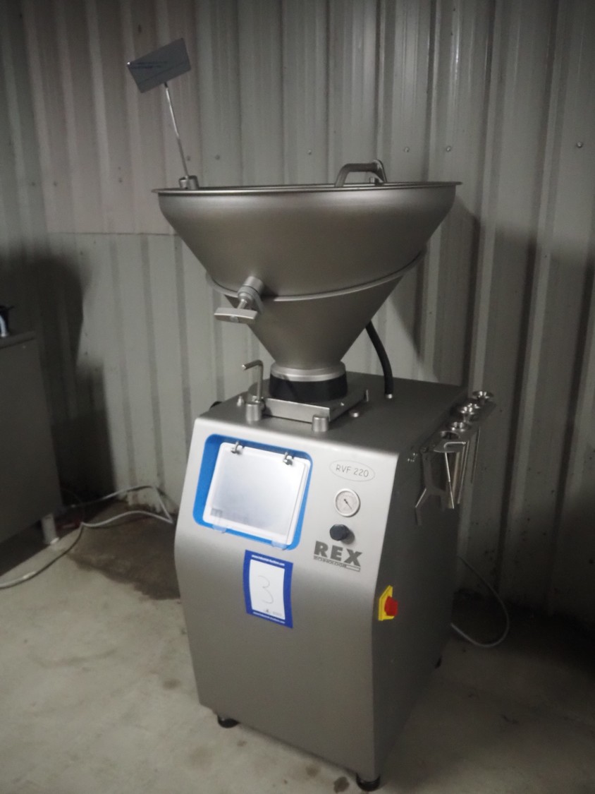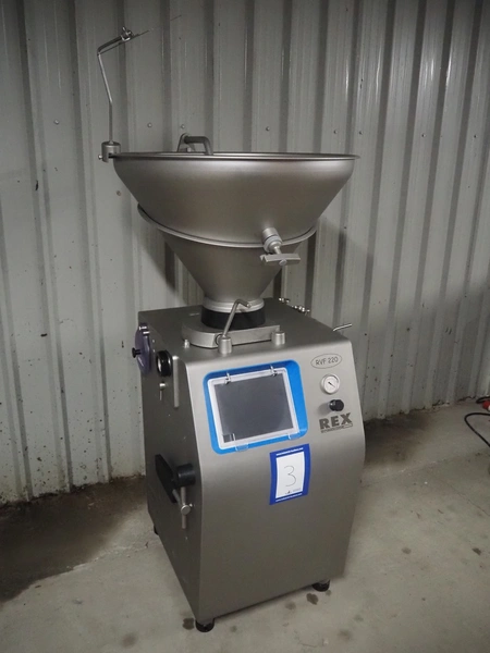 Rex vacuum filling machine, type: RVF220 FPA, serial number: 22030190824, year of construction: 2024, 400 V, 50/60 Hz, 16 A, 4 kW, with Busch vacuum pump, total dimensions: 800 mm x 890 mm x 1970 mm. Including maintenance kit. Never used.