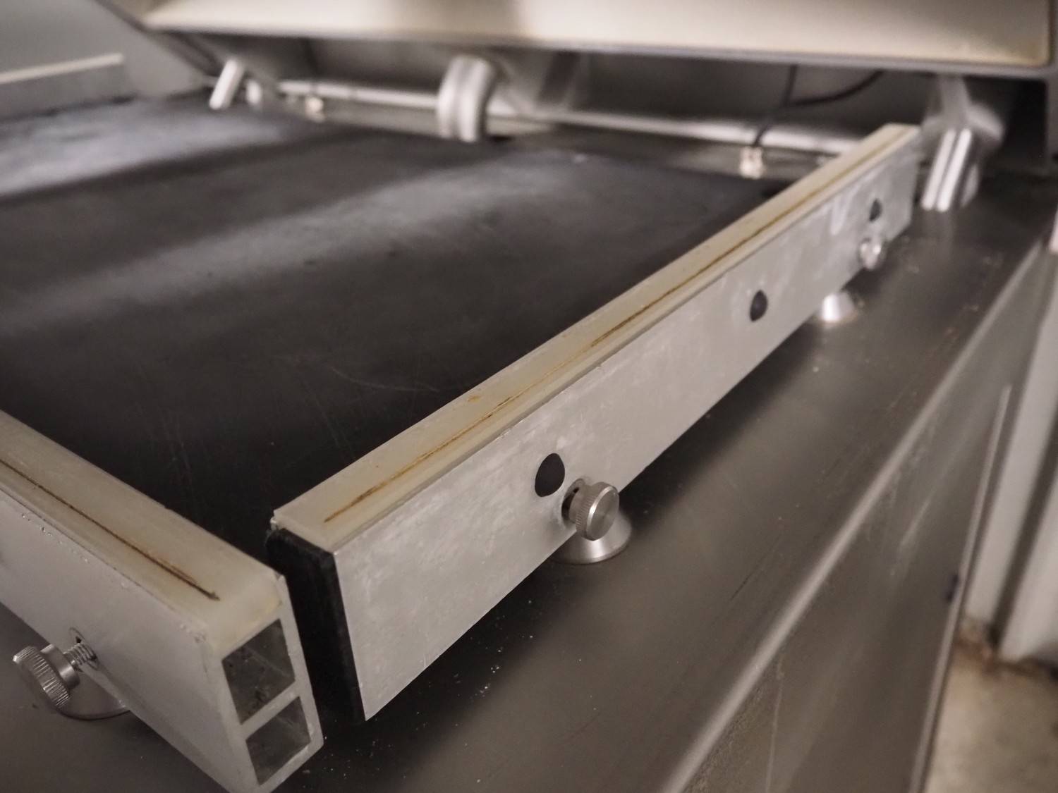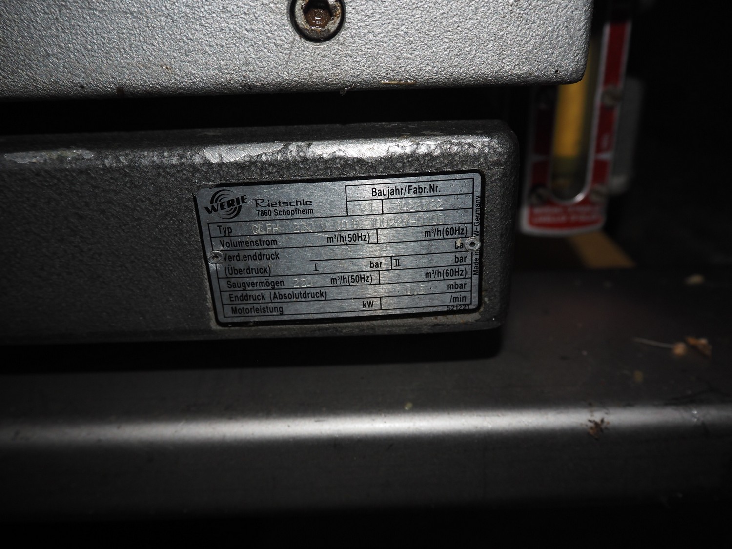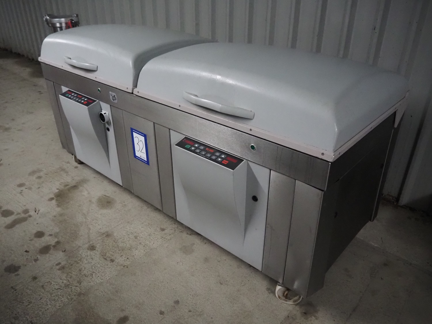 VC999 verpackungssysteme AG mobile double chamber vacuum machine, type: VC999 K12A, serial number: 1912501, year of construction: 2012, 400 V, 3 Ph, 50 Hz, 10 kW, 6 bar, chamber dimensions: (2x) 940 mm x 500 mm, seal length: (4x) 500 mm and (2x) 900 mm, 2 Rietschle vacuum pumps, total dimensions: 2220 mm x 950 mm x 1080 mm.