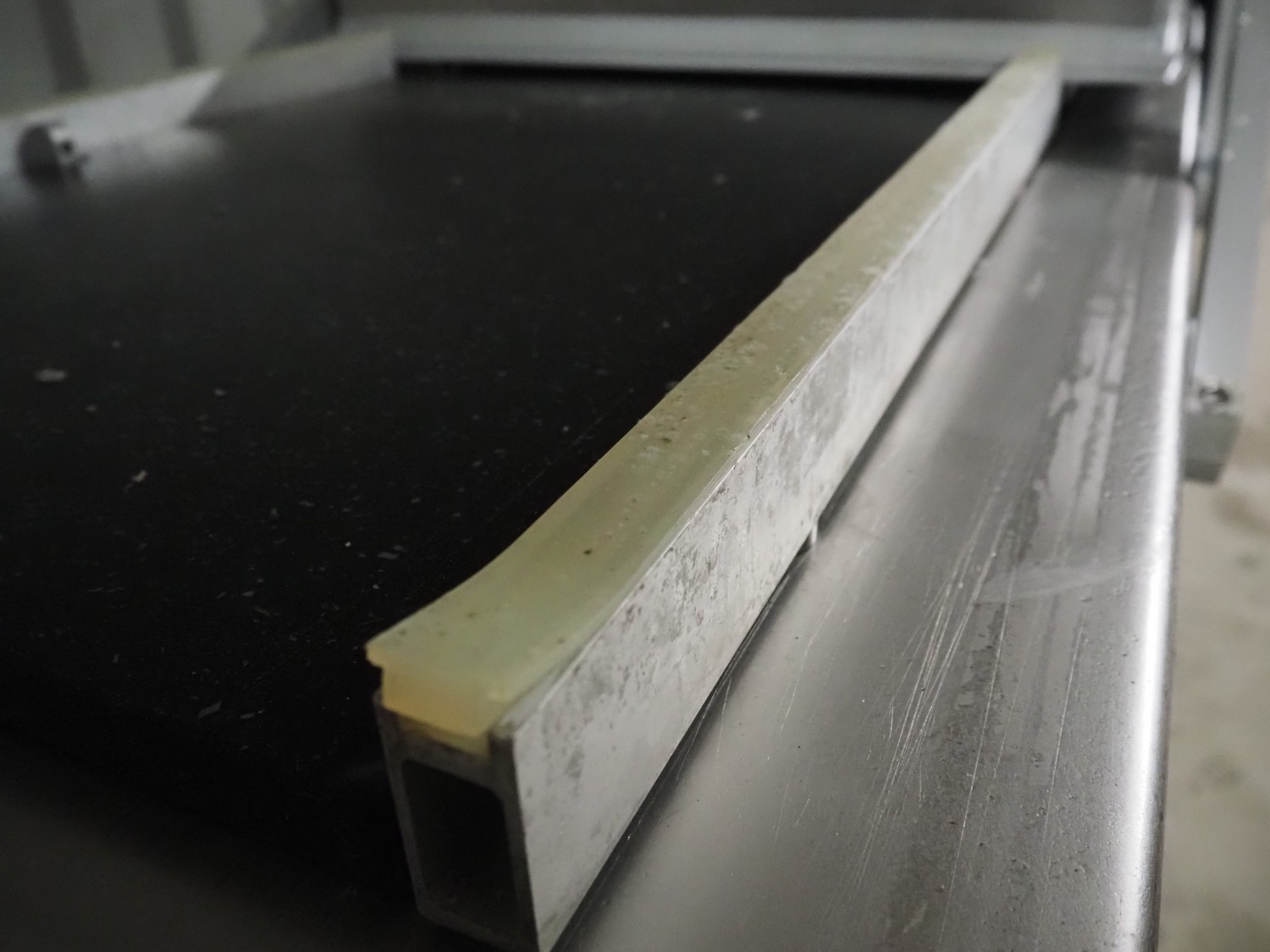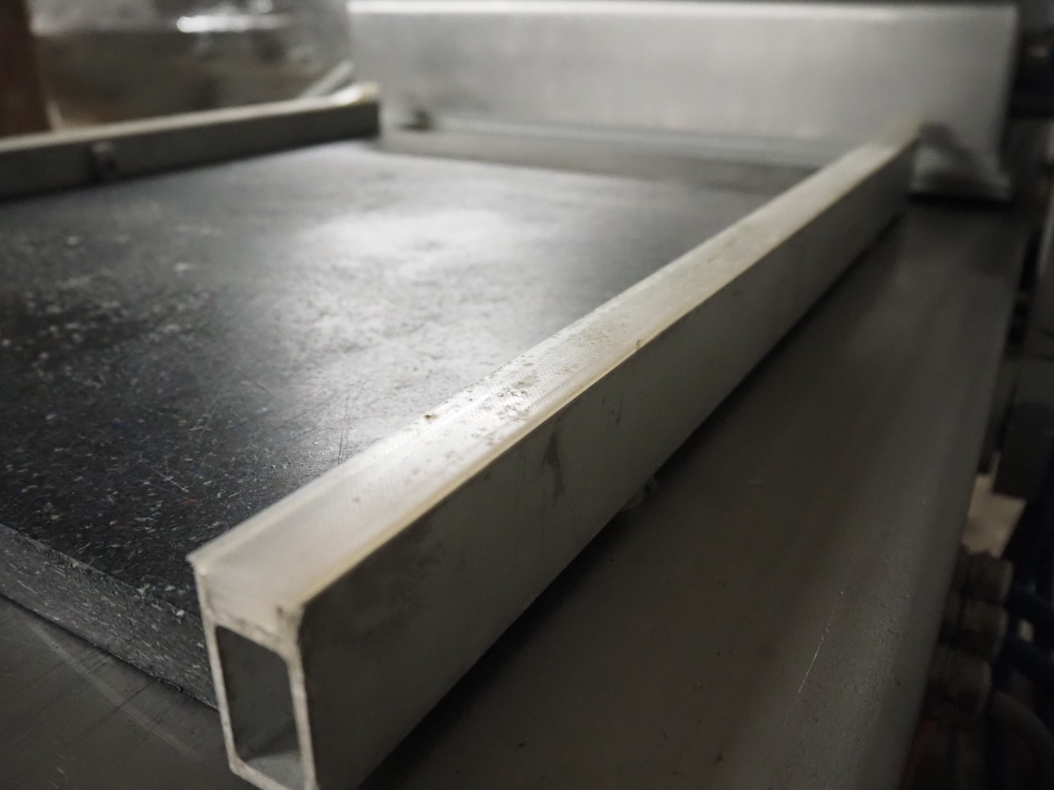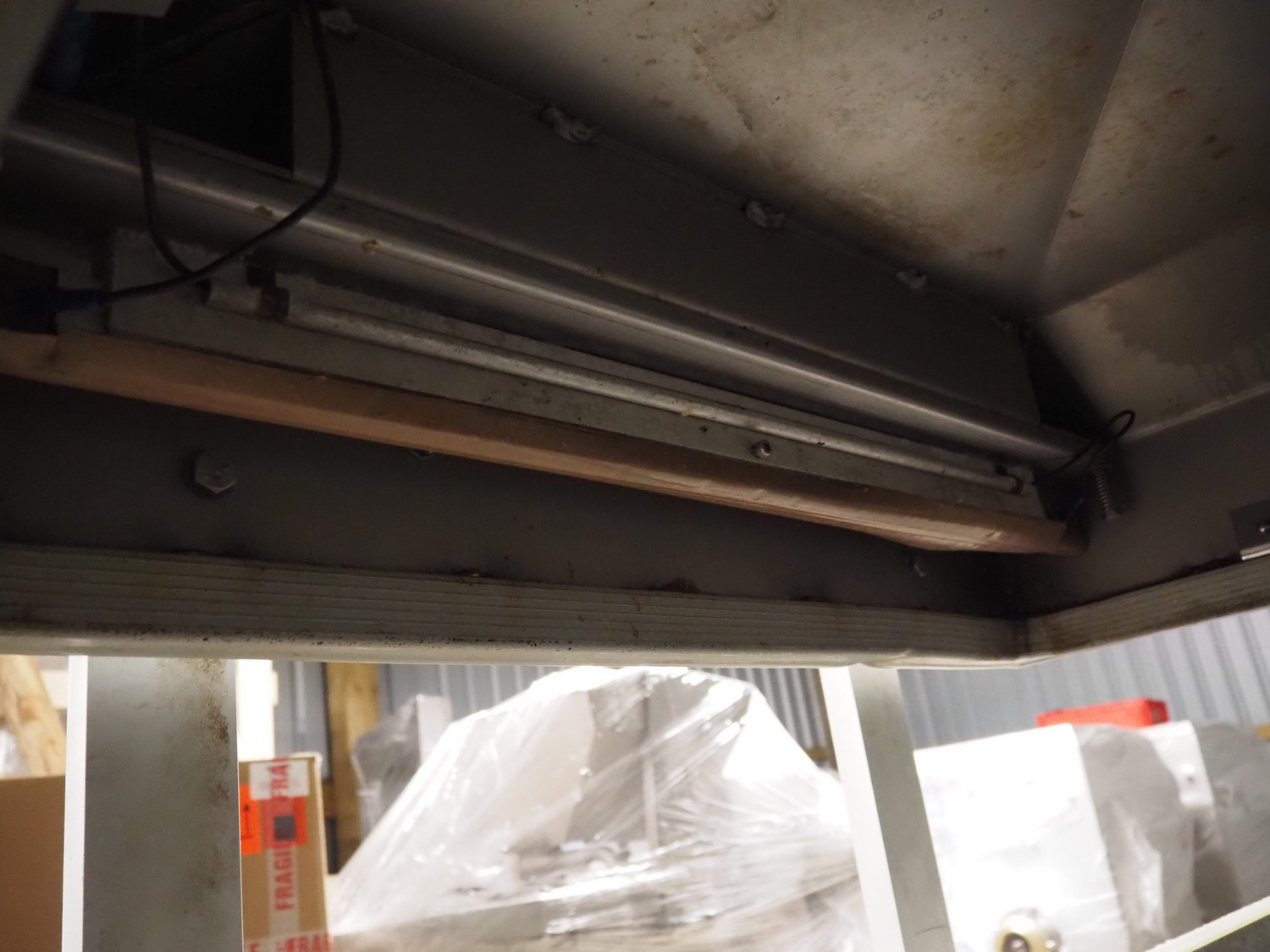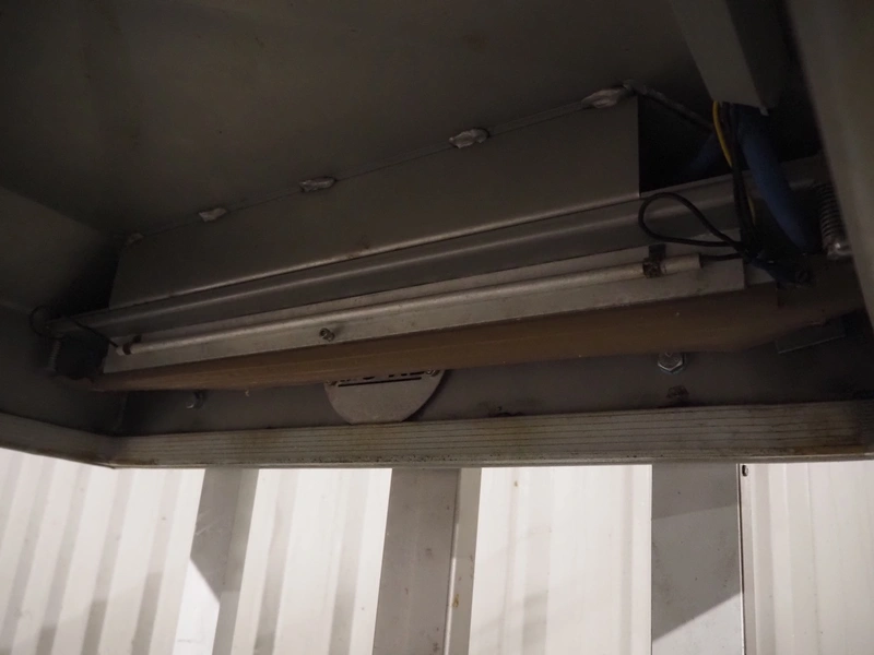 Turbovac mobile double chamber vacuum machine, type: ST-700, year of construction: 2014, 380-400 V, 3 Ph, 10 A, chamber dimensions: (2x) 700 mm x 515 mm, seal length: (4x) 700 mm, Busch vacuum pump, type: RA 0100 F 5R3, capacity: 100 m³ per hour, total dimensions: 1620 mm x 880 mm x 1260 mm. Broken cover.