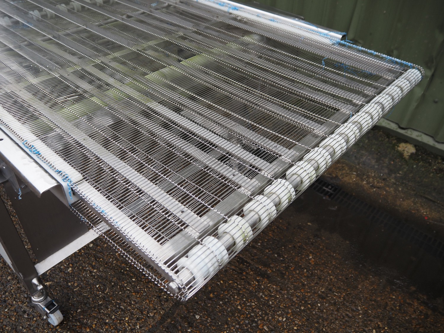 Mobile mesh belt, belt width: 1000 mm, total dimensions: 2900 mm x 1430 mm x 930 mm.